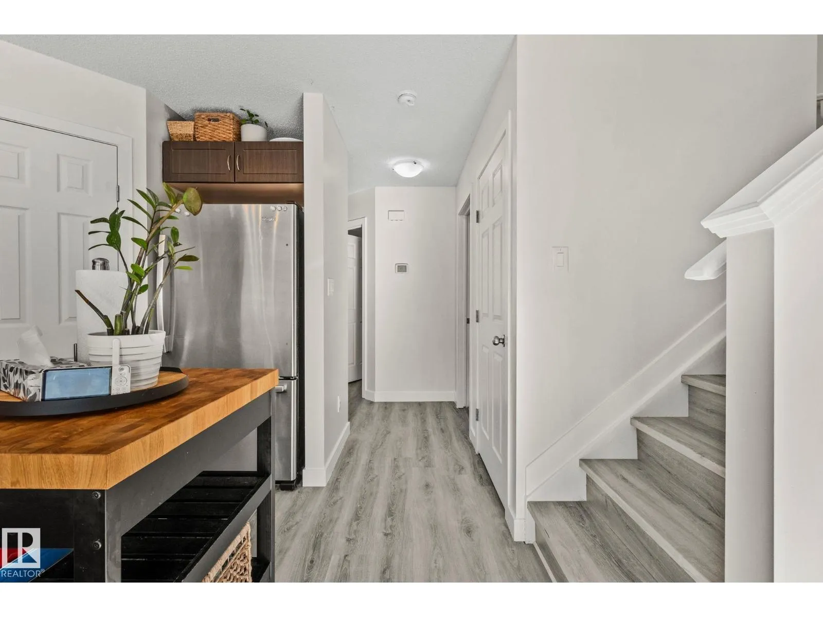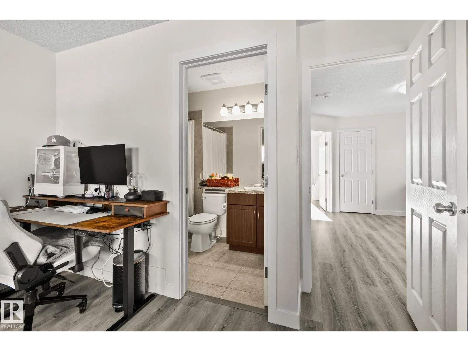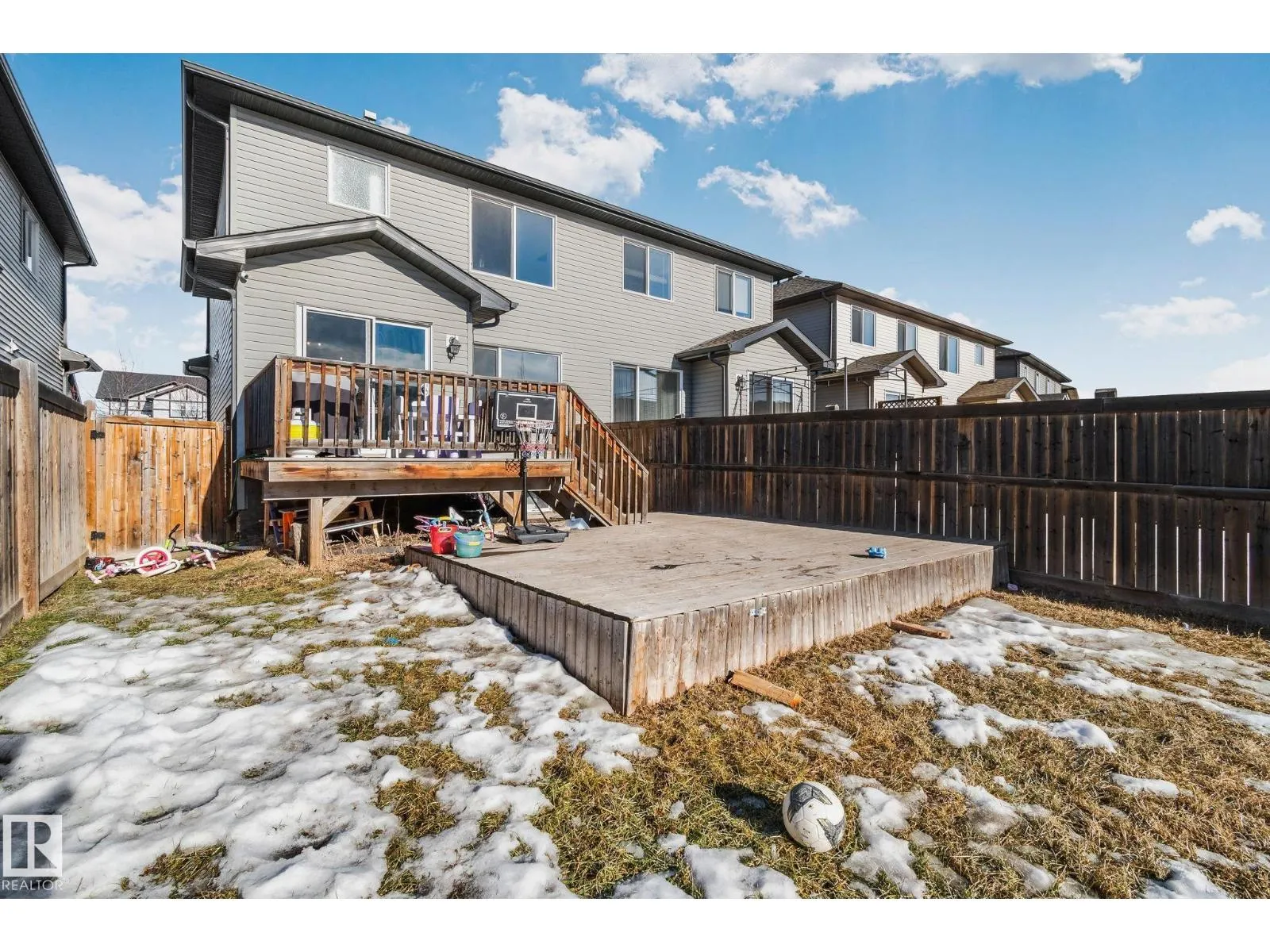 Great value and a smart opportunity for first-time buyers or investors. This half duplex offers a functional, open-concept main floor with a bright living space, u-shaped kitchen with corner pantry and stainless steel appliances, plus a spacious dining area filled with natural light. Recently painted with new flooring throughout and no carpet, the home provides a low-maintenance foundation to make your own. Upstairs features a versatile flex room and two generous primary bedrooms, each with its own ensuite and walk-in closet, ideal for roommates, guests, or rental potential. The large South facing backyard, with a 2-tier deck, offers potential rear lane access for future parking possibilities and room to grow. An unfinished basement adds extra space and value potential. (id:27476)