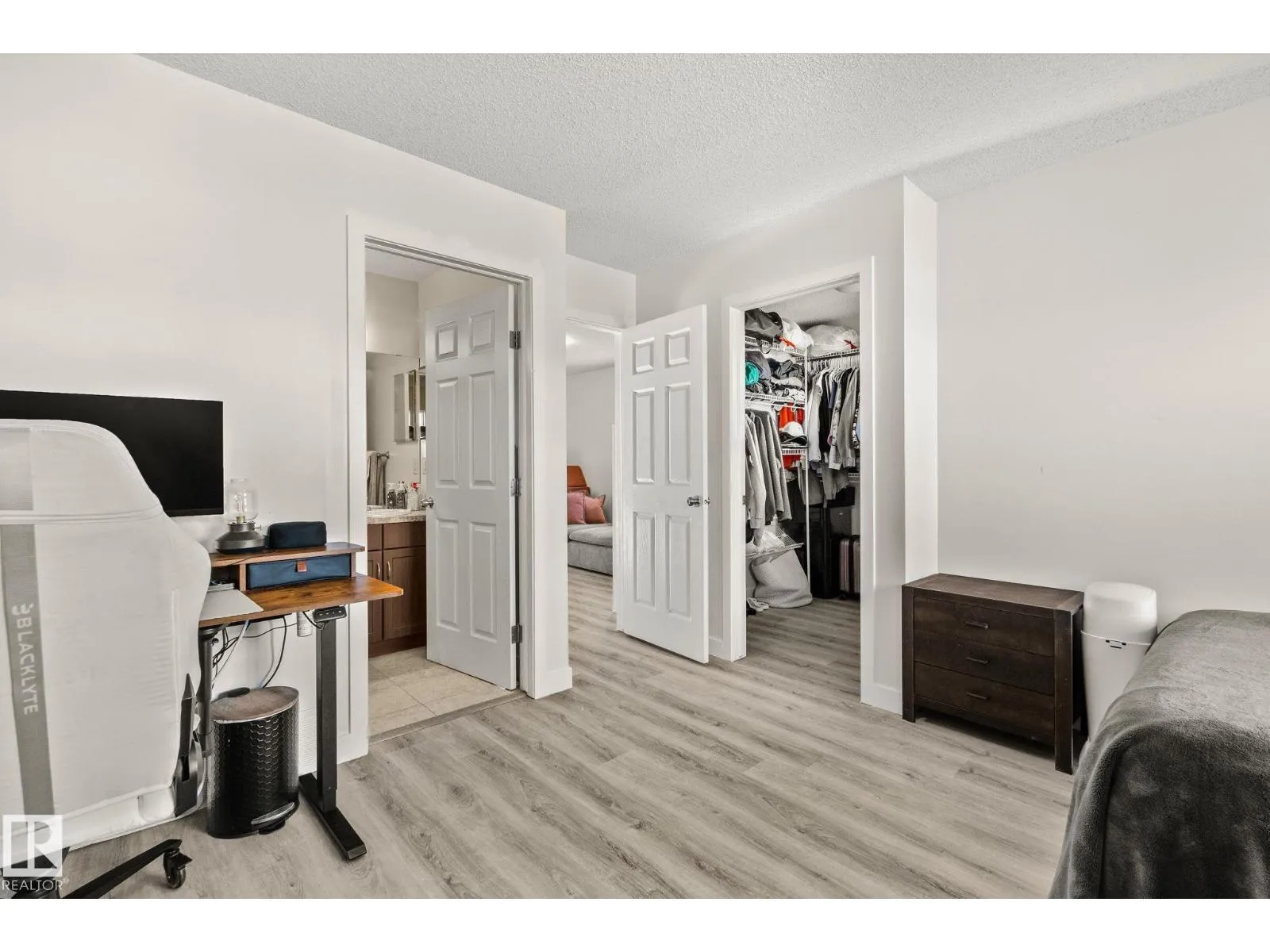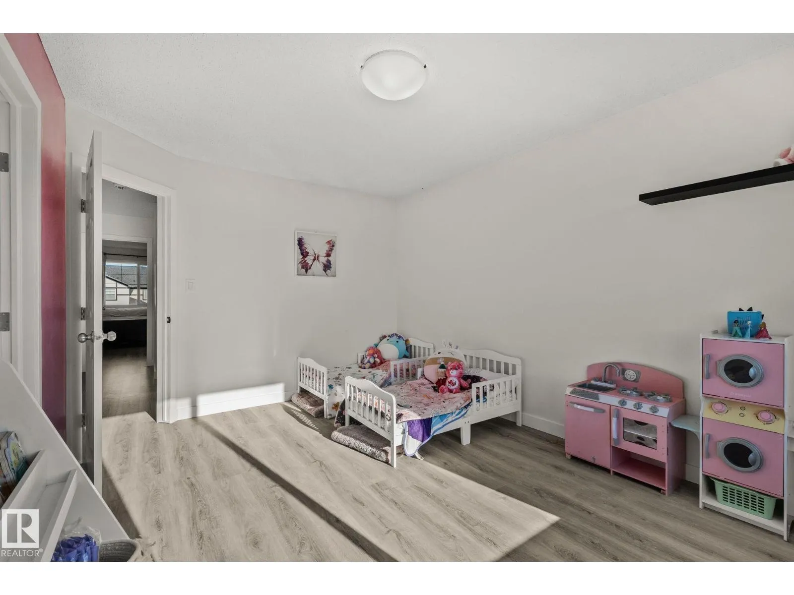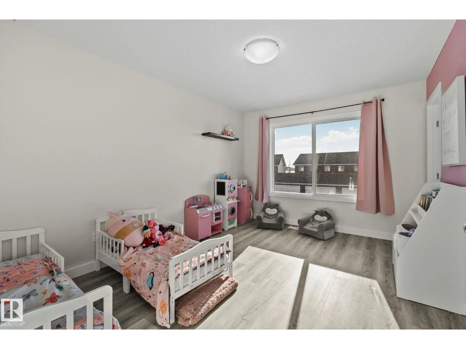 Great value and a smart opportunity for first-time buyers or investors. This half duplex offers a functional, open-concept main floor with a bright living space, u-shaped kitchen with corner pantry and stainless steel appliances, plus a spacious dining area filled with natural light. Recently painted with new flooring throughout and no carpet, the home provides a low-maintenance foundation to make your own. Upstairs features a versatile flex room and two generous primary bedrooms, each with its own ensuite and walk-in closet, ideal for roommates, guests, or rental potential. The large South facing backyard, with a 2-tier deck, offers potential rear lane access for future parking possibilities and room to grow. An unfinished basement adds extra space and value potential. (id:27476)