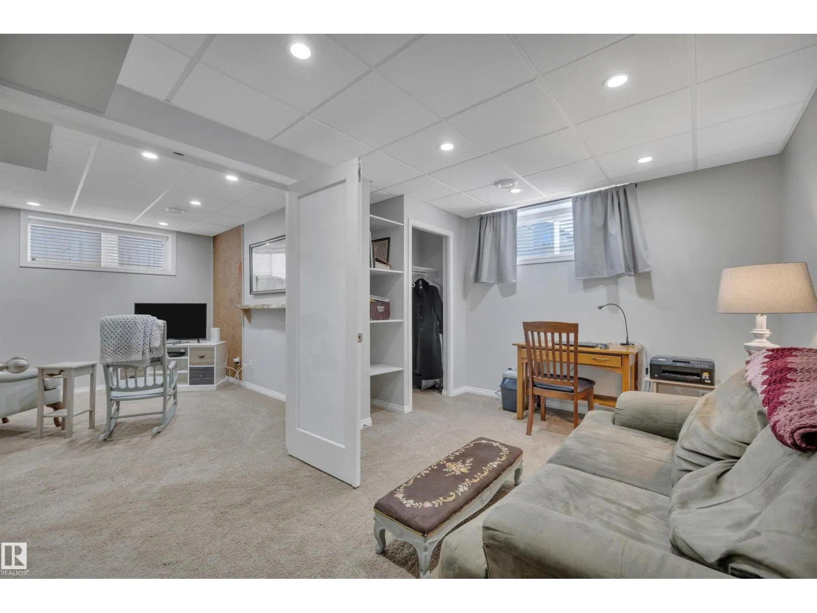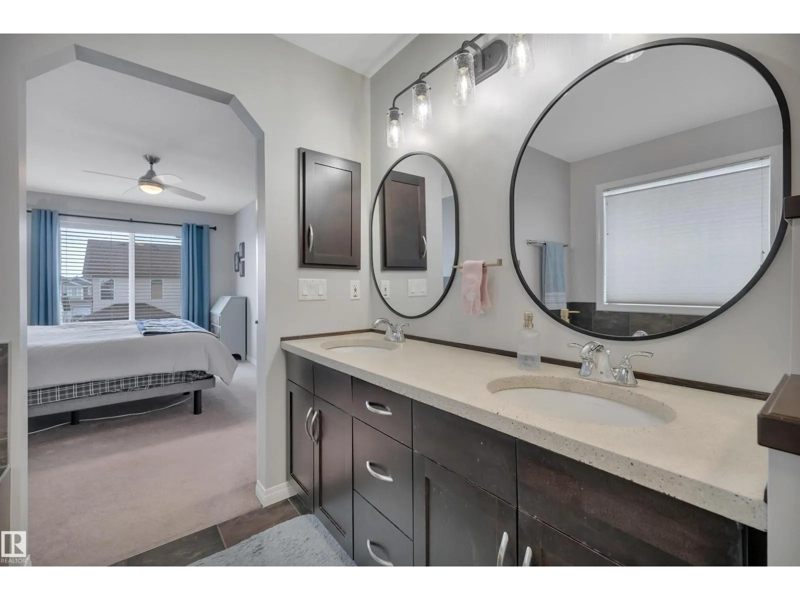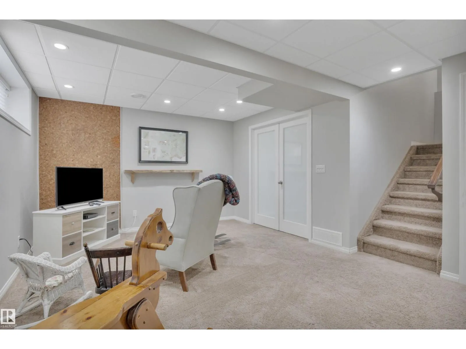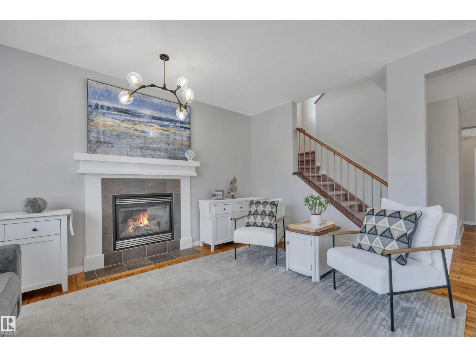 This Beautifully finished Southfork Home full of natural light is located in a quiet cul-de-sac near parks & walking trails. Lovely alcoves throughout to display your special mementos. Walnut hardwood flooring through the open concept living room, dining room & kitchen. Kitchen features concrete countertop & angled eating bar. Stainless steel appliances & cabinets with under cabinet lighting. Gas fireplace in the spacious living room Easy access to the large composite deck & backyard. Half bath & laundry room also on main floor. Head upstairs to the Bonus Room, Primary Suite with Ensuite, including 2 sinks, separate soaker tub & full size walk in shower with seat. Two more bedrooms & a full bathroom complete the upstairs. Lower level has nicely finished rec room, storage & another half bathroom! Frosted doors lead to the 4th bedroom or office. Oversized Garage is heated & features built-in work bench & storage loft. Reach out to see this great property. (id:27476)