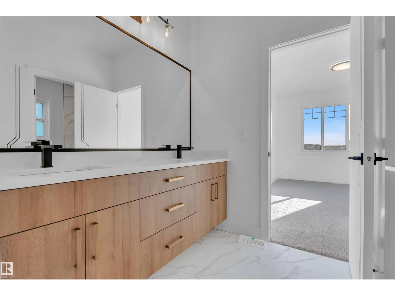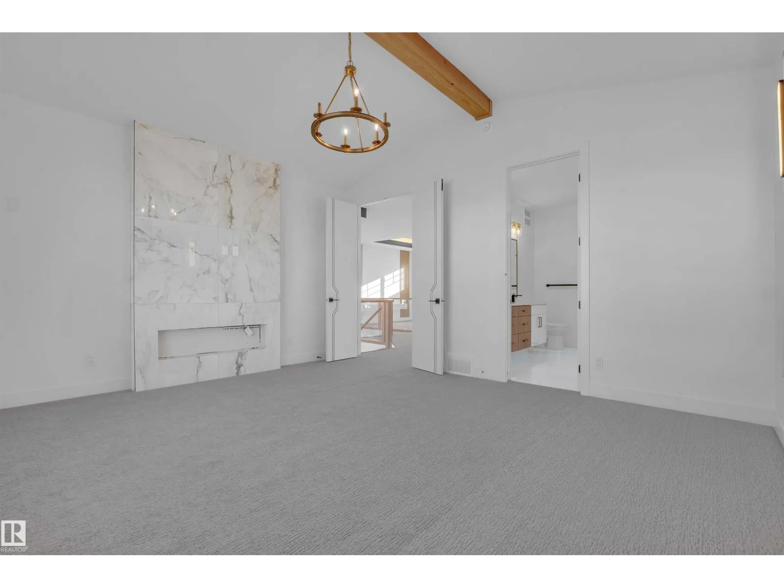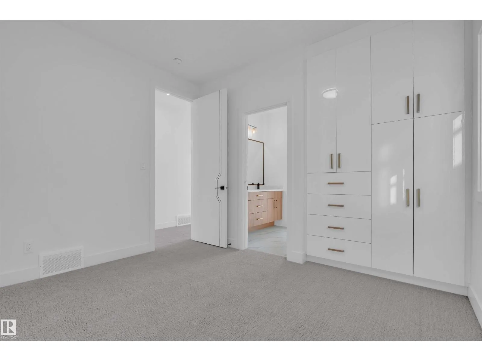 Stunning 2-storey home offering over 2,400 sq ft of luxury living. Perfectly positioned on a rectangular PARTIAL WALKOUT Lot , this home combines modern comfort with scenic tranquility.The main floor includes an open-to-above living room, has a bedroom & full bath for convenience, making it 4 bedrooms in total. Upstairs all bedrooms comes with en-suite & walk-in closets. Laundry area plus a bonus room completes Upper floor. Finished with carpet, tile, & vinyl flooring, treated wood deck, fireplace, separate side entrance, & double attached garage with drain. Close to schools, parks, plazas, golf, & airport â the perfect blend of comfort & convenience. **Photos are from a similar home built by the builder; actual finishes & layout may vary.** (id:27476)