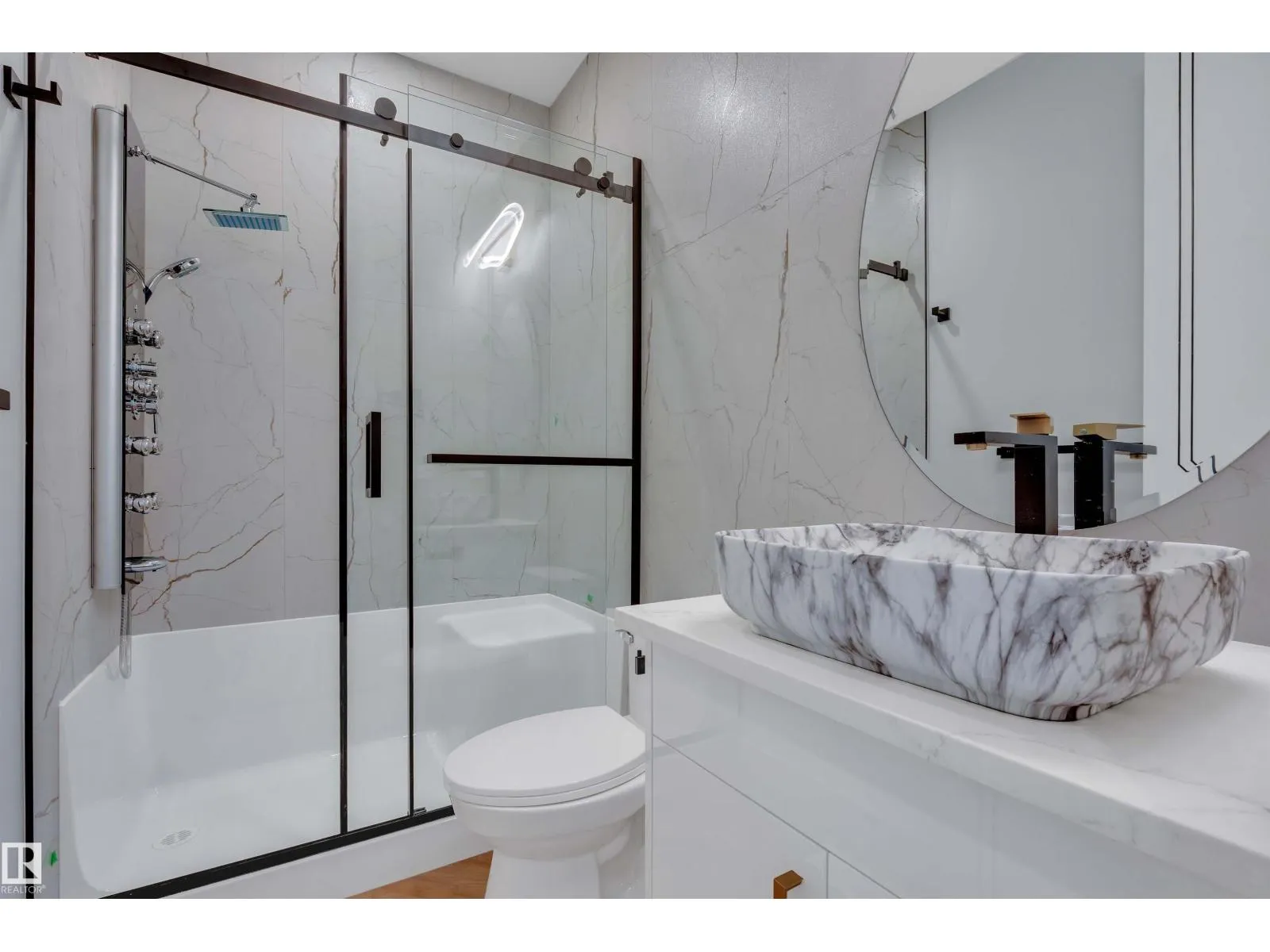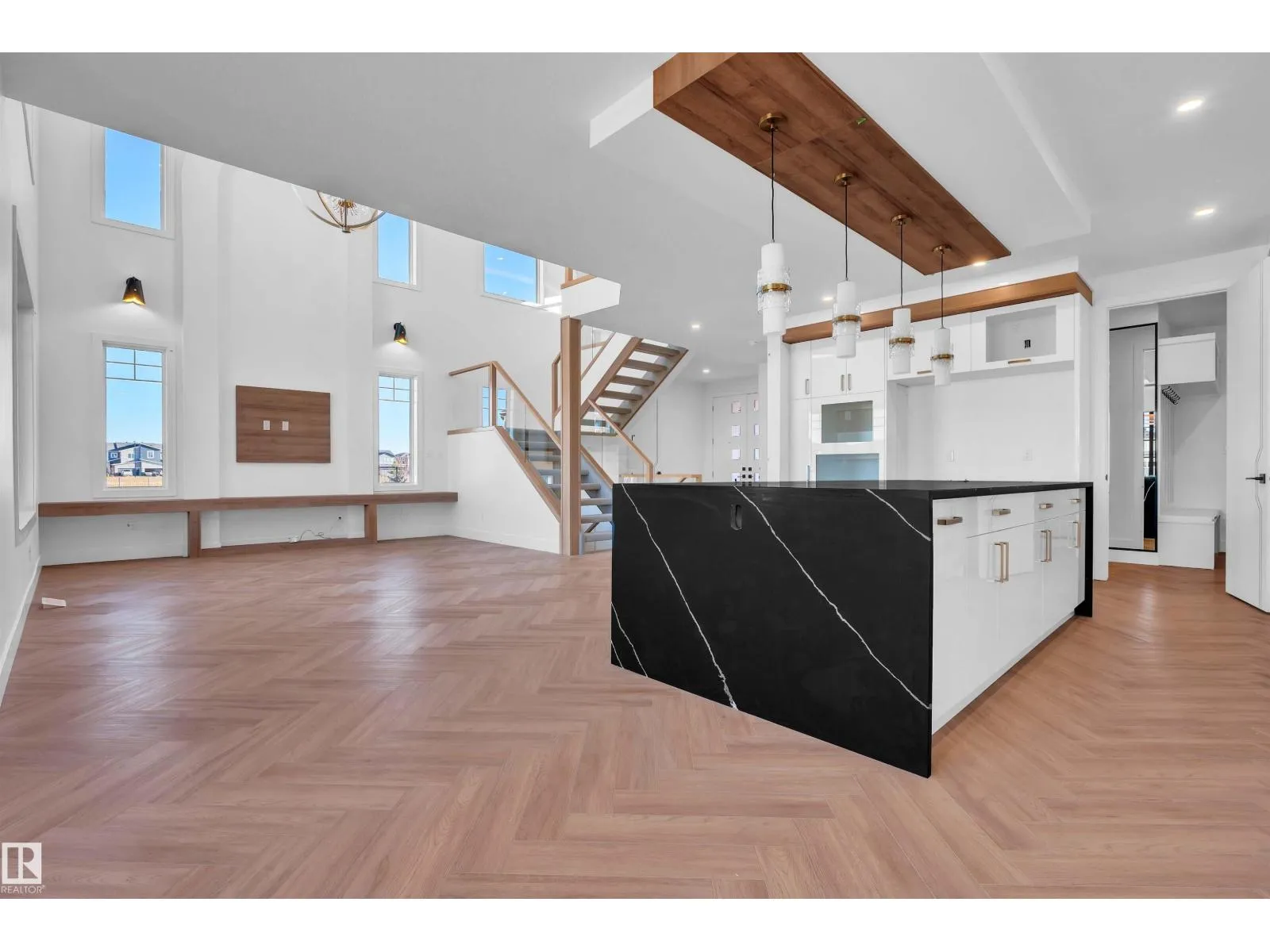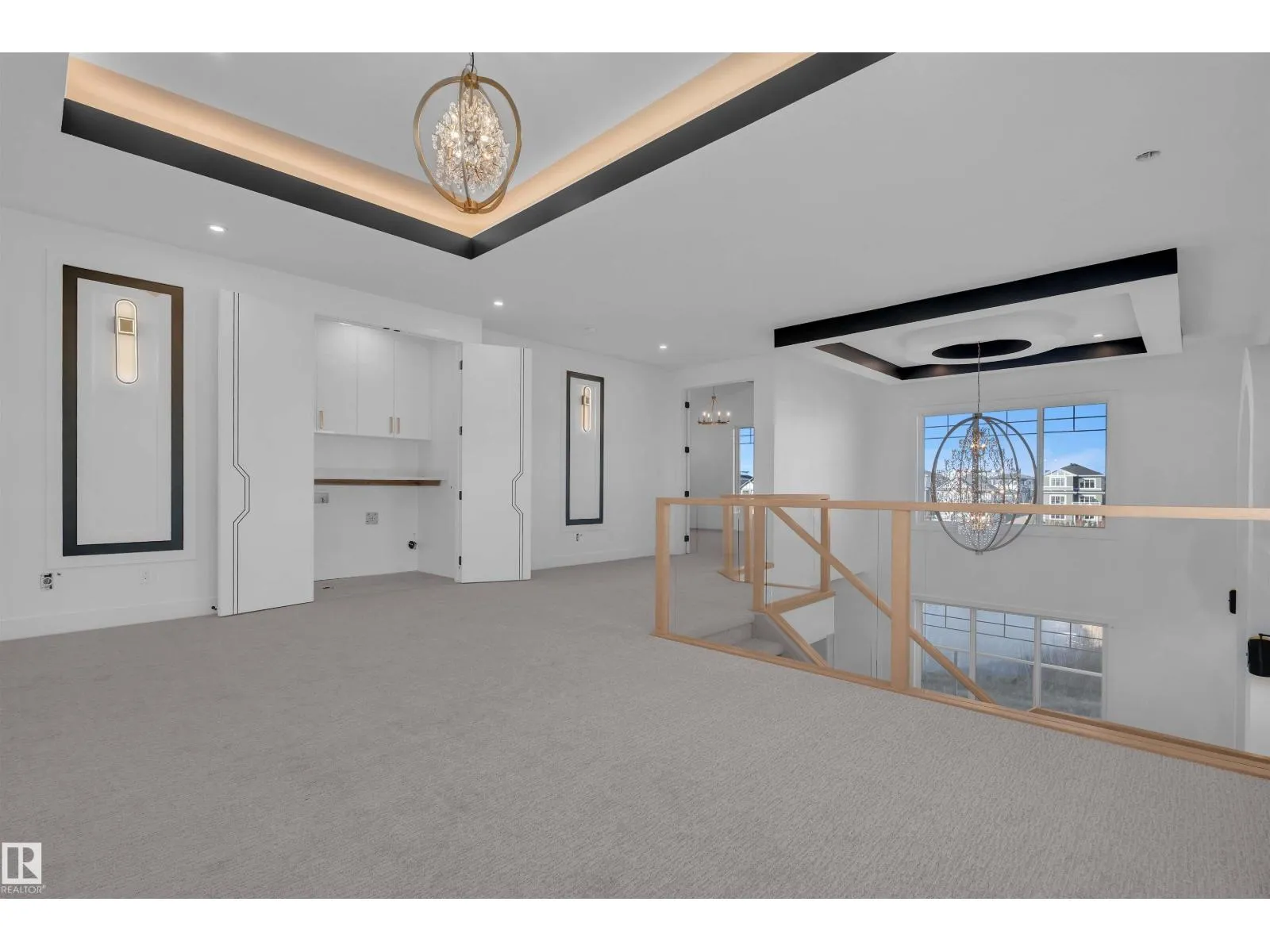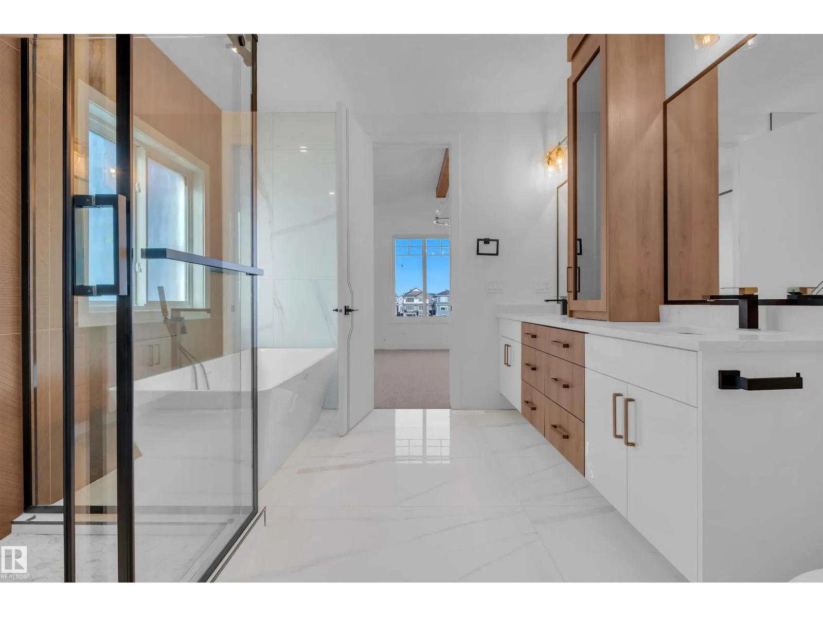 Stunning 2-storey home offering over 2,400 sq ft of luxury living. Perfectly positioned on a rectangular PARTIAL WALKOUT Lot , this home combines modern comfort with scenic tranquility.The main floor includes an open-to-above living room, has a bedroom & full bath for convenience, making it 4 bedrooms in total. Upstairs all bedrooms comes with en-suite & walk-in closets. Laundry area plus a bonus room completes Upper floor. Finished with carpet, tile, & vinyl flooring, treated wood deck, fireplace, separate side entrance, & double attached garage with drain. Close to schools, parks, plazas, golf, & airport â the perfect blend of comfort & convenience. **Photos are from a similar home built by the builder; actual finishes & layout may vary.** (id:27476)