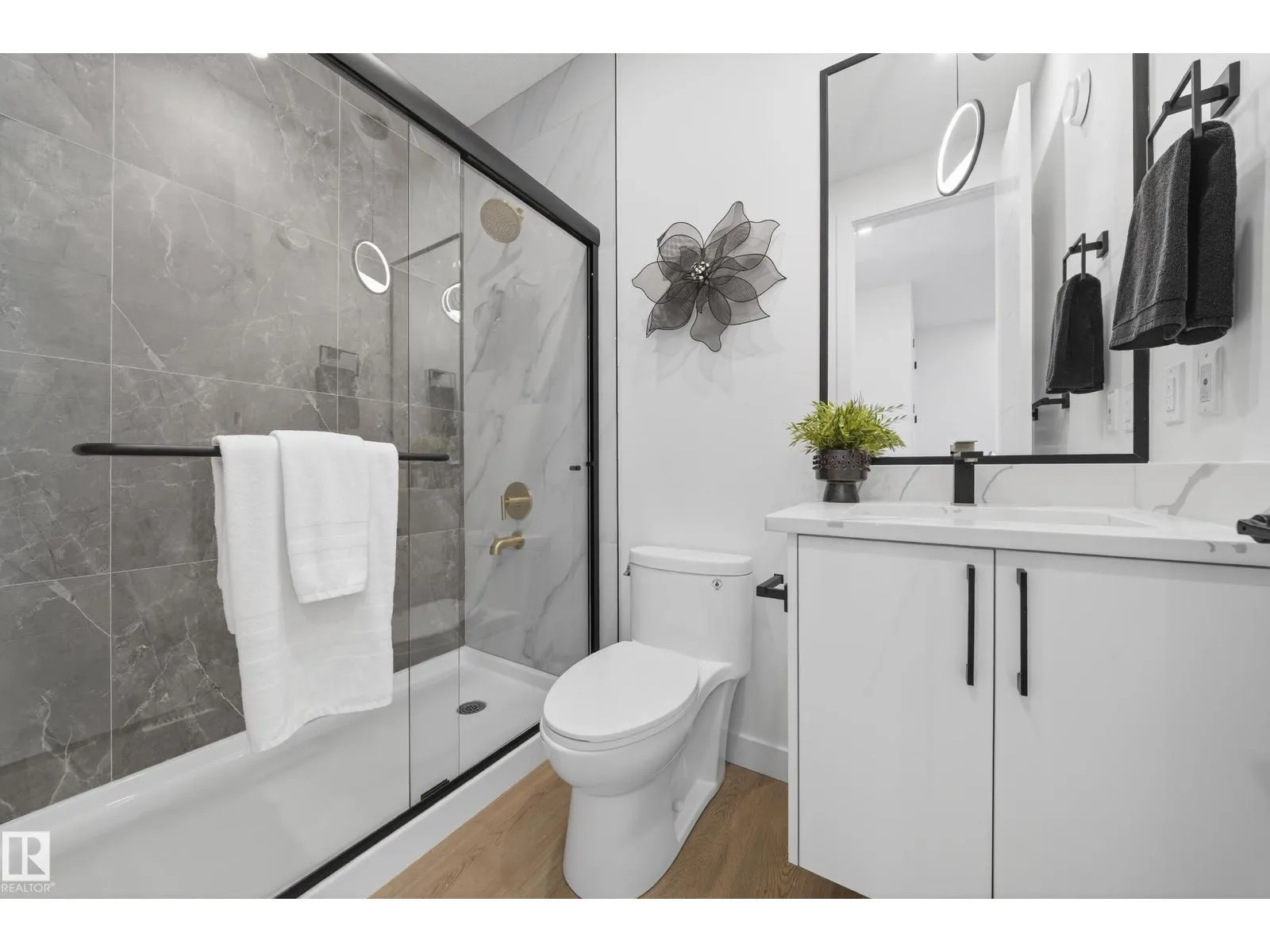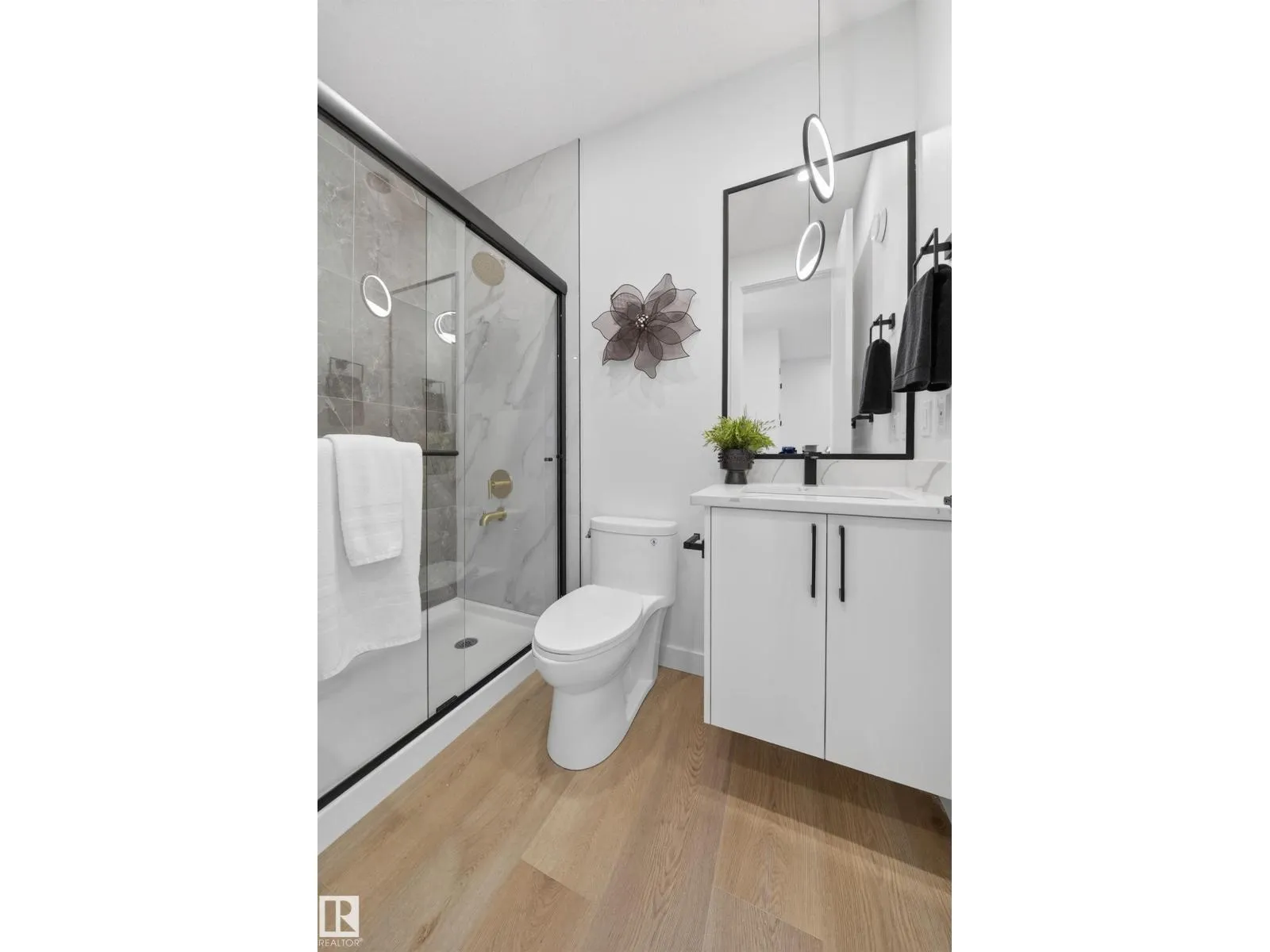 Welcome to this Brand New Single Family home located in the growing community of Crystal Creek, Leduc. This beautifully upgraded home offers 4 bedrooms and 3 full bathrooms, including a convenient MAIN FLOOR BEDROOM & BATH, perfect for guests or extended family. The main level features an impressive extended kitchen with 3 cm quartz countertops, ample MDF shelving & a full SPICE KITCHEN for added convenience. Enjoy the bright and open OPEN-TO-ABOVE living room, upgraded lighting package, spacious mudroom, and modern glass railing. Upstairs offers a comfortable bonus room, two additional bedrooms, a spacious primary suite, and upper-level laundry. Additional features include a SEPARATE SIDE ENTRANCE to the unfinished basement, 200 AMP service, EV rough-ins, MDF shelving throughout, a DOUBLE ATTACHED GARAGE, and close proximity to shopping, parks, and major amenities. Photos are for a similar property with same layout and Interior selections. Home is Under construction & Estimated completion in March end!! (id:27476)