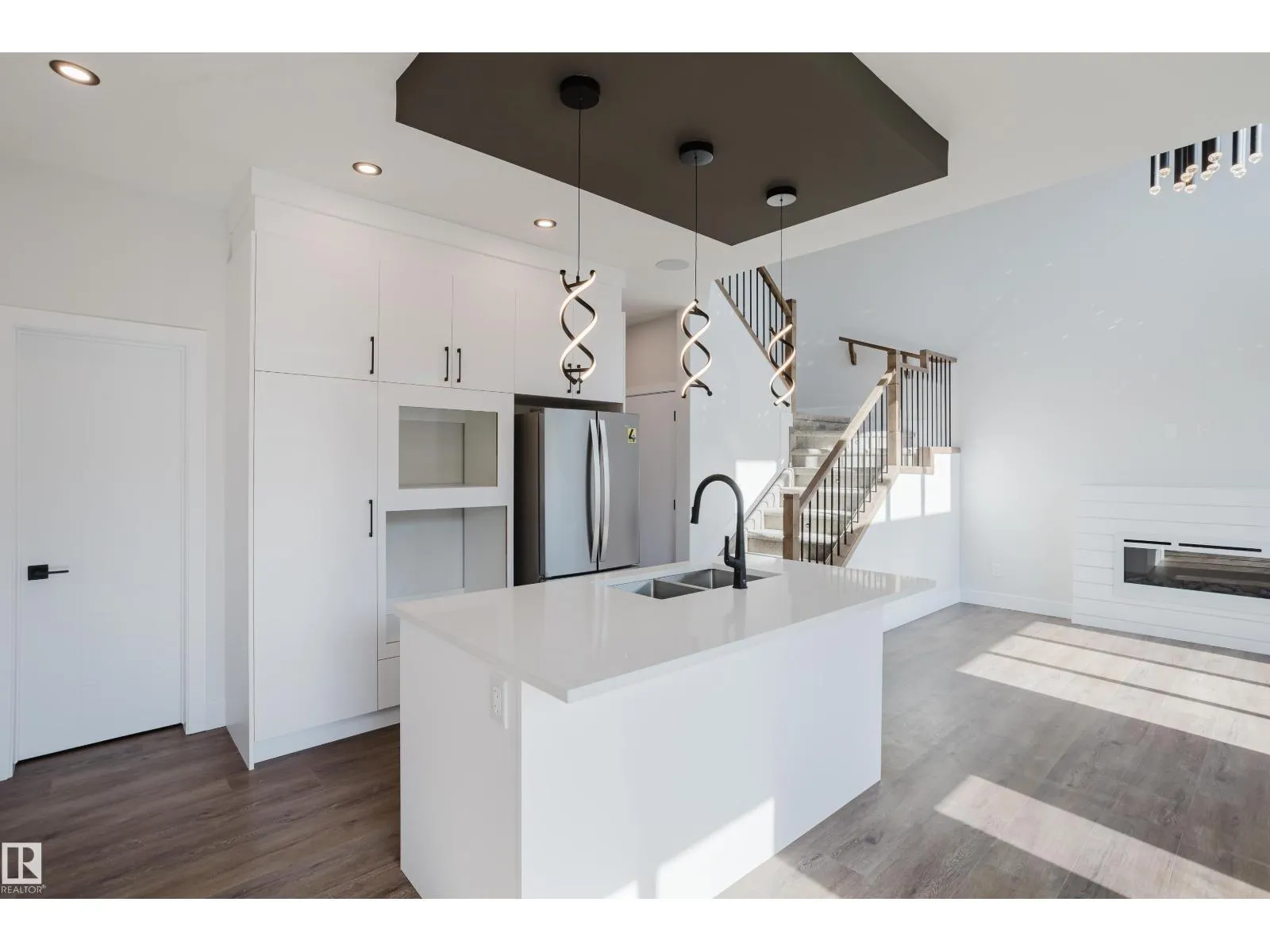 Live the good life in the highly desirable community of Woodbend, Leduc, with this exquisite home backing onto scenic walking trails. A grand open-to-above foyer sets the tone, leading into a sun-filled great room with soaring vaulted ceilings and a striking electric fireplace. The gourmet kitchen showcases quartz countertops, a walk-in pantry, and a spacious dining nookâideal for both everyday living and entertaining. Thoughtfully designed for families, the main floor offers a bedroom and full bath, while upstairs features a serene bonus room, a luxurious primary suite with a spa-inspired 5-piece ensuite, two additional bedrooms, a 4-piece bath, and convenient laundry. Every level impresses with 9â ceilings and refined finishes. A side entry to basement provides incredible potential for a future suite or the ultimate retreat. Outside, enjoy gatherings on the expansive deck, with a double garage completing the perfect blend of modern comfort and timeless style in a family-friendly neighborhood. (id:27476)