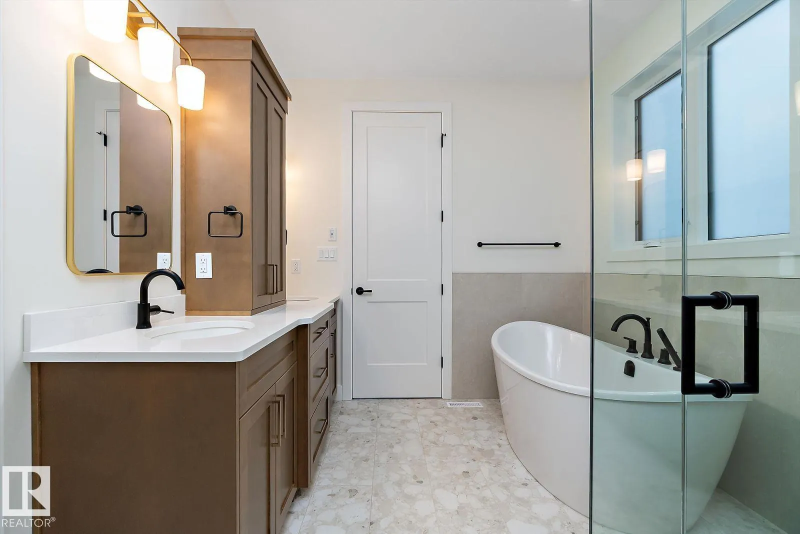 Stunning custom-built 1,749 sq. ft. bungalow with fully finished walkout basement by Jacobâs Construction. This home offers 9â ceilings with 8' doors on the main and basement levels, vaulted ceilings with custom beams in great room and kitchen, and upscale finishes throughout. The chefâs kitchen features quartz countertops, custom cabinetry, walk-through pantry, and ample built-in storage. The primary suite includes a spa-inspired ensuite with heated floors, dual sinks, freestanding soaker tub, and custom tiled shower with frameless glass enclosure. Fully finished walkout basement with two bedrooms, wet bar, hydronic in-floor heating, and dual-sink bathroom. Oversized 24â x 28â fully finished heated garage with floor drain and hot/cold water bibs. Covered deck and lower exposed aggregate patio with gas hookups, upgraded exterior finishes, and high-efficiency mechanical systems. Exceptional quality and design in a prime Leduc location. (id:27476)