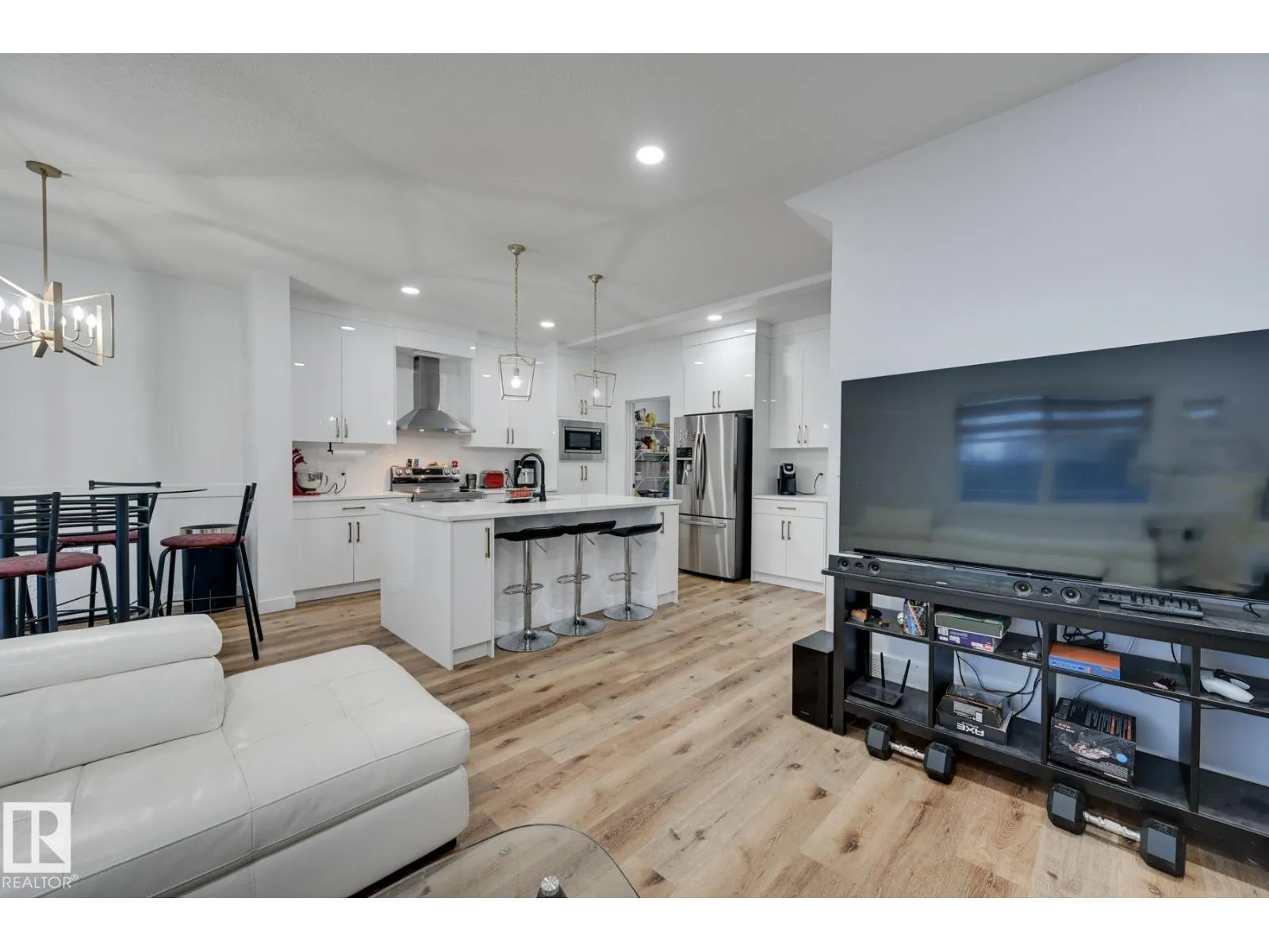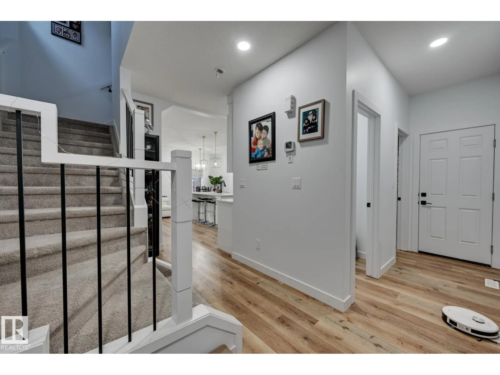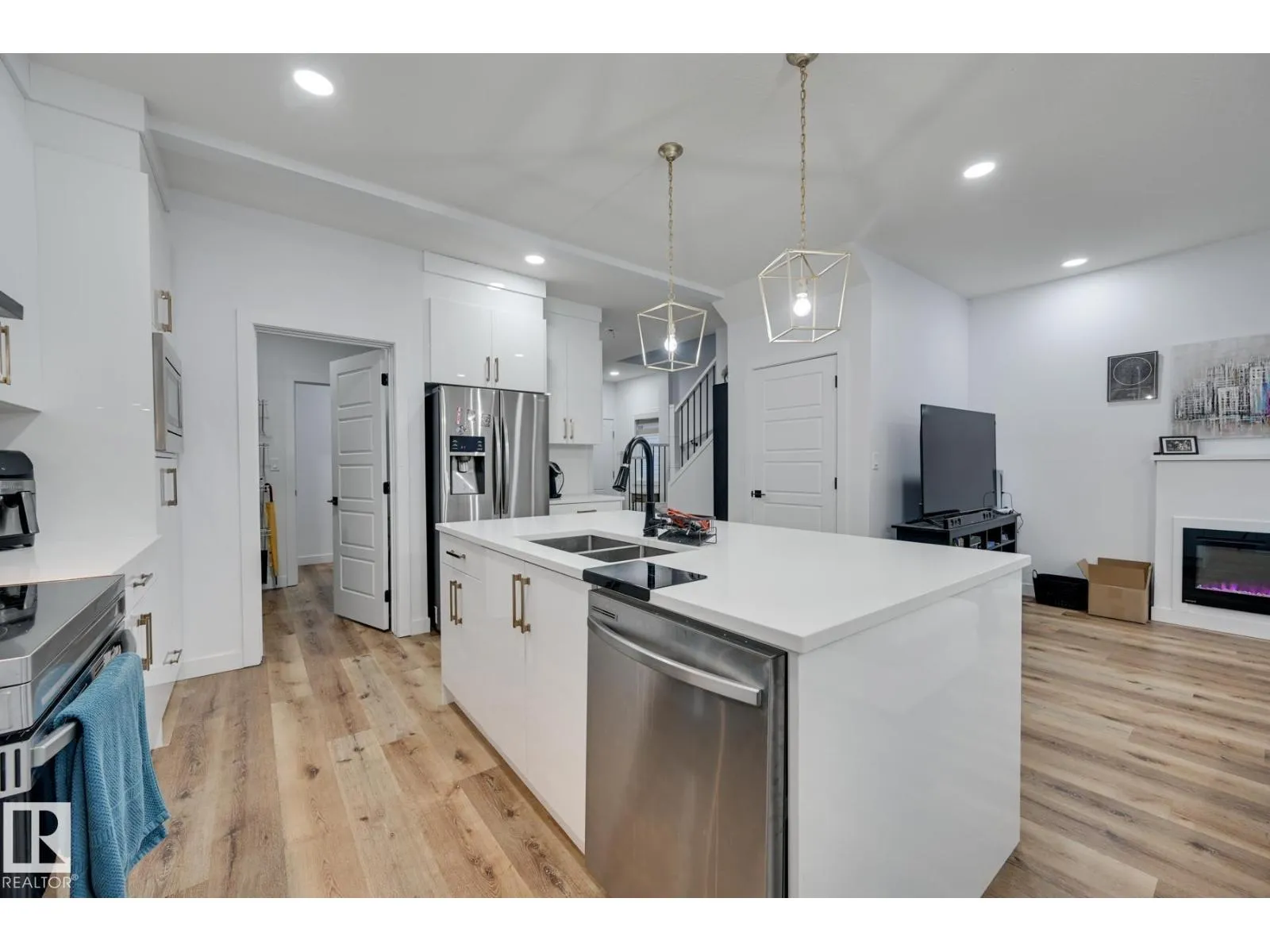 Welcome to Westhaven! This 1,634 sq ft two-storey half duplex offers modern finishes and a fully separate in-law suite with its own private entrance. The main floor features 9 ft ceilings, luxury vinyl plank flooring, and an open-concept layout with an electric fireplace. The kitchen includes quartz countertops, upgraded cabinetry, tiled backsplash, stainless steel appliances, designer lighting, and a walk-through pantry. Upstairs offers 3 bedrooms, a bonus room, 2 full bathrooms, and convenient upper-level laundry. The primary suite includes a 4-piece ensuite with dual sinks and a tiled shower. The fully separate basement in-law suite includes its own kitchen, bathroom, living space, and dedicated washer and dryer, perfect for extended family or multi-generational living. Complete with a double attached garage and spacious yard, close to schools, shopping, dining, and more. (id:27476)