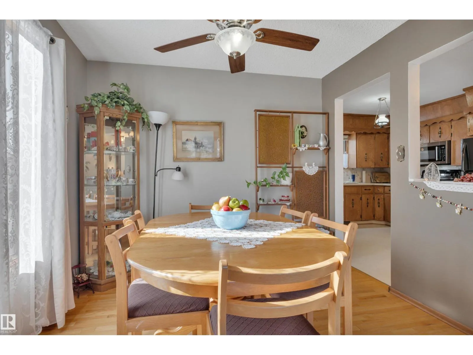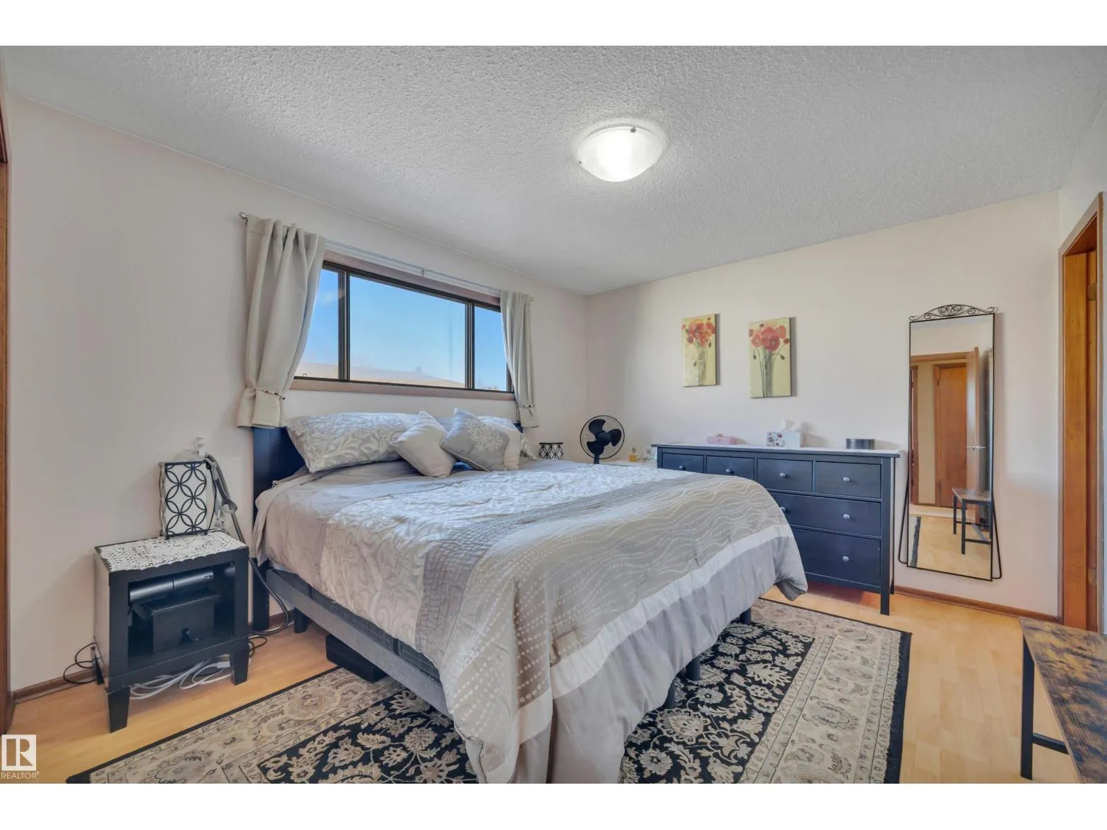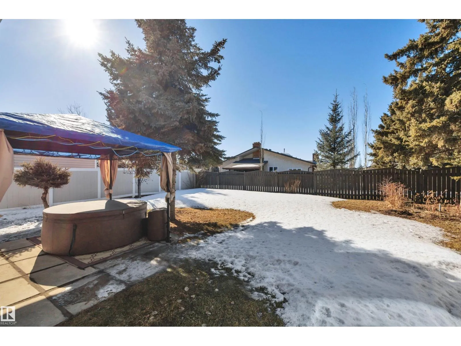 Excellent location in the desirable community of Leduc Estates backing a greenbelt! This well-maintained 1,224 sqft bi-level offers 5 bedrooms and 2.5 bathrooms and shows pride of ownership throughout. The bright split-entry design leads to a spacious living and dining area highlighted by custom wood accents. The L-shaped kitchen features an eat-in dining space, newer dishwasher, microwave hood fan and convenient main floor laundry with sink. The main level includes three bedrooms, including the primary with a 3-piece ensuite, plus a 4-piece main bath. The fully finished basement offers a large family room, two additional bedrooms, a den or home office, and a 2-piece bath. Additional upgrades include a high-efficiency furnace with new AC! Outside, enjoy the fully fenced private yard backing directly onto green space with a covered deck, hot tub and gazebo. Double attached garage and quiet street location just minutes from Leduc Common, Fred John's Park, Leduc Golf Course, and schools. (id:27476)