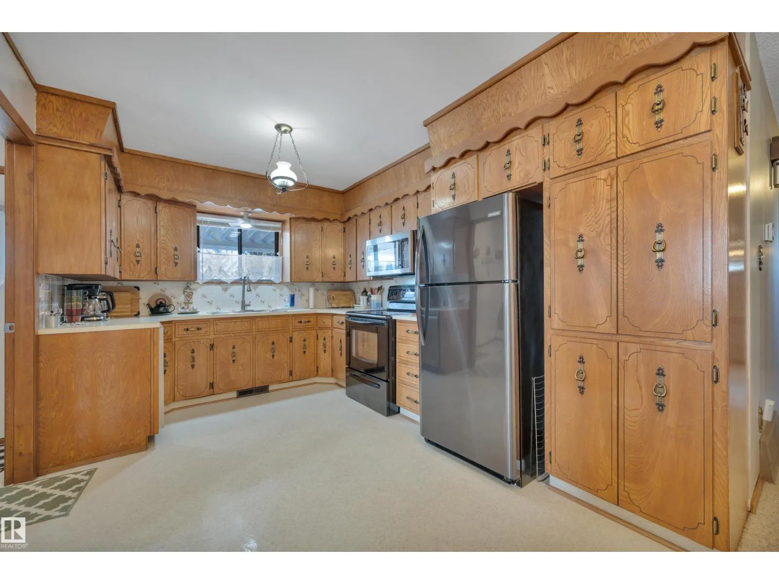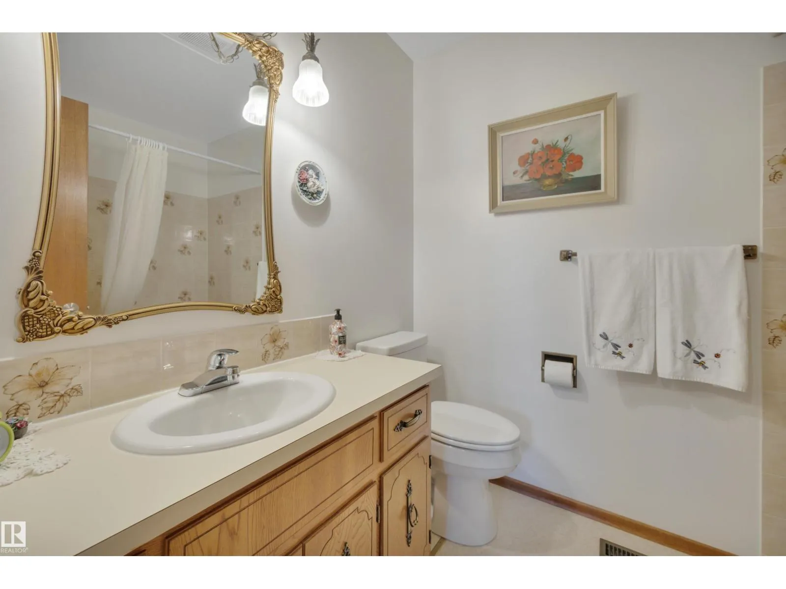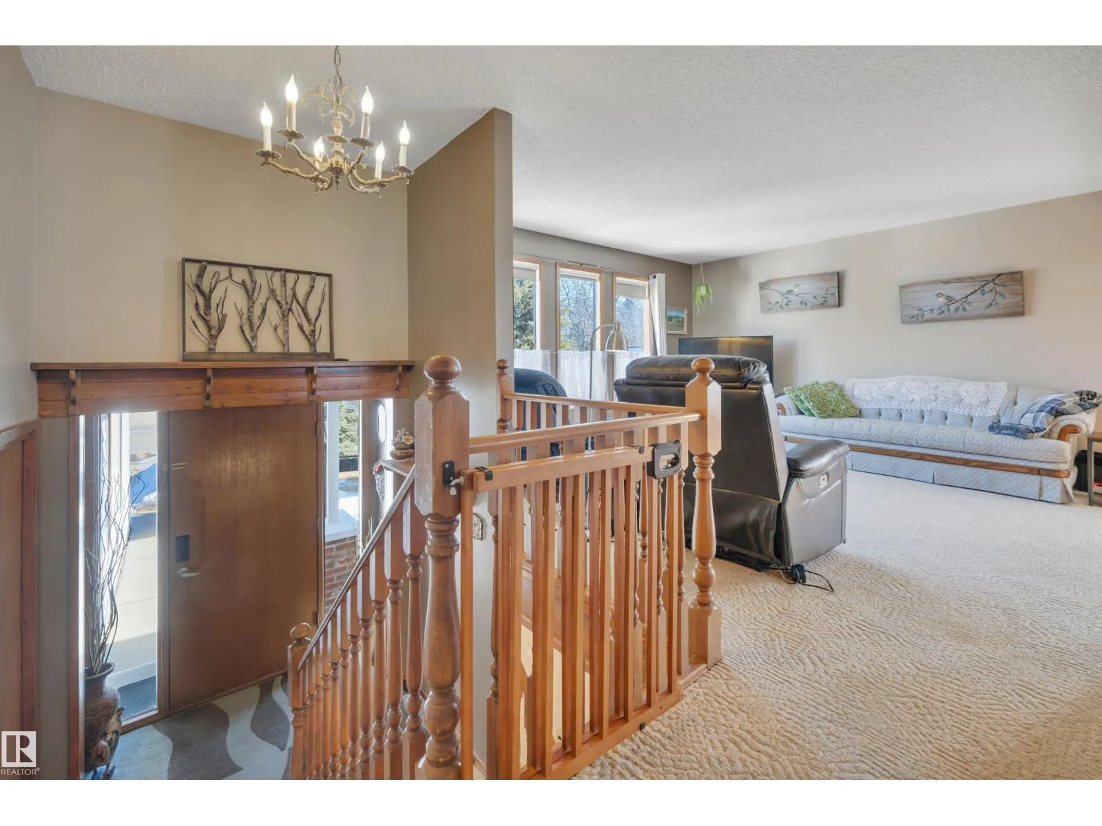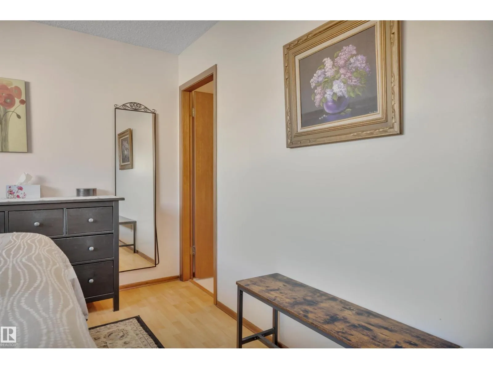 Excellent location in the desirable community of Leduc Estates backing a greenbelt! This well-maintained 1,224 sqft bi-level offers 5 bedrooms and 2.5 bathrooms and shows pride of ownership throughout. The bright split-entry design leads to a spacious living and dining area highlighted by custom wood accents. The L-shaped kitchen features an eat-in dining space, newer dishwasher, microwave hood fan and convenient main floor laundry with sink. The main level includes three bedrooms, including the primary with a 3-piece ensuite, plus a 4-piece main bath. The fully finished basement offers a large family room, two additional bedrooms, a den or home office, and a 2-piece bath. Additional upgrades include a high-efficiency furnace with new AC! Outside, enjoy the fully fenced private yard backing directly onto green space with a covered deck, hot tub and gazebo. Double attached garage and quiet street location just minutes from Leduc Common, Fred John's Park, Leduc Golf Course, and schools. (id:27476)