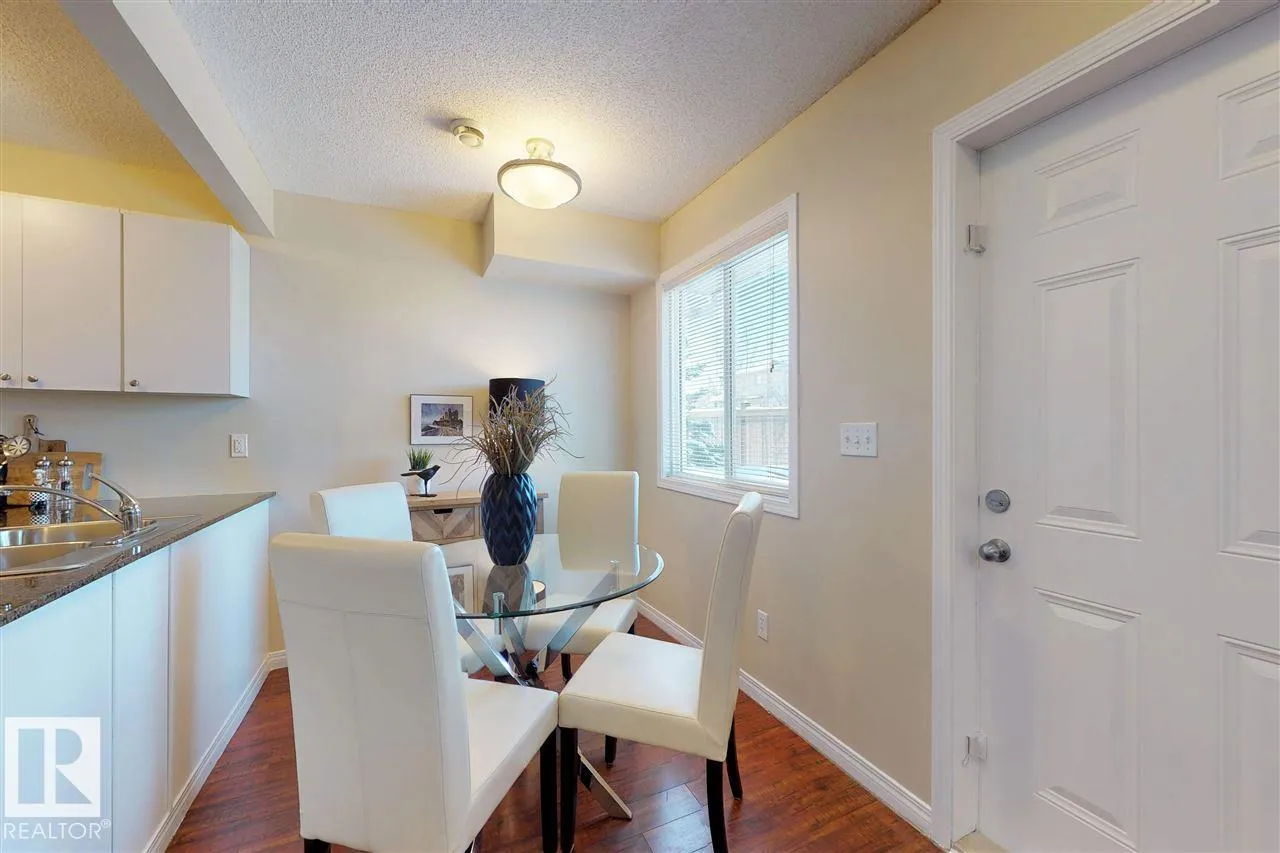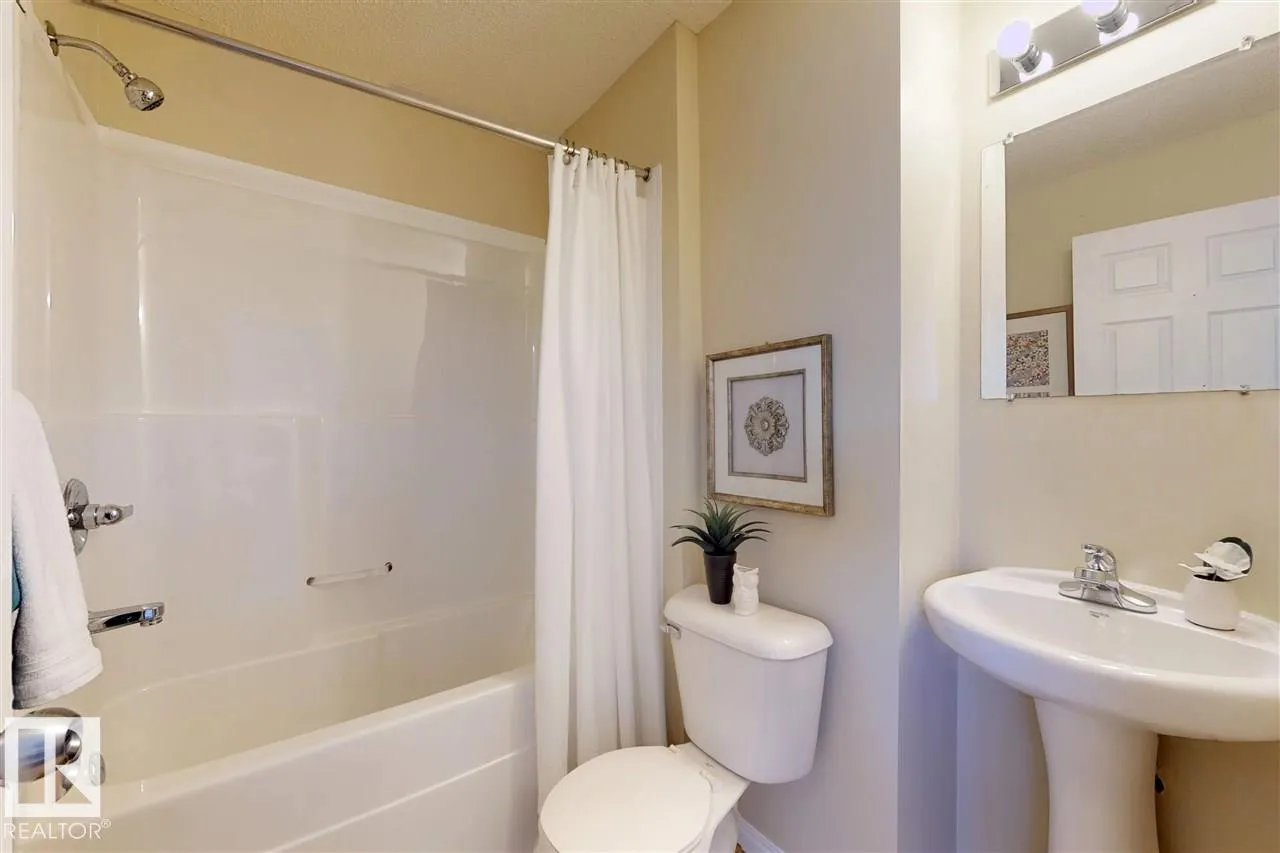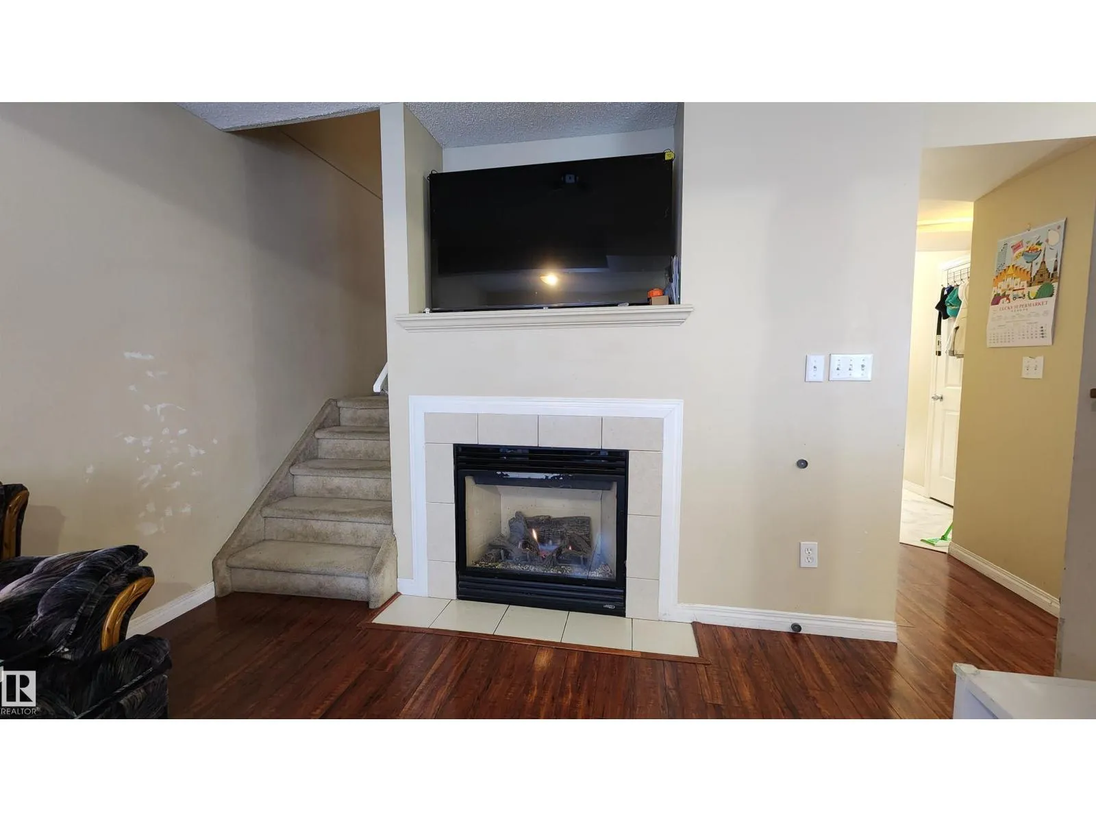 Welcome to this attractive two-story townhouse steps from LEDUC COMMON, offering restaurants, banks, major retailers, dollar stores and more. Enjoy an ATTACHED GARAGE plus driveway parking. Inside, a LARGE FOYER with coat closet and newer vinyl flooring leads to a convenient 2-PIECE BATH. The efficient kitchen features QUARTZ COUNTERS and a CERAN-TOP AMANA RANGE. A bright dining area overlooks the cozy living room with a NATURAL GAS FIREPLACE and a LARGE MANTEL for your TV and electronics. Upstairs are THREE BEDROOMS, including a SPACIOUS PRIMARY with WALK-IN CLOSET and FOUR-PIECE ENSUITE. Another FULL BATH serves the additional bedrooms. The 2ND-FLOOR LAUNDRY ROOM adds everyday convenience. Nearby is a HUGE PARK with playground and toboggan hill. Quick access to the INTERNATIONAL AIRPORT, NISKU and EDMONTON. You get it all: attached garage, three bedrooms, fireplace and 2.5 baths. (id:27476)