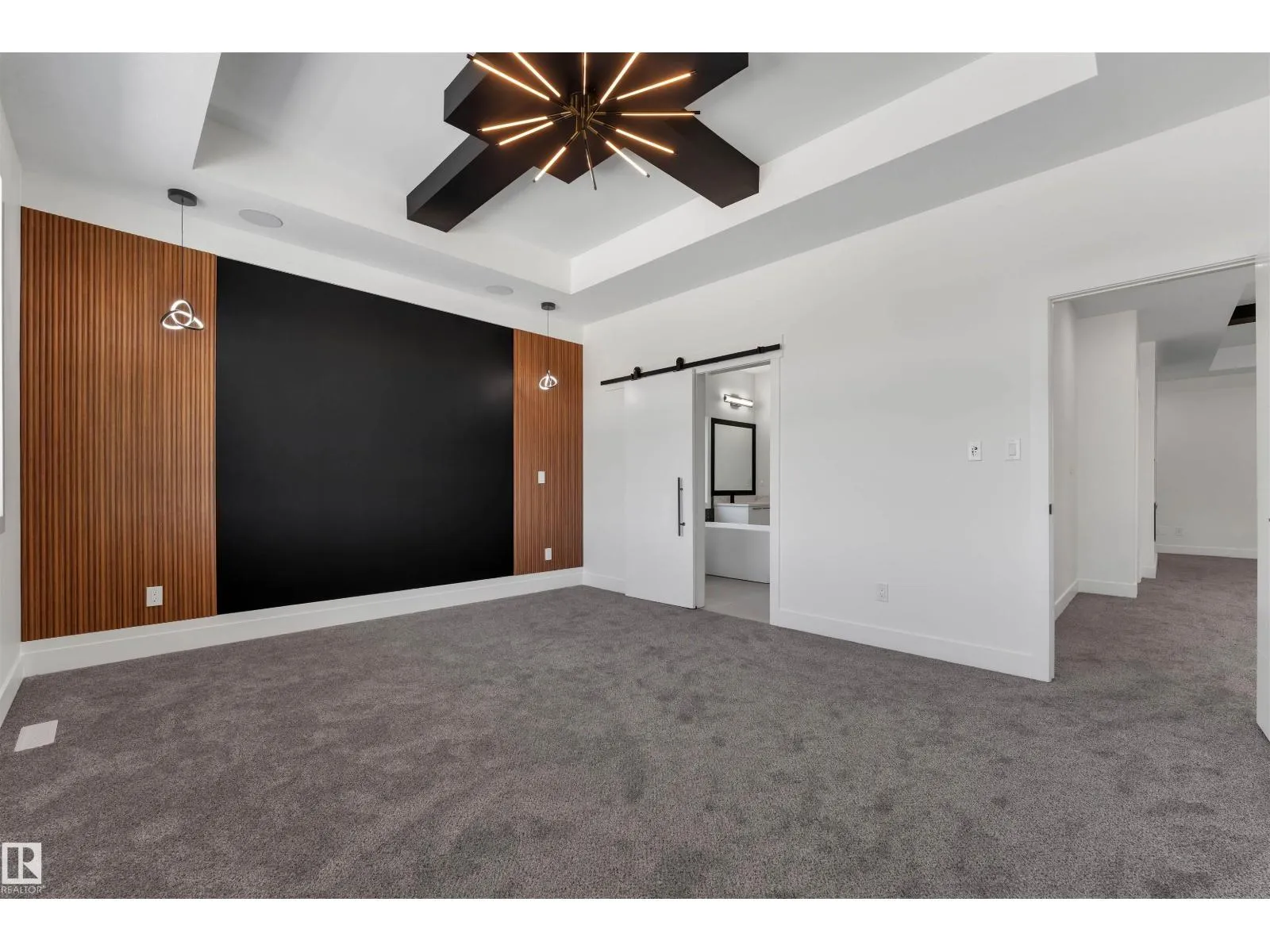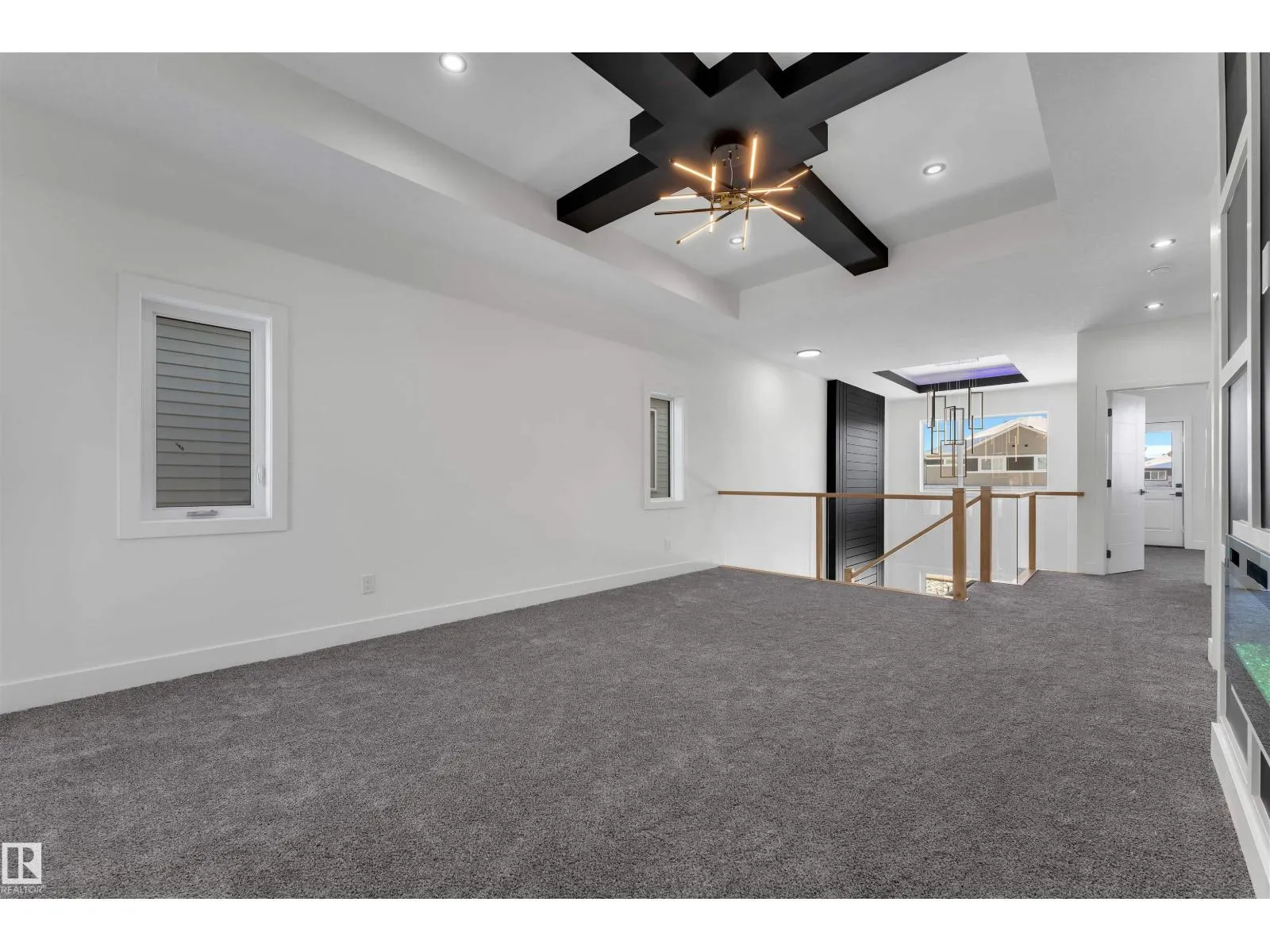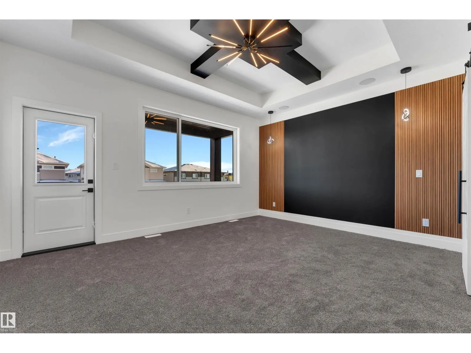 TRIPLE-CAR GARAGE | RV Parking | FULLY UPGRADED | Backing to walking trail | CUSTOM-BUILT SHOWSTOPPER. Step into a home that actually delivers. This stunning, fully upgraded custom residence features a versatile main-floor den/office that easily doubles as an extra bedroom, paired with a convenient half bath. The kitchen? Absolute art. A chefâs dream with premium finishes, a sleek design, and a walk-in pantry for serious storage. The living room features a custom statement wall that anchors the entire space, while the dining area opens directly onto the deckâperfect for hosting or just vibing on a calm evening.Head upstairs to a bright bonus room, ideal for family hangouts or a cozy entertainment zone. The primary bedroom is massive, highlighted by a designer feature wall, a truly luxurious 5-piece custom ensuite, and a walk-in closet made for someone who loves organization. Two additional generous bedrooms share a well-appointed full bath, and the second-floor laundry adds next-level convenience. (id:27476)