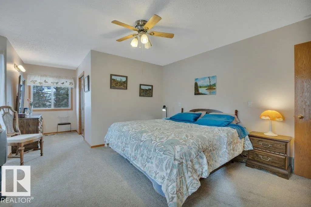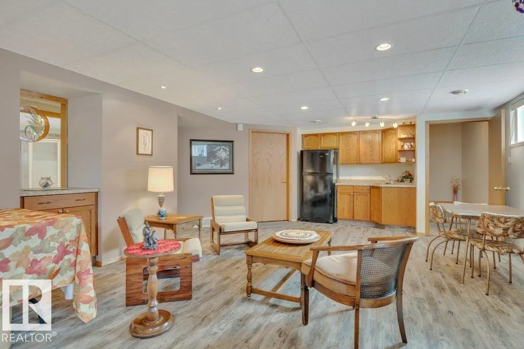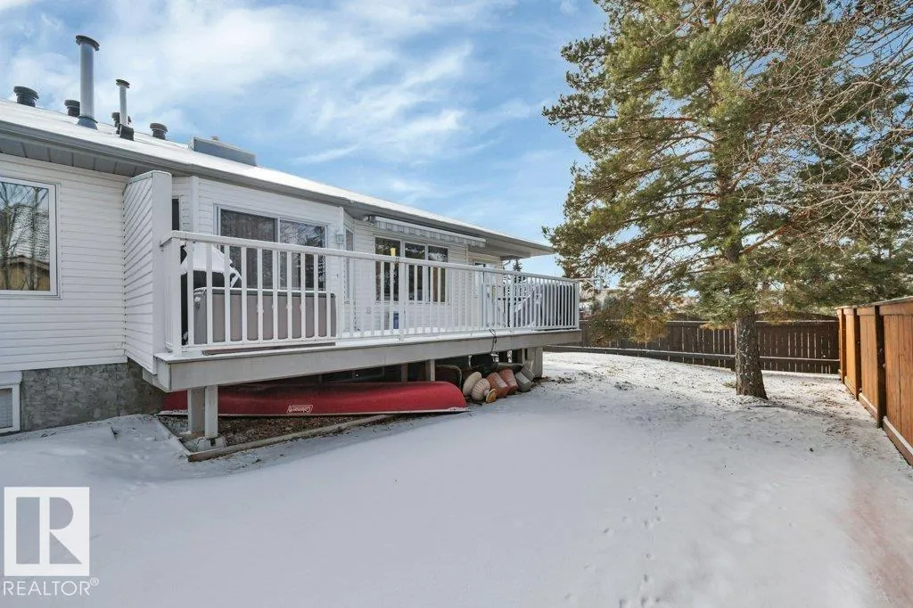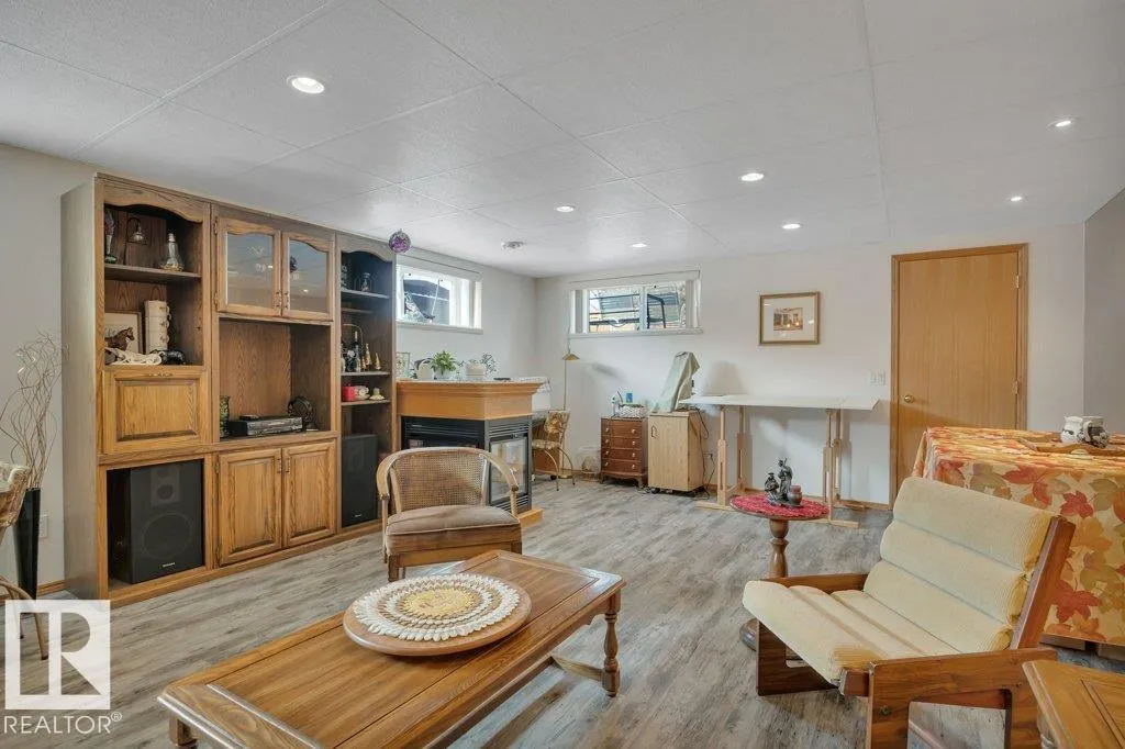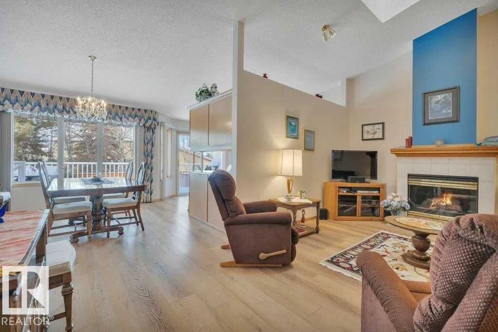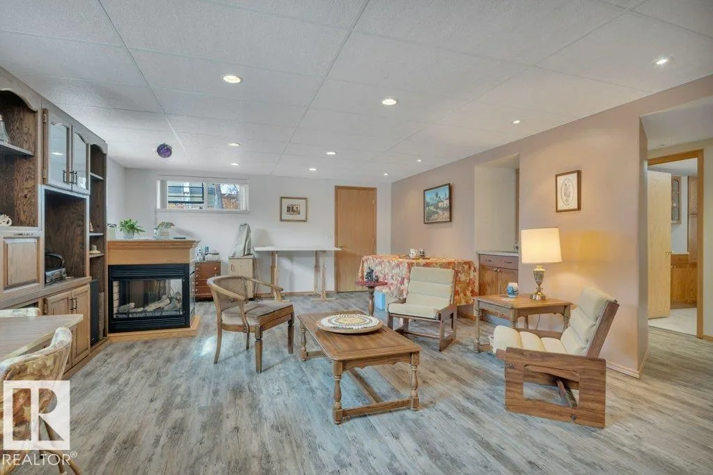 A well-maintained duplex bungalow in an adult (55+) living community in the desirable Lakeside Estates area. One of the largest units over 1500 SQFT main floor and full developed basement. Lots of natural light thanks to its end unit location, vaulted ceiling living room skylight & large basement windows. A bright main floor with open-concept layout, large kitchen, dining & living room with cozy gas fireplace. A large primary bedroom, 3-pc ensuite & walk in closet, 2nd bedroom with murphy bed, 4-pc main bathroom with walk-in tub, & main floor laundry. In the basement enjoy a 3rd bedroom, large 3-pc bath with storage cabinets, & large recreation room with wet bar. There is ample storage throughout with cold room & workbench for home projects. Relax on west facing backyard deck with powered wall awning. Out front is the attached double garage, & charming front porch. Visitor & RV parking directly across from the unit. Close to shopping, schools, recreation, golfing & all of Leducâs amenities. (id:27476)