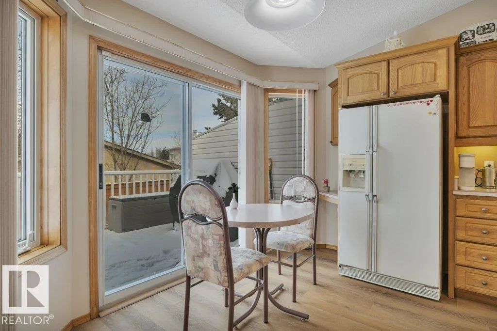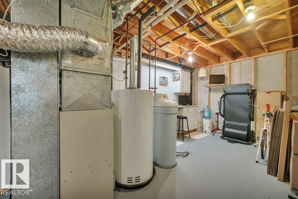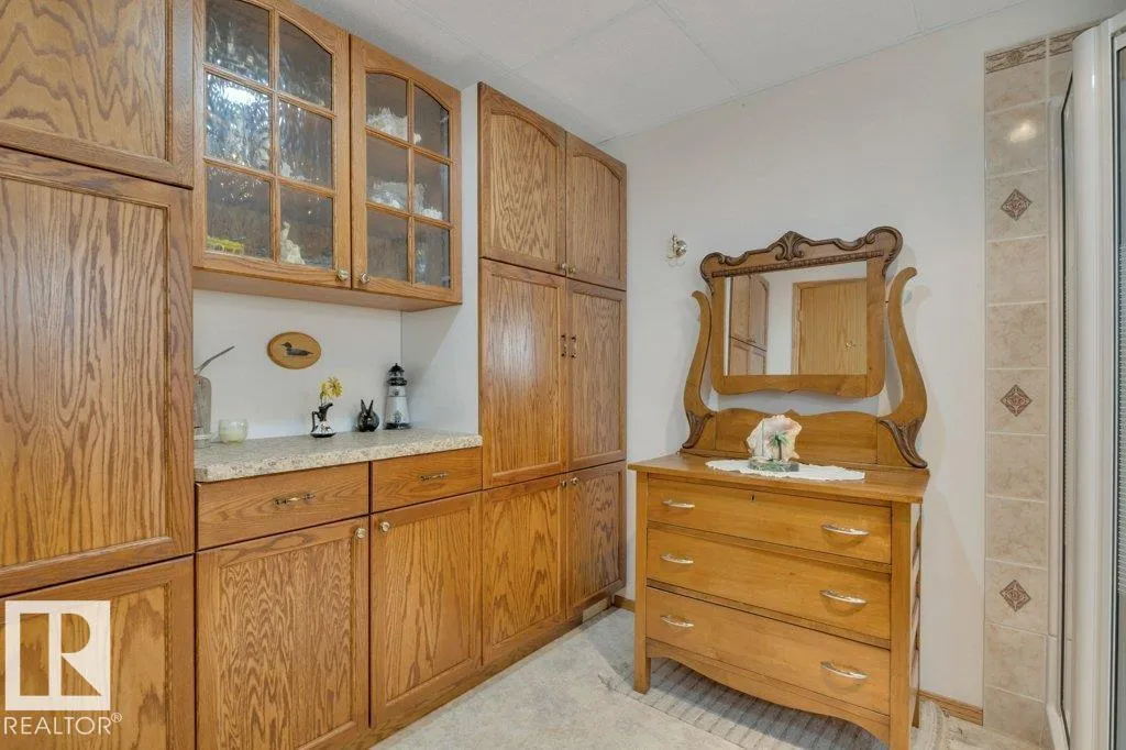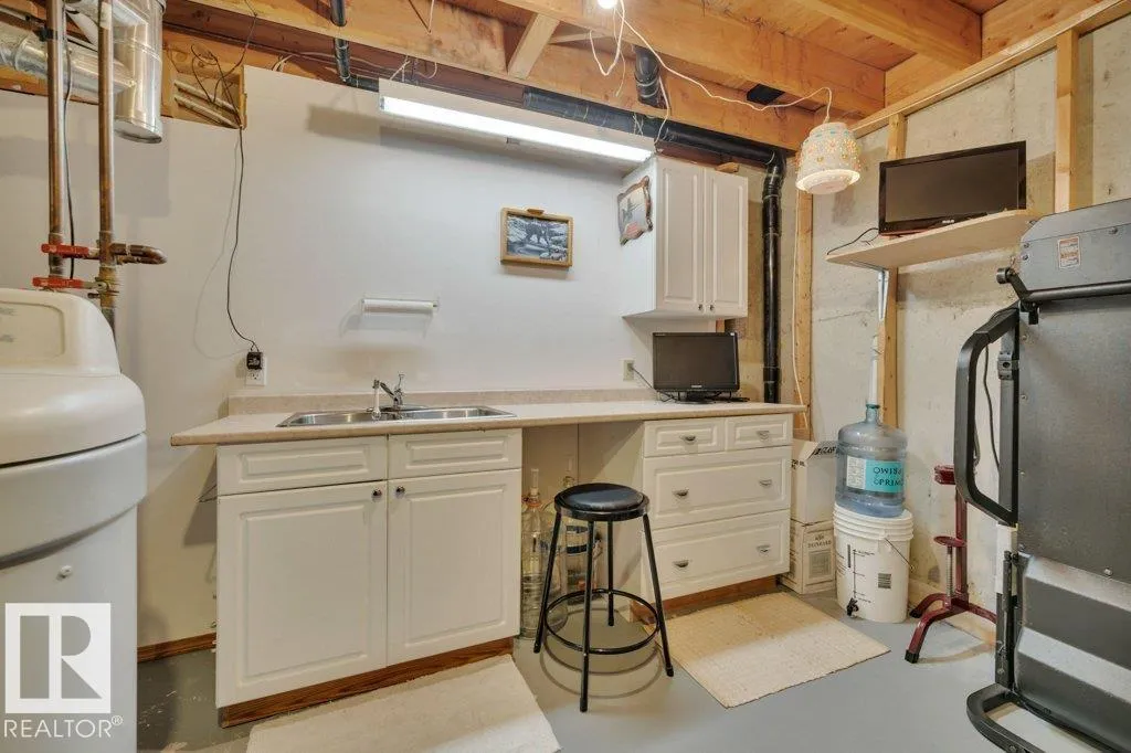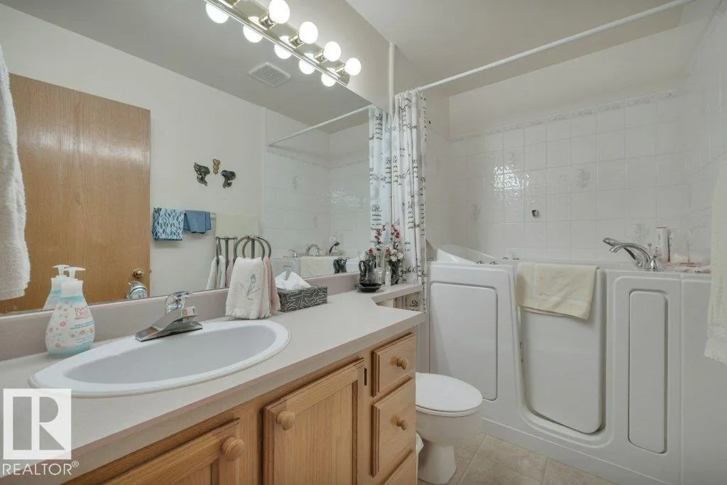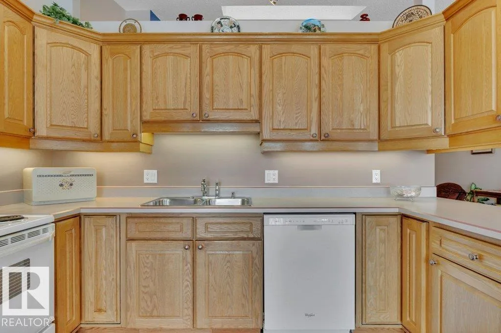 A well-maintained duplex bungalow in an adult (55+) living community in the desirable Lakeside Estates area. One of the largest units over 1500 SQFT main floor and full developed basement. Lots of natural light thanks to its end unit location, vaulted ceiling living room skylight & large basement windows. A bright main floor with open-concept layout, large kitchen, dining & living room with cozy gas fireplace. A large primary bedroom, 3-pc ensuite & walk in closet, 2nd bedroom with murphy bed, 4-pc main bathroom with walk-in tub, & main floor laundry. In the basement enjoy a 3rd bedroom, large 3-pc bath with storage cabinets, & large recreation room with wet bar. There is ample storage throughout with cold room & workbench for home projects. Relax on west facing backyard deck with powered wall awning. Out front is the attached double garage, & charming front porch. Visitor & RV parking directly across from the unit. Close to shopping, schools, recreation, golfing & all of Leducâs amenities. (id:27476)