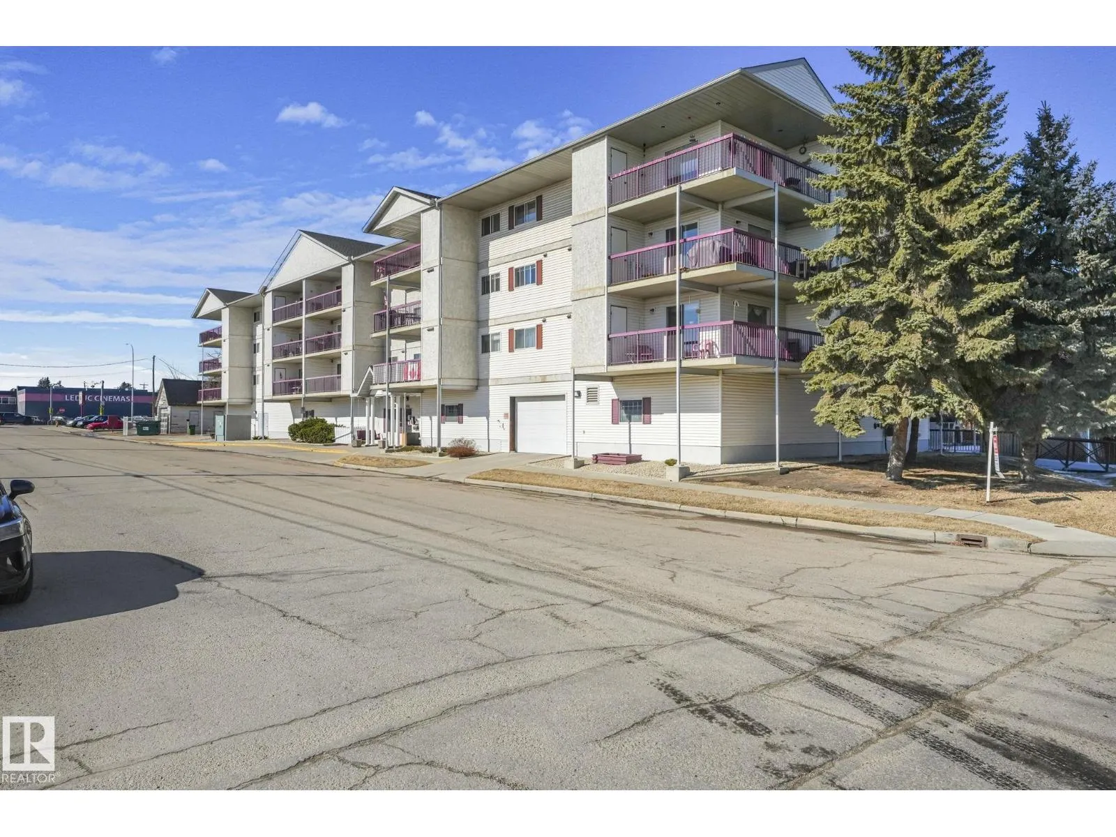 A Rare Find! Centrally located to downtown and shopping yet just steps from the library, arena and swimming pool, this condo offers superior soundproofing (concrete floors between levels) and security for peace of mind. Bright, open floor plan boasts a large kitchen with lots of cabinets & counter space, living room with patio doors to covered balcony and storage room, master bedroom that will easily accommodate a large suite, French doors on the 2nd bedroom would allow for a great den. Laundry room offers a full-size washer & dryer and extra storage space. Heated main floor parkade. The well managed building boasts low condo fees & amenities including a social room, exercise area and workshop. Cranberry Court is a vibrant 55+ community with an active social committee. Welcome Home! (id:27476)