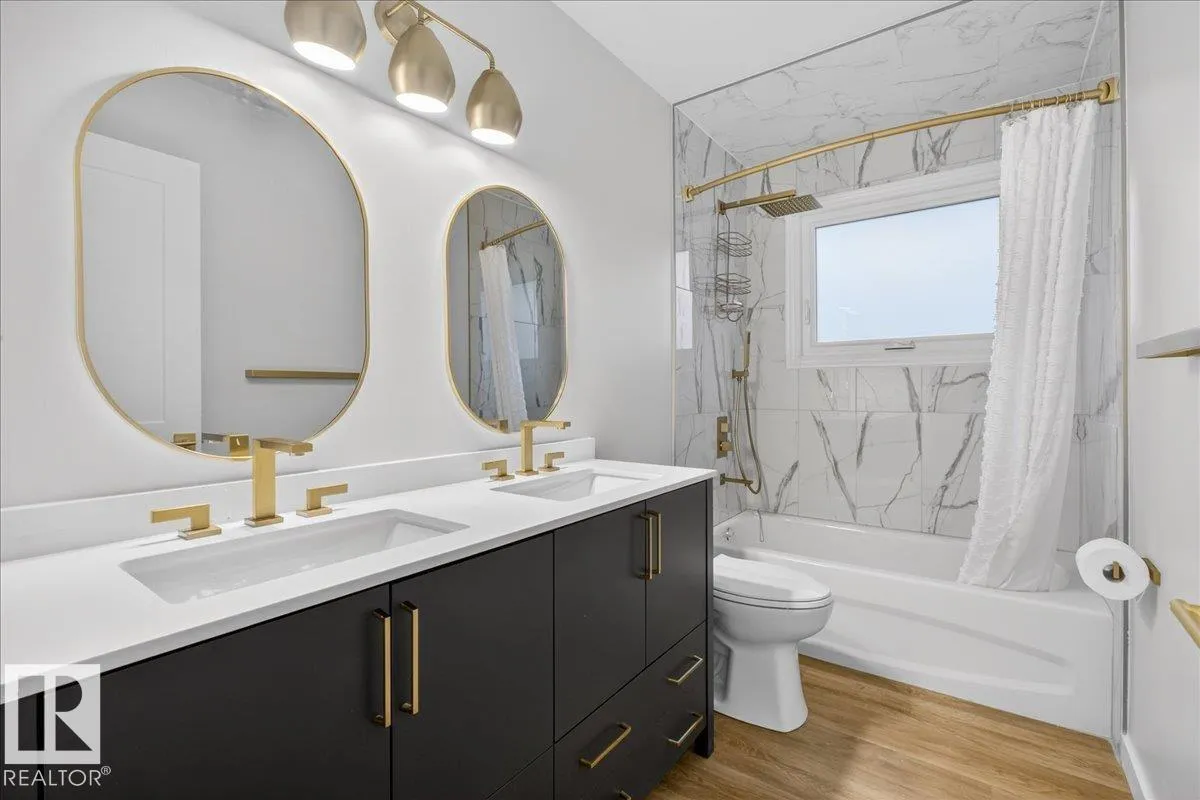If your idea of a perfect family home is âmove in, unpack, and never pick up a hammer again: this is it. Tucked into a mature Leduc neighbourhood, this fully reno'd 1211 sq ft bilevel gives you space, privacy, and zero to-do lists. With 2 beds up, 2 down, and 2 full baths, thereâs room for kids, guests, and that âquiet cornerâ youâve been dreaming about. The new kitchen is ready for everything, and includes extra cabinets for plenty of storage. Fresh paint, new vinyl flooring, updated bathrooms, modern lighting, and a bright new foyer mean everything feels clean, comfortable, and most importantly: finished. Big ticket items? Covered! Triple pane windows, siding, roof, furnace, electrical panel: DONE. The oversized (28'x21') heated garage fits 3 cars (or 2 cars + all your âI might need this somedayâ stuff). Corner lot = tons of parking. Two basement entries + laundry options = future suite potential. Close to all amenities. Move in, settle down, and start making memories. Some photos virtually staged. (id:27476)