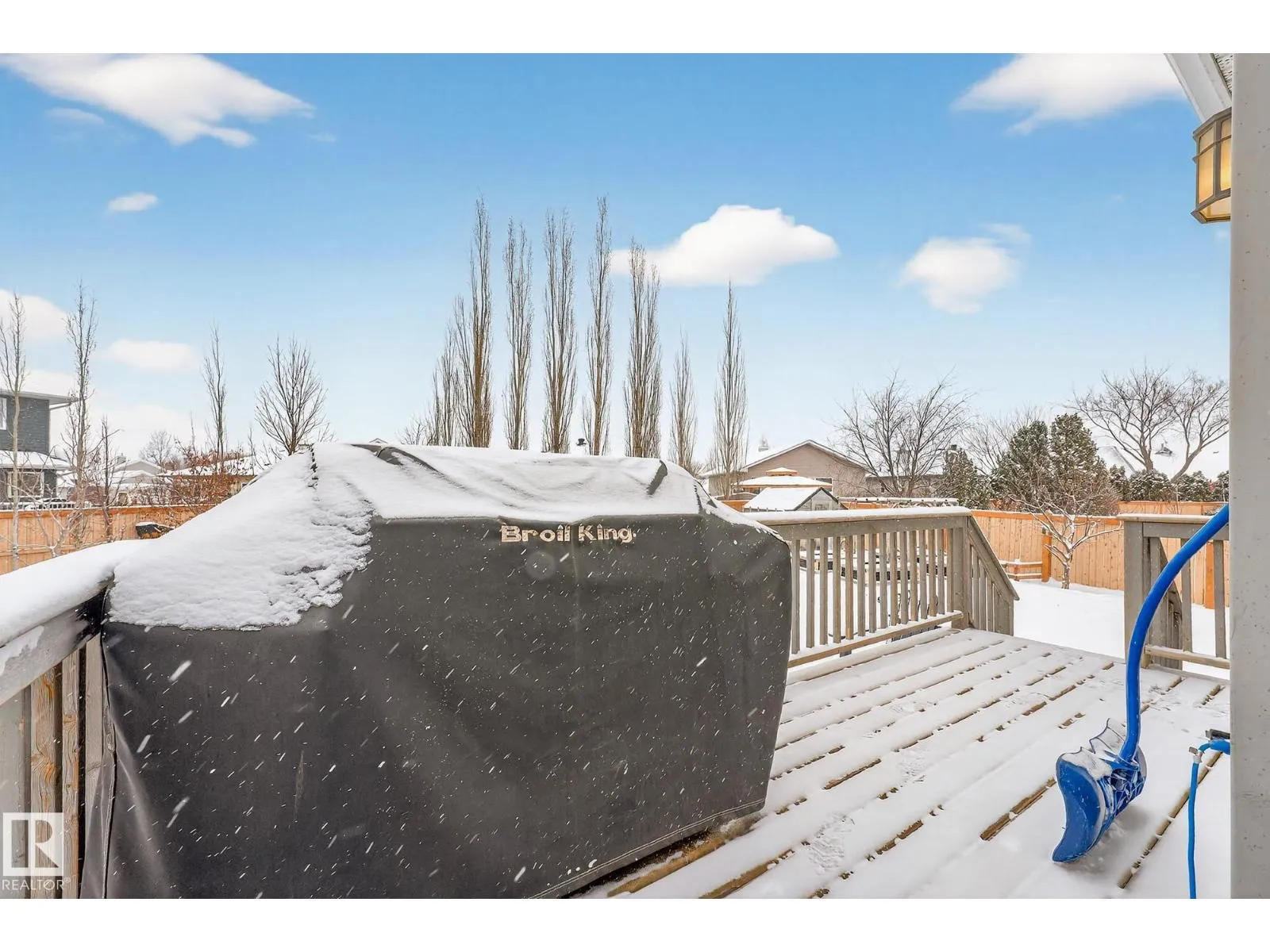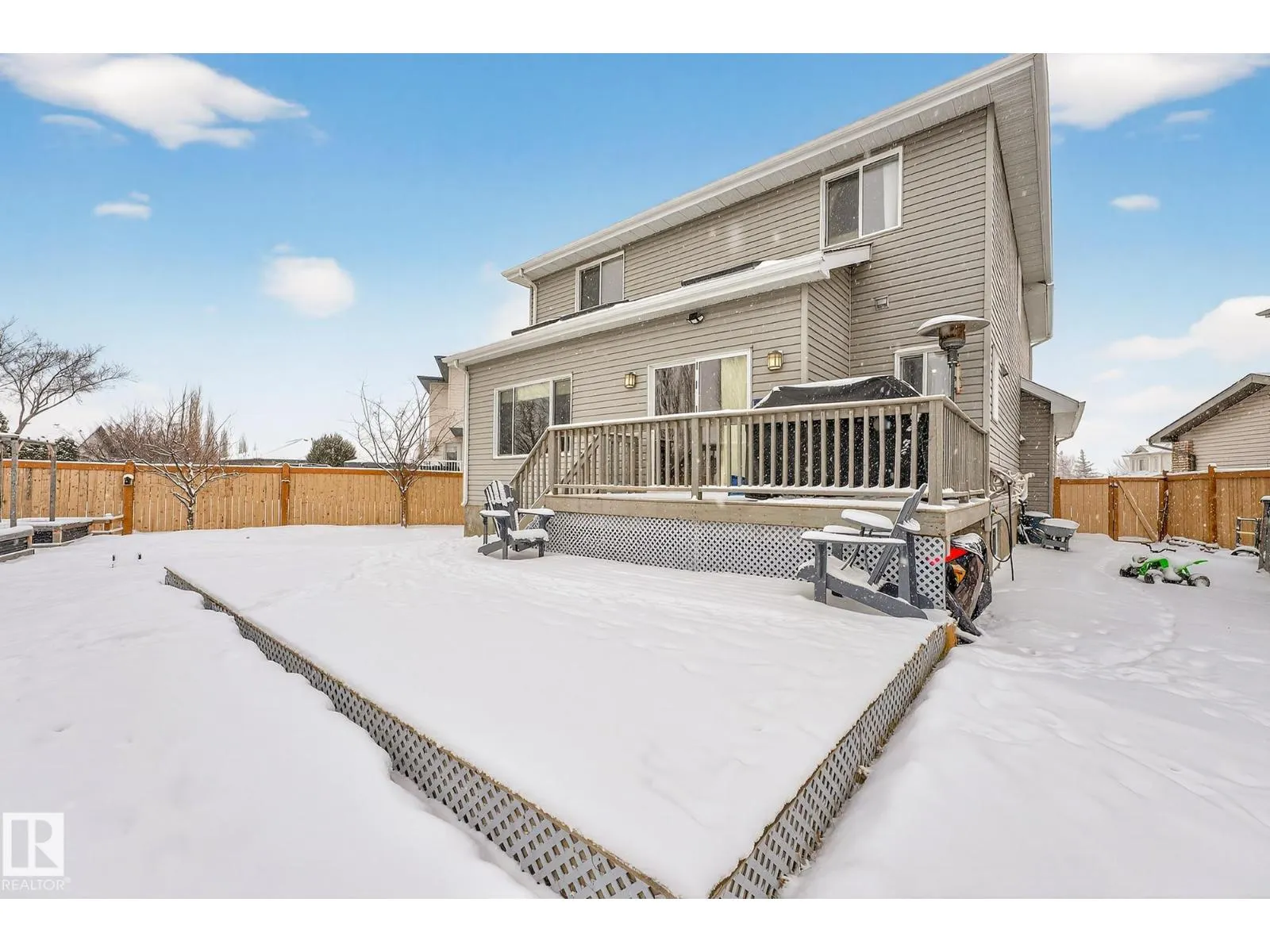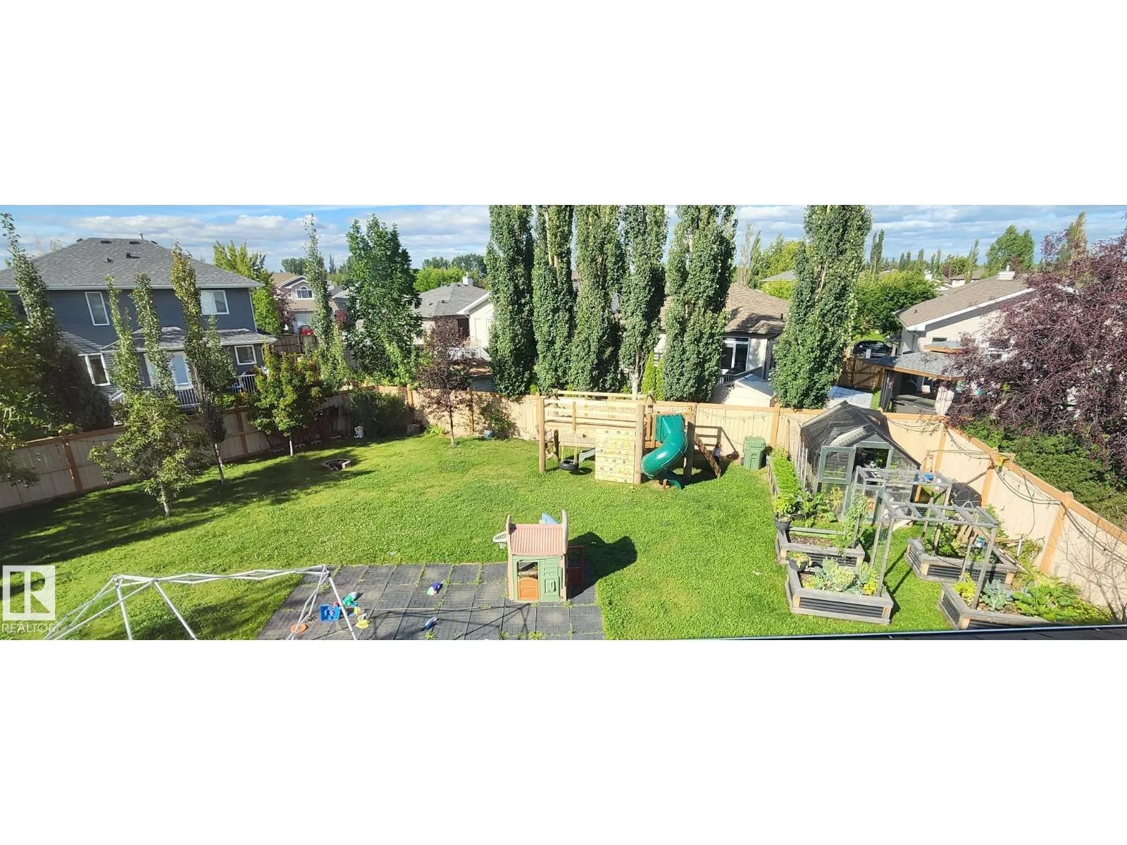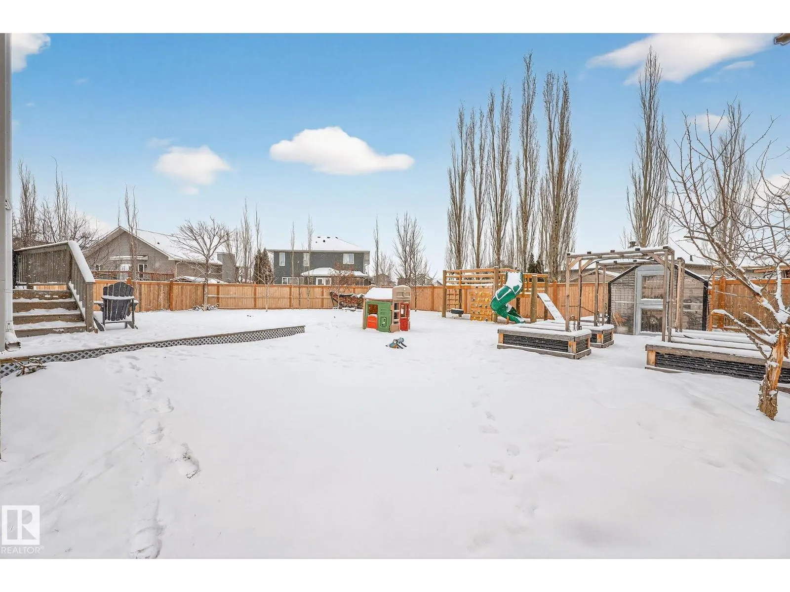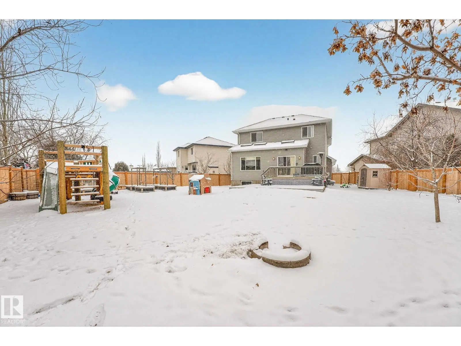 Welcome to Windrose, one of Leducâs most sought-after neighborhoods. This beautiful home sits on a huge pie-shaped lot, offering an exceptional backyard experience with mature landscaping, green house, cherry and pear trees, strawberry patch, and a spacious two-tier deckâperfect for outdoor living and entertaining. Inside, 9' ceilings and an open layout create a warm, inviting main floor with a bright office, cozy gas fireplace, and large windows. The kitchen features granite counters, ample cabinetry, a walk-through pantry, and eating area leading out to that fantastic yard. Upstairs, a stylish feature wall leads to a generous bonus room with barn-door privacy. The primary suite impresses with its size and spa-inspired 5pc ensuite, while two additional large bedrooms and a 4pc bath complete the level. Added value includes a newer furnace and A/C plus HWT (2019). All of this just steps from schools, parks, trails, and convenient amenities. (id:27476)