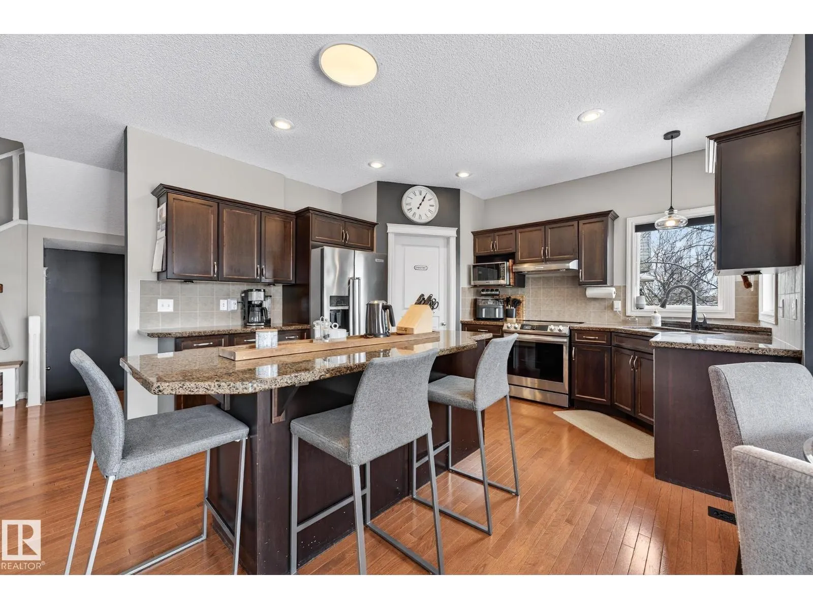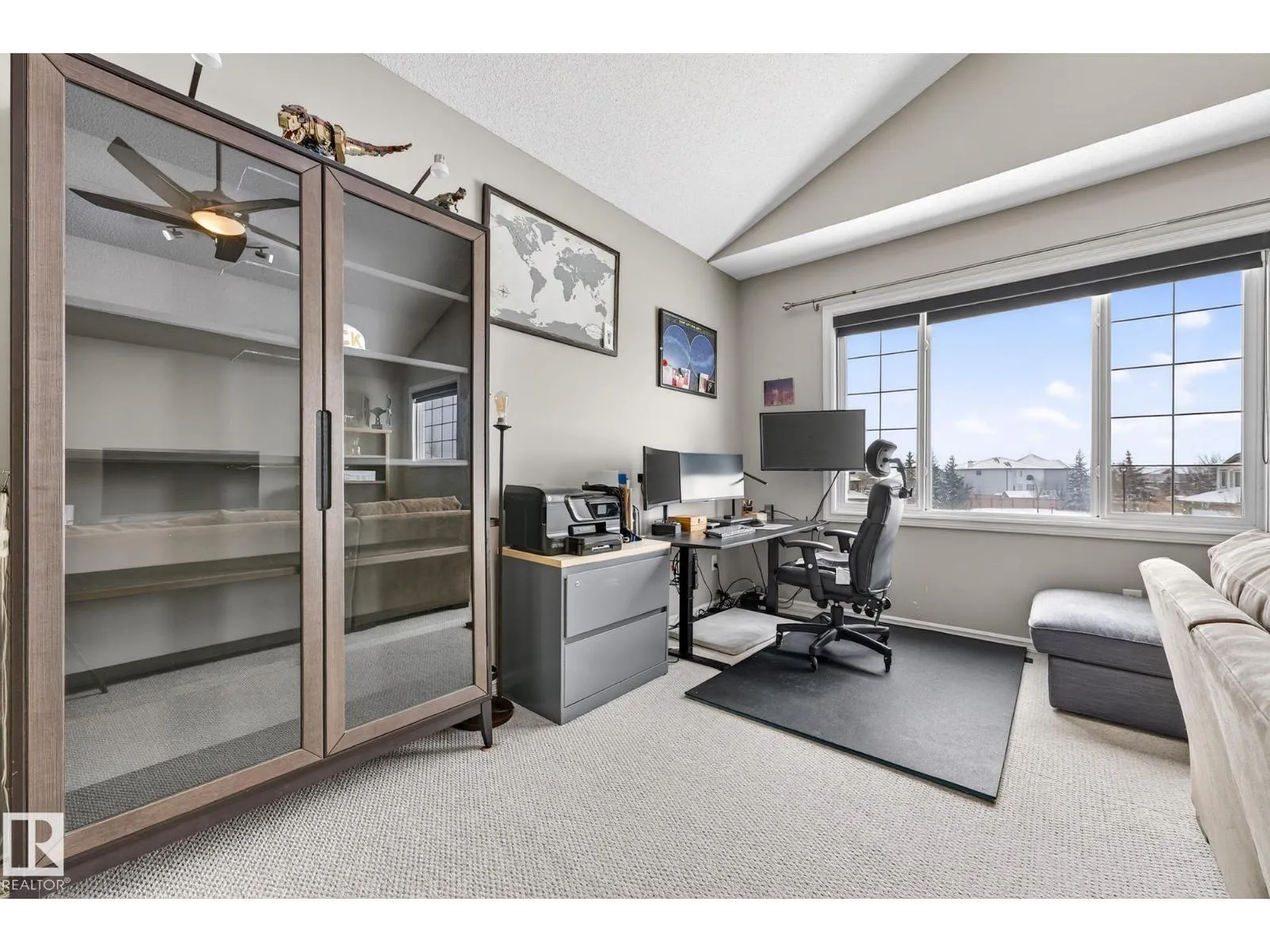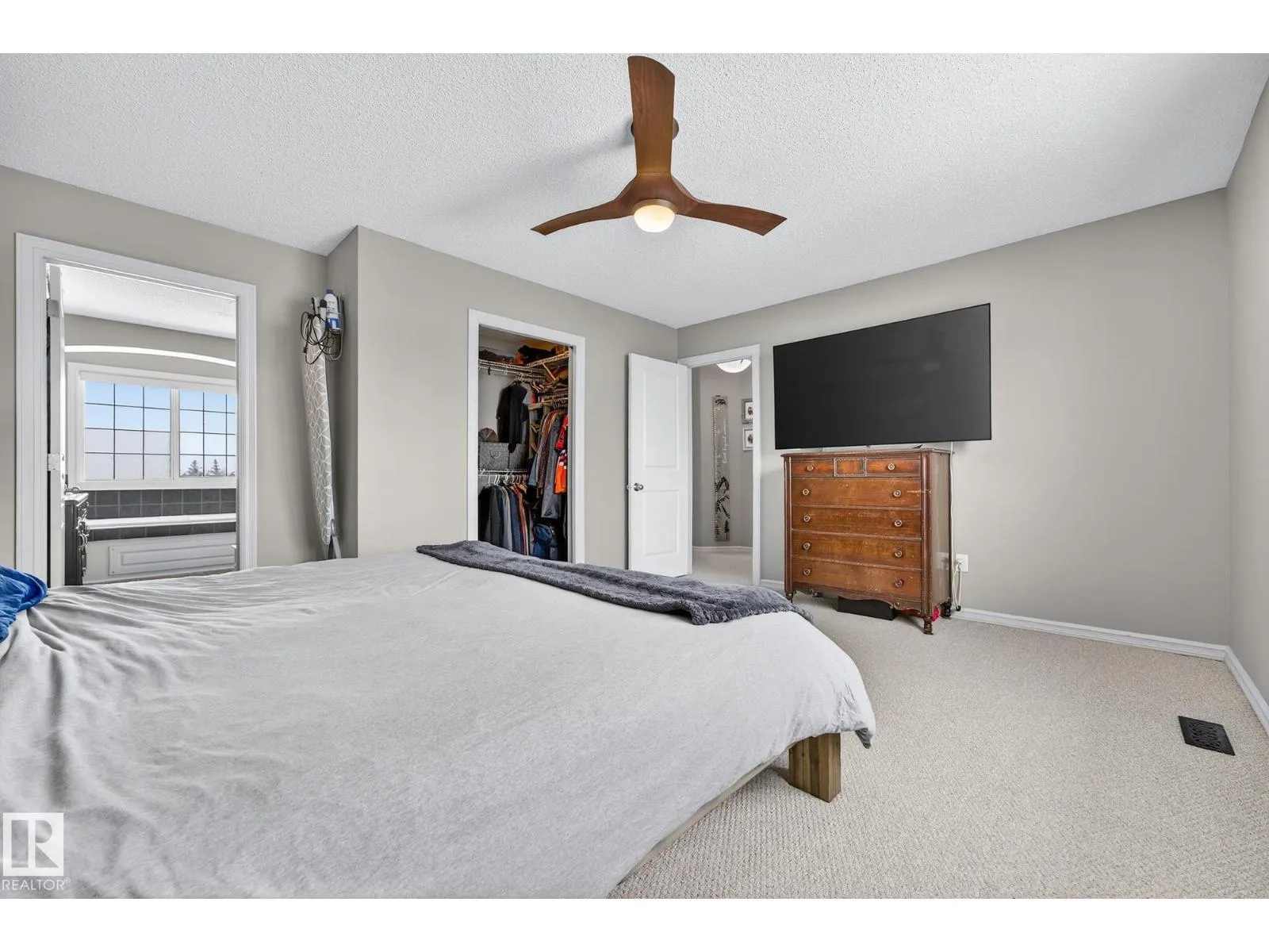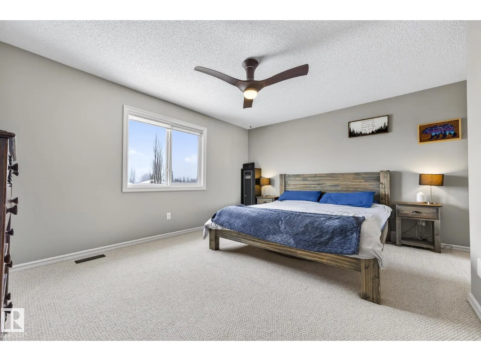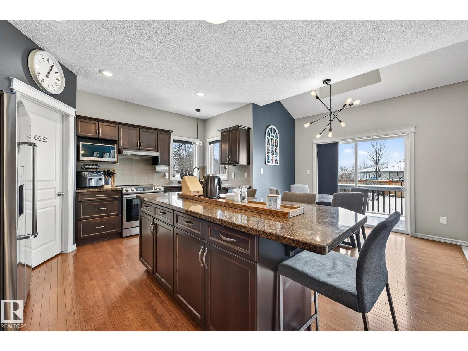 Welcome to Windrose, one of Leducâs most sought-after neighborhoods. This beautiful home sits on a huge pie-shaped lot, offering an exceptional backyard experience with mature landscaping, green house, cherry and pear trees, strawberry patch, and a spacious two-tier deckâperfect for outdoor living and entertaining. Inside, 9' ceilings and an open layout create a warm, inviting main floor with a bright office, cozy gas fireplace, and large windows. The kitchen features granite counters, ample cabinetry, a walk-through pantry, and eating area leading out to that fantastic yard. Upstairs, a stylish feature wall leads to a generous bonus room with barn-door privacy. The primary suite impresses with its size and spa-inspired 5pc ensuite, while two additional large bedrooms and a 4pc bath complete the level. Added value includes a newer furnace and A/C plus HWT (2019). All of this just steps from schools, parks, trails, and convenient amenities. (id:27476)