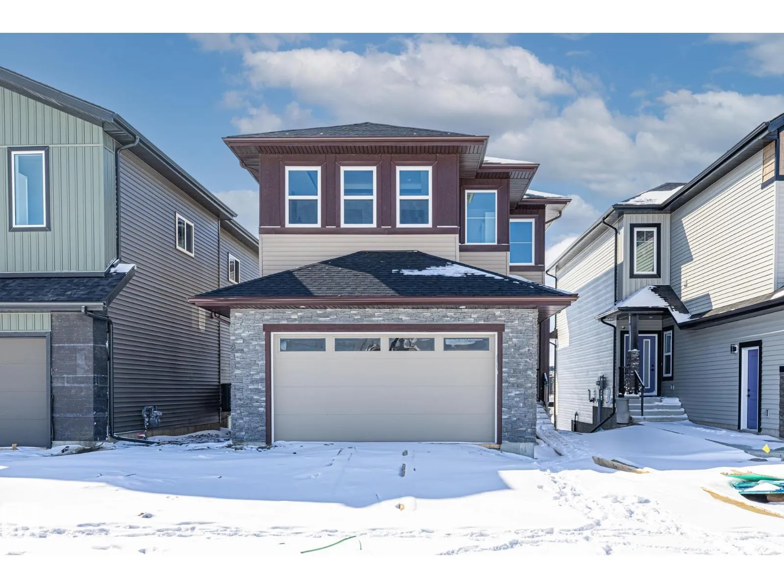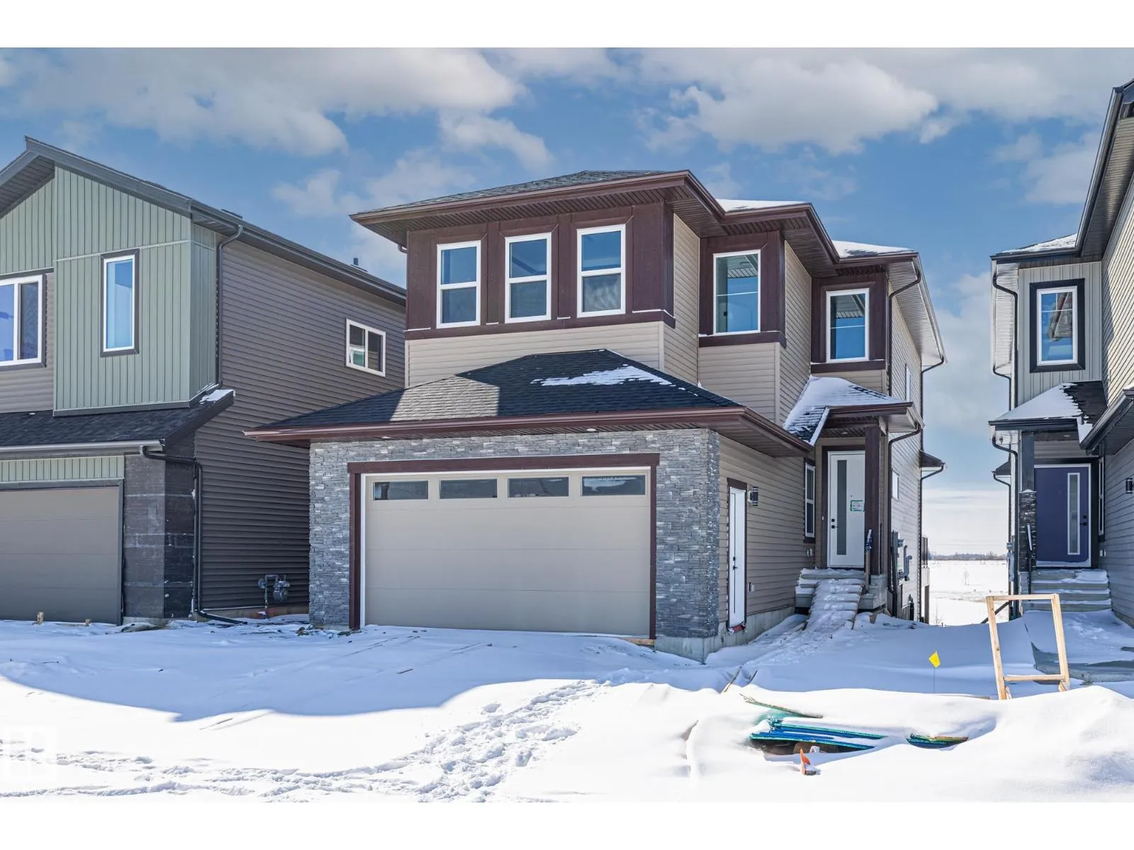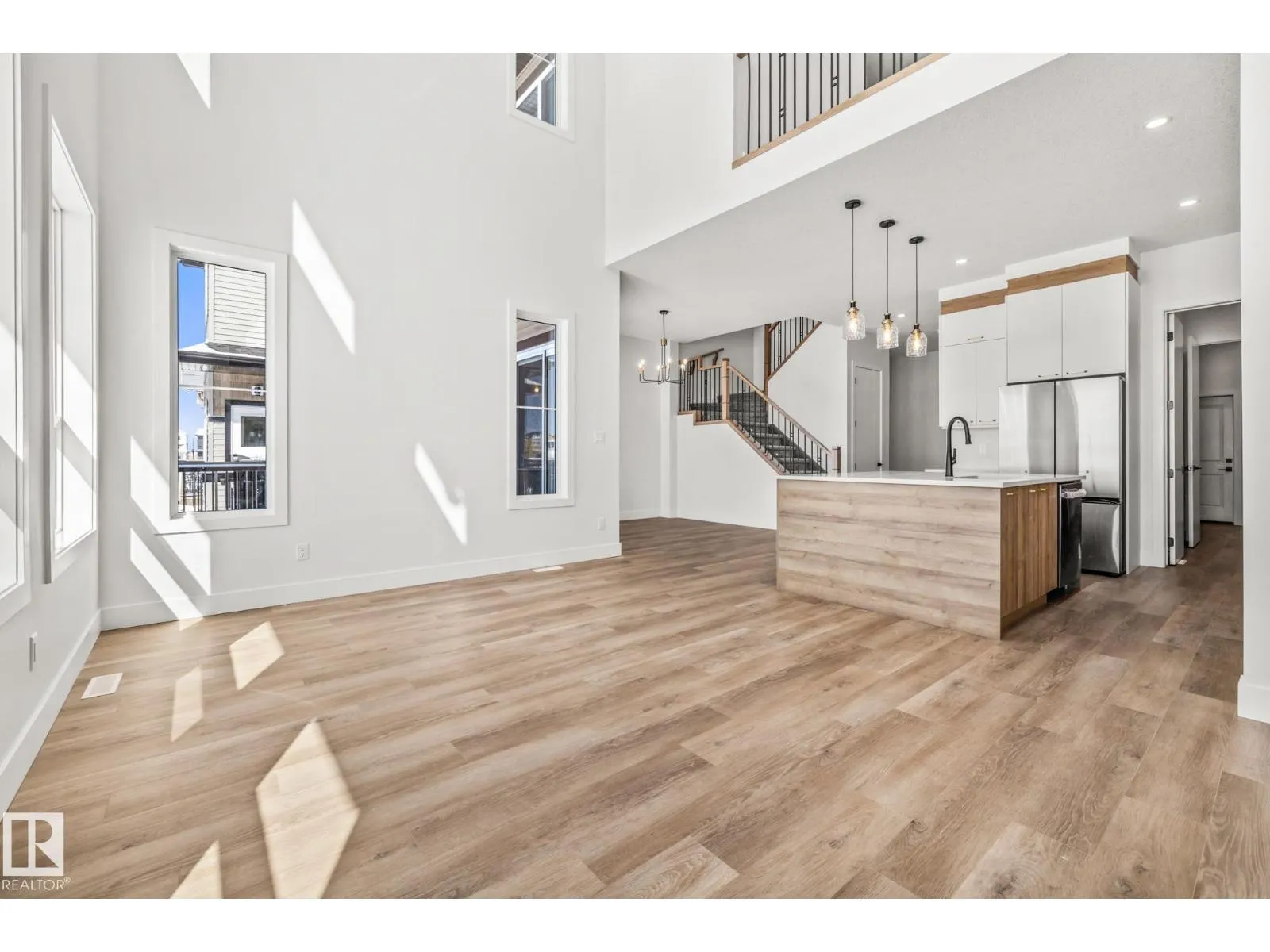 Welcome to this beautifully designed 4 bedroom, 3 bathroom home featuring a walkout basement and a layout that perfectly balances style and functionality. As you step inside, youâre greeted by a spacious front bedroom, ideal for a home office or flex space, alongside a convenient 3-piece bathroom, while the mudroom offers direct access to the double attached garage for added everyday ease. Down the hall, the home opens into the heart of the space: a stunning modern kitchen with sleek finishes that flows seamlessly into the dining and living areas, where soaring ceilings and large windows fill the home with natural light and create an airy, inviting atmosphere. Upstairs, youâll find three generously sized bedrooms, including a beautiful primary retreat with a luxurious 5-piece ensuite, along with a large bonus room perfect for family living, convenient upper-level laundry with a sink, and an additional 4-piece bathroom. Ideally located close to schools, shopping, and everyday amenities! (id:27476)