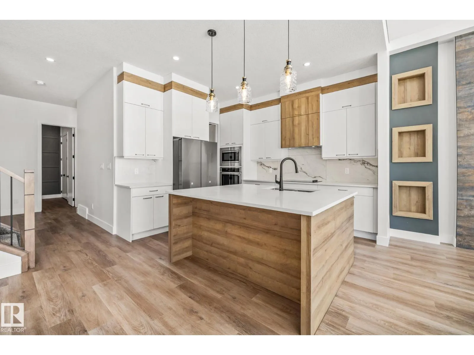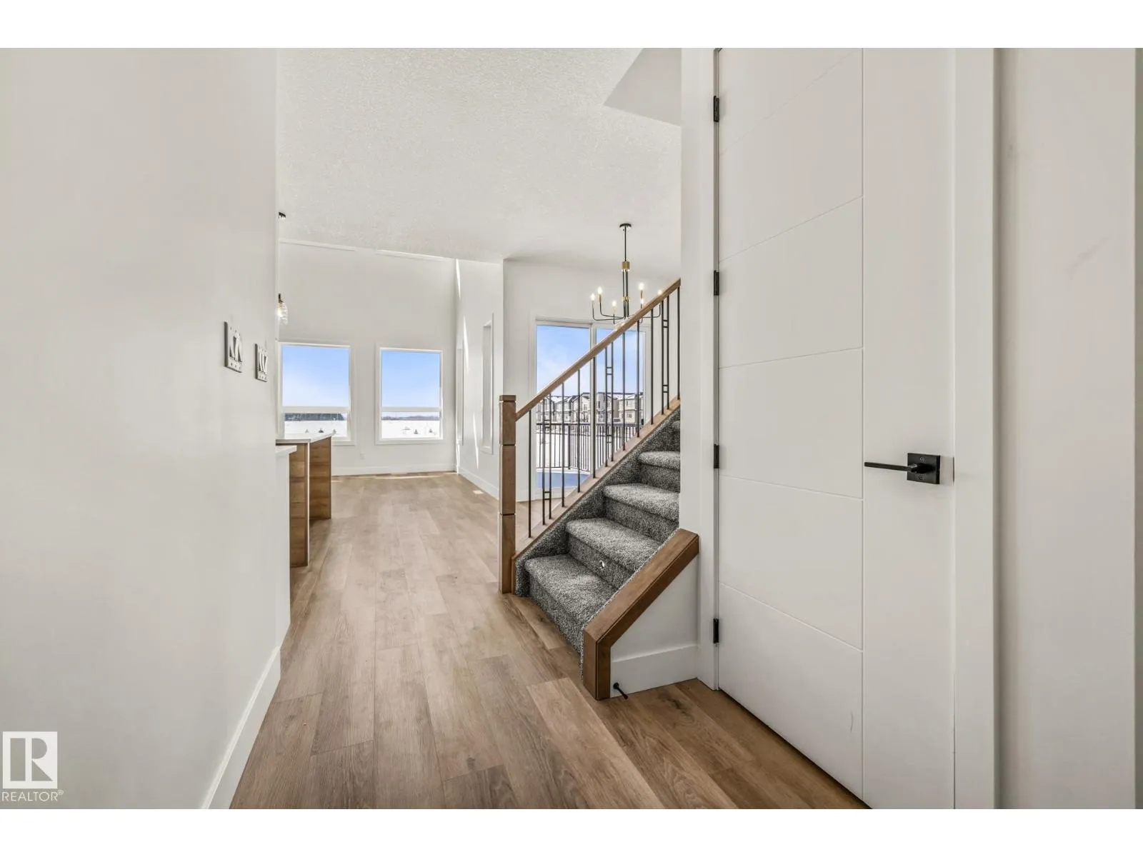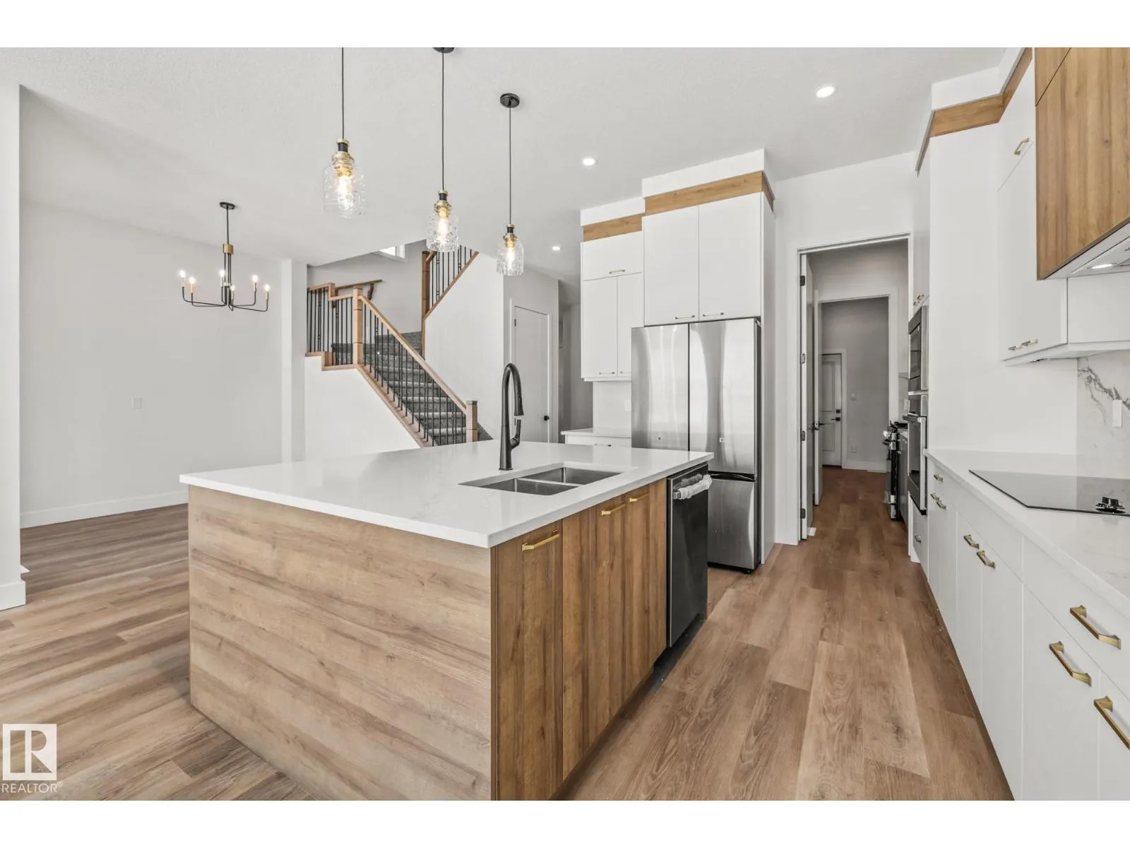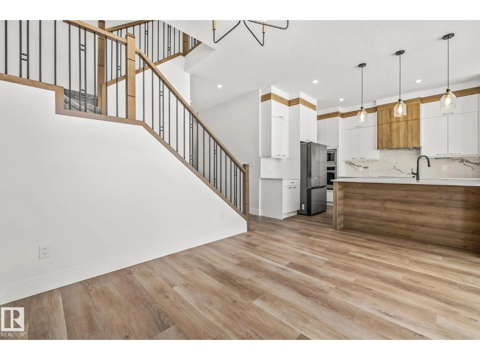 Welcome to this beautifully designed 4 bedroom, 3 bathroom home featuring a walkout basement and a layout that perfectly balances style and functionality. As you step inside, youâre greeted by a spacious front bedroom, ideal for a home office or flex space, alongside a convenient 3-piece bathroom, while the mudroom offers direct access to the double attached garage for added everyday ease. Down the hall, the home opens into the heart of the space: a stunning modern kitchen with sleek finishes that flows seamlessly into the dining and living areas, where soaring ceilings and large windows fill the home with natural light and create an airy, inviting atmosphere. Upstairs, youâll find three generously sized bedrooms, including a beautiful primary retreat with a luxurious 5-piece ensuite, along with a large bonus room perfect for family living, convenient upper-level laundry with a sink, and an additional 4-piece bathroom. Ideally located close to schools, shopping, and everyday amenities! (id:27476)