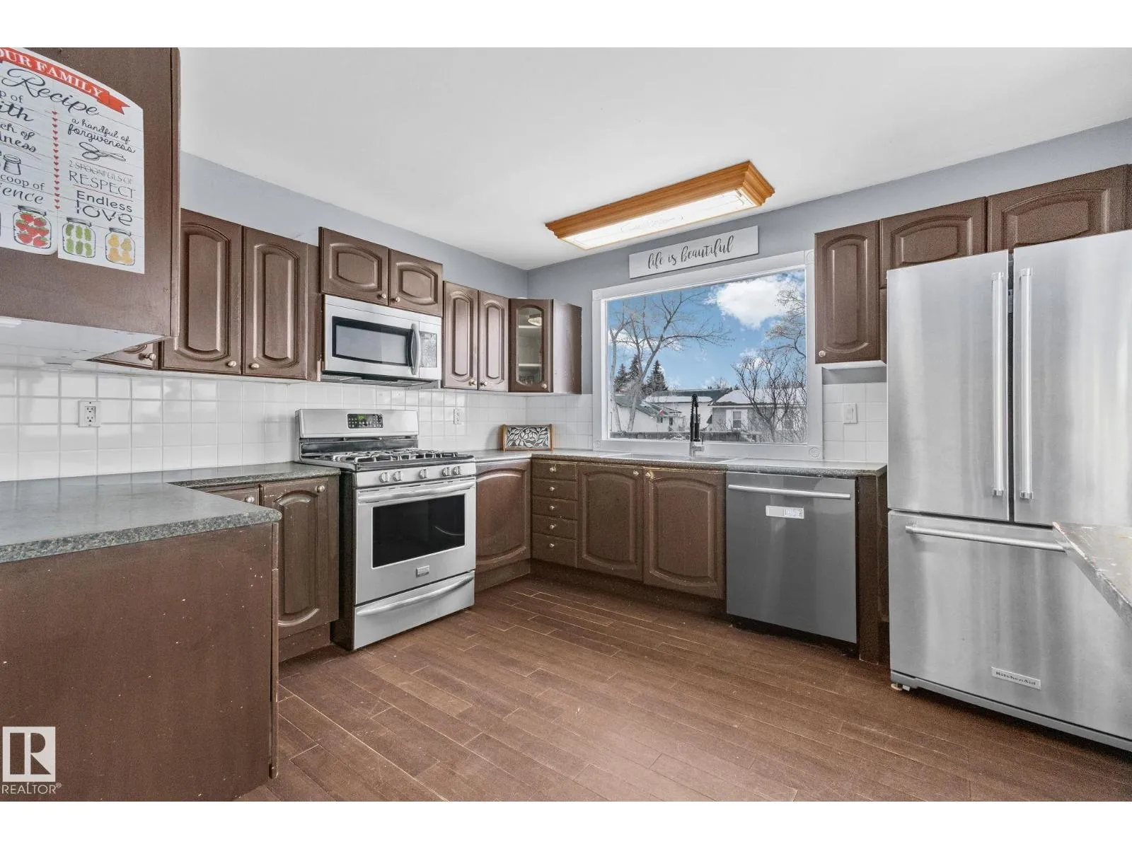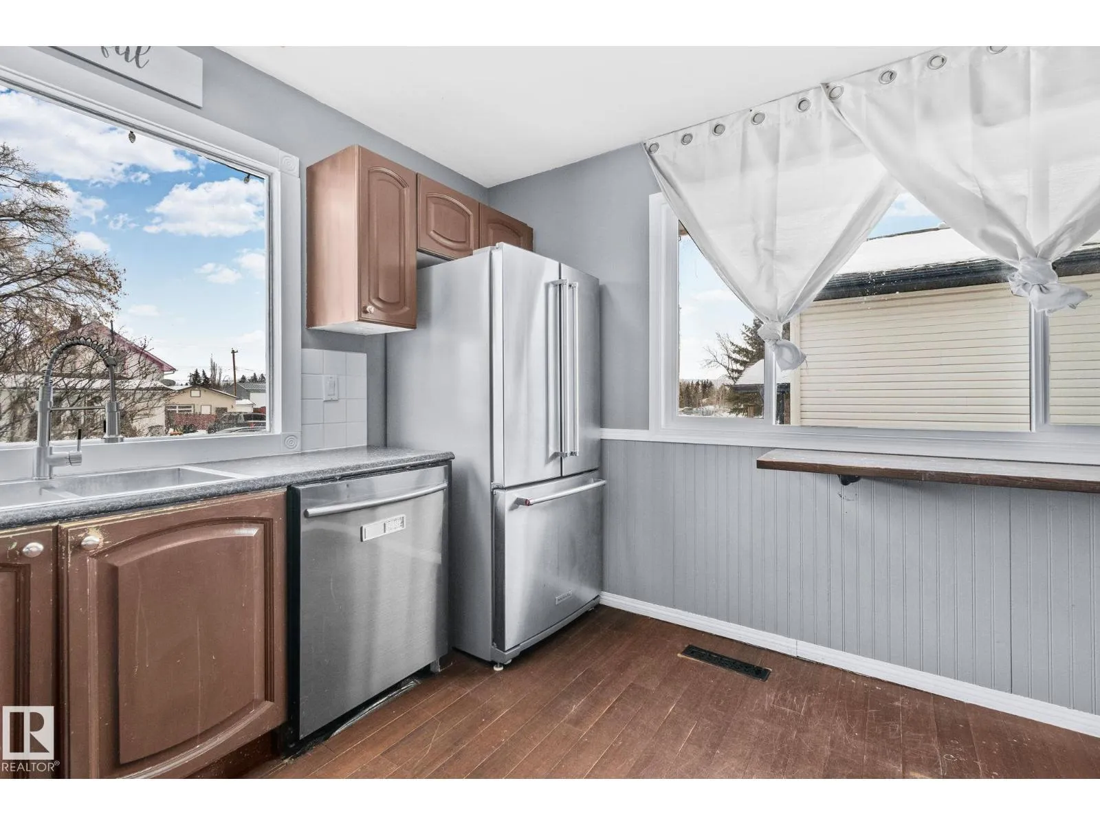This 1,075 sq. ft. bungalow sits on a very large lot in the family-friendly community of Legal. The main floor offers three good sized bedrooms and a full bathroom, the fully developed basement includes a fourth bedroom, second bathroom, and a cozy gas fireplace, providing flexible living space. The property features a double detached garage with both front-drive as well as rear alley access, offering excellent convenience and investment appeal. With room for kids to play, future development, or added value, the oversized lot is a standout feature. While the home does require some updating, it presents a great opportunity for families looking to customize their space or investors seeking strong potential in a quiet, welcoming town close to schools and amenities. (id:27476)