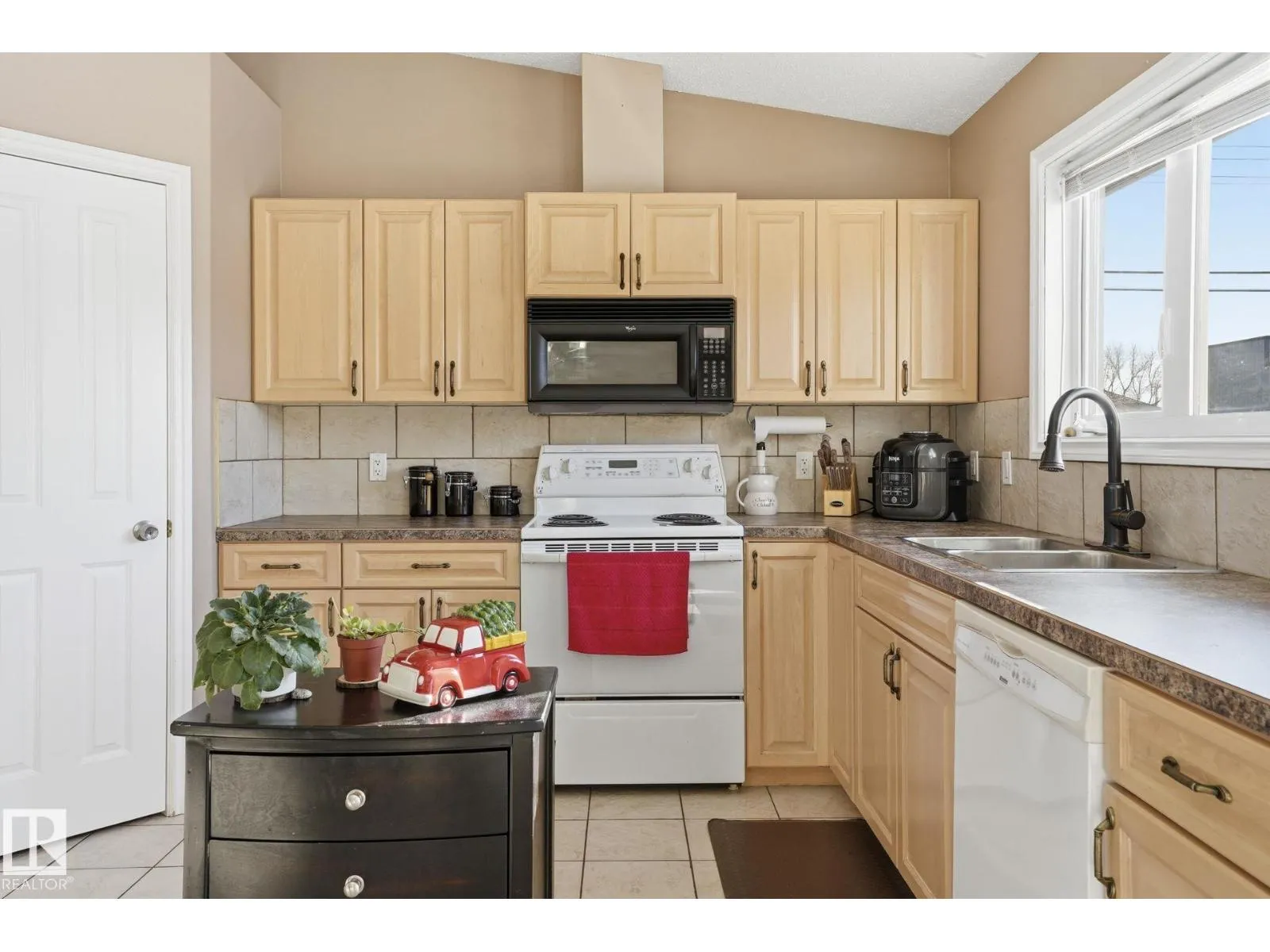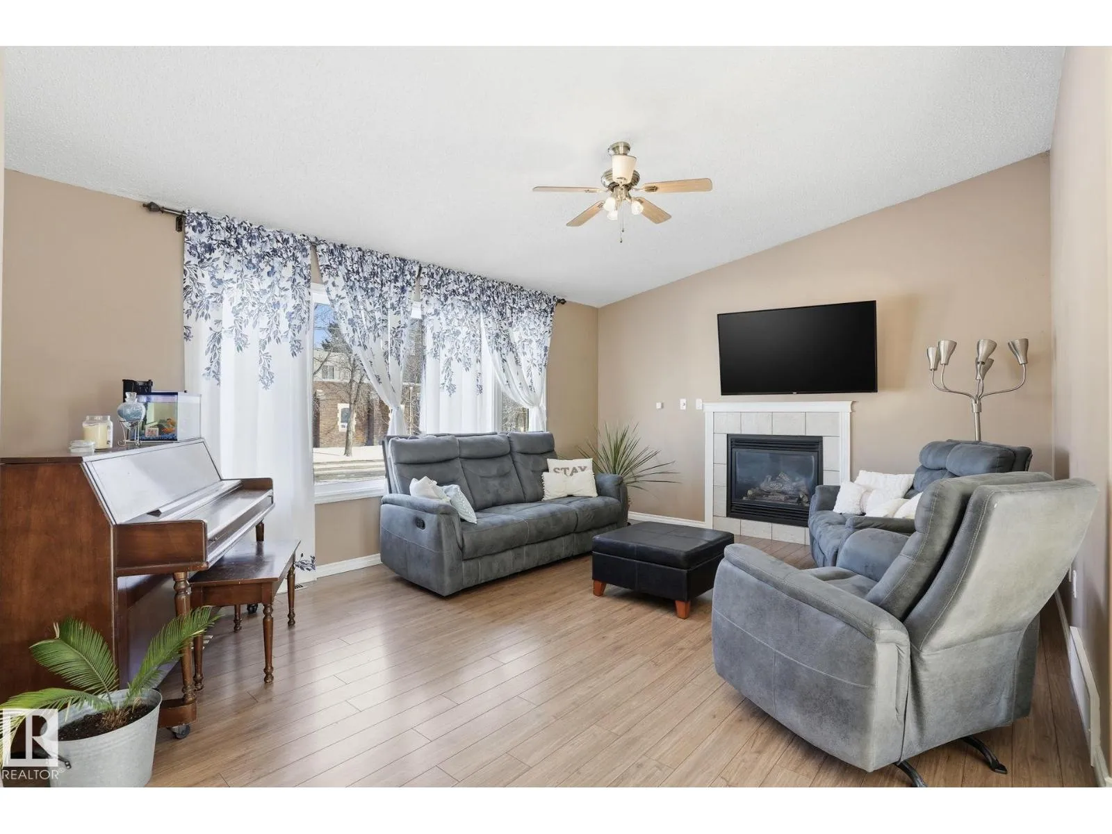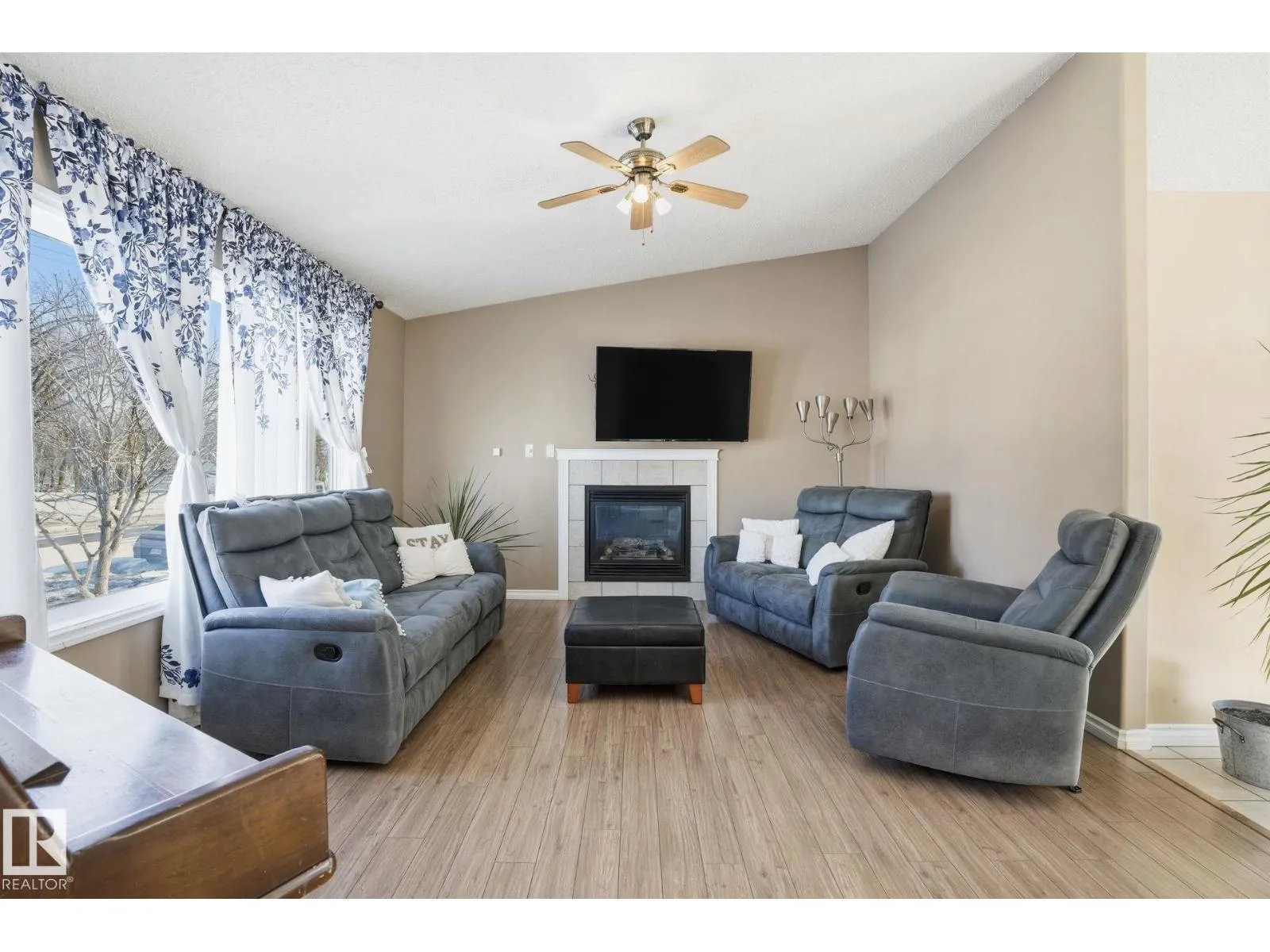 GREAT LOCATION, CURB APPEAL & VALUE! Welcome to this attractive raised bungalow on a massive corner lot! This home features 3 bedrooms and 2 bathrooms on the main level, plus 2 bedrooms and 1 bathroom below grade. The primary bedroom includes a private ensuite. Enjoy a bright, open feel with vaulted ceilings in the kitchen, living, and dining areas, plus durable tile and laminate throughout. The living room features a cozy fireplace with tile surround. The kitchen includes an upgraded stainless-steel fridge, tile backsplash, ample counters, abundant cabinetry, and a corner pantry. Step outside to a spacious two-tiered deck overlooking the expansive yard and oversized double garage. The garage offers a shop-like feel, complete with a rough-in for heater, upgraded electrical panel, extensive storage shelving, and an extra-high door. Located just steps from Legal School and close to all essential amenities, this home combines convenience with a quiet, peaceful lifestyle in a welcoming, friendly community. (id:27476)