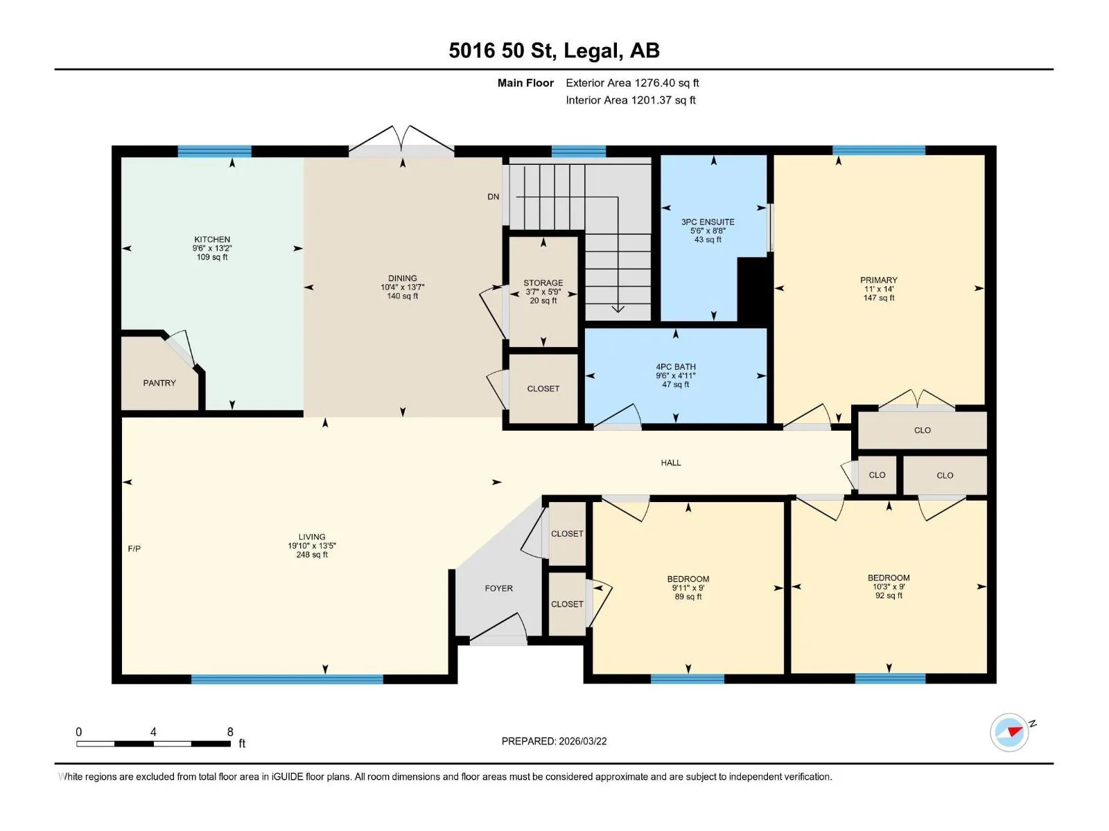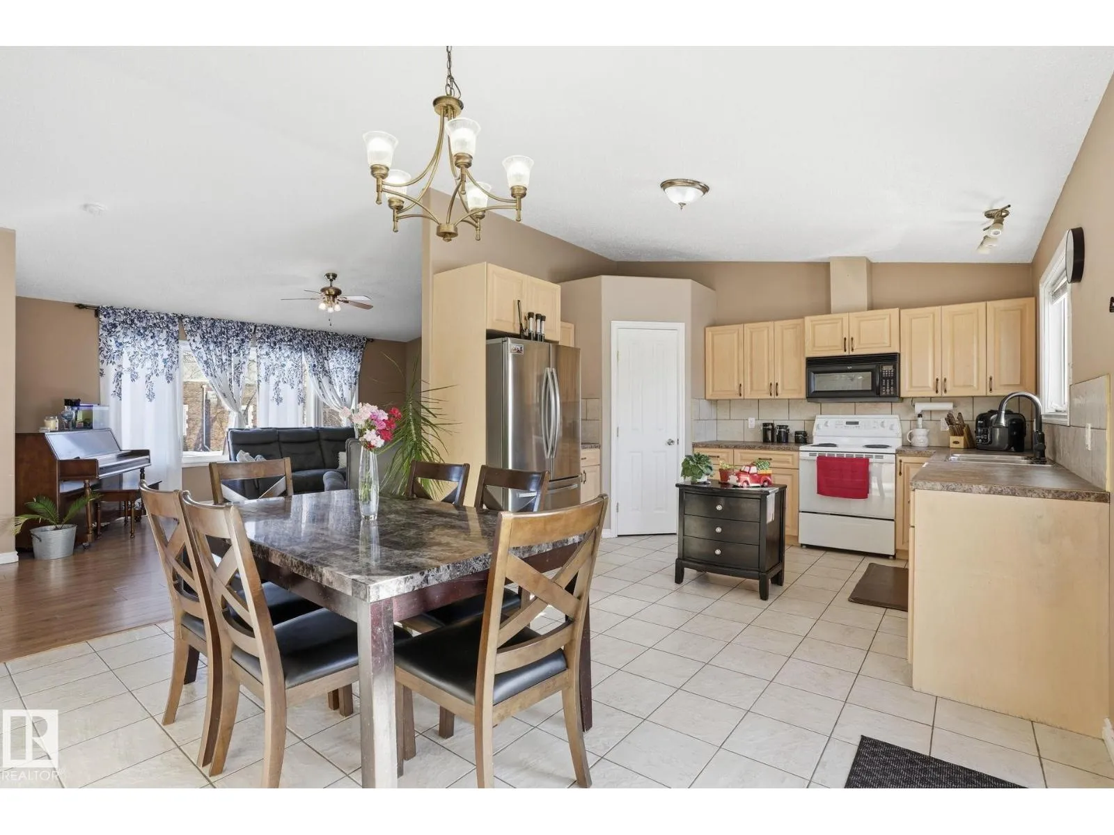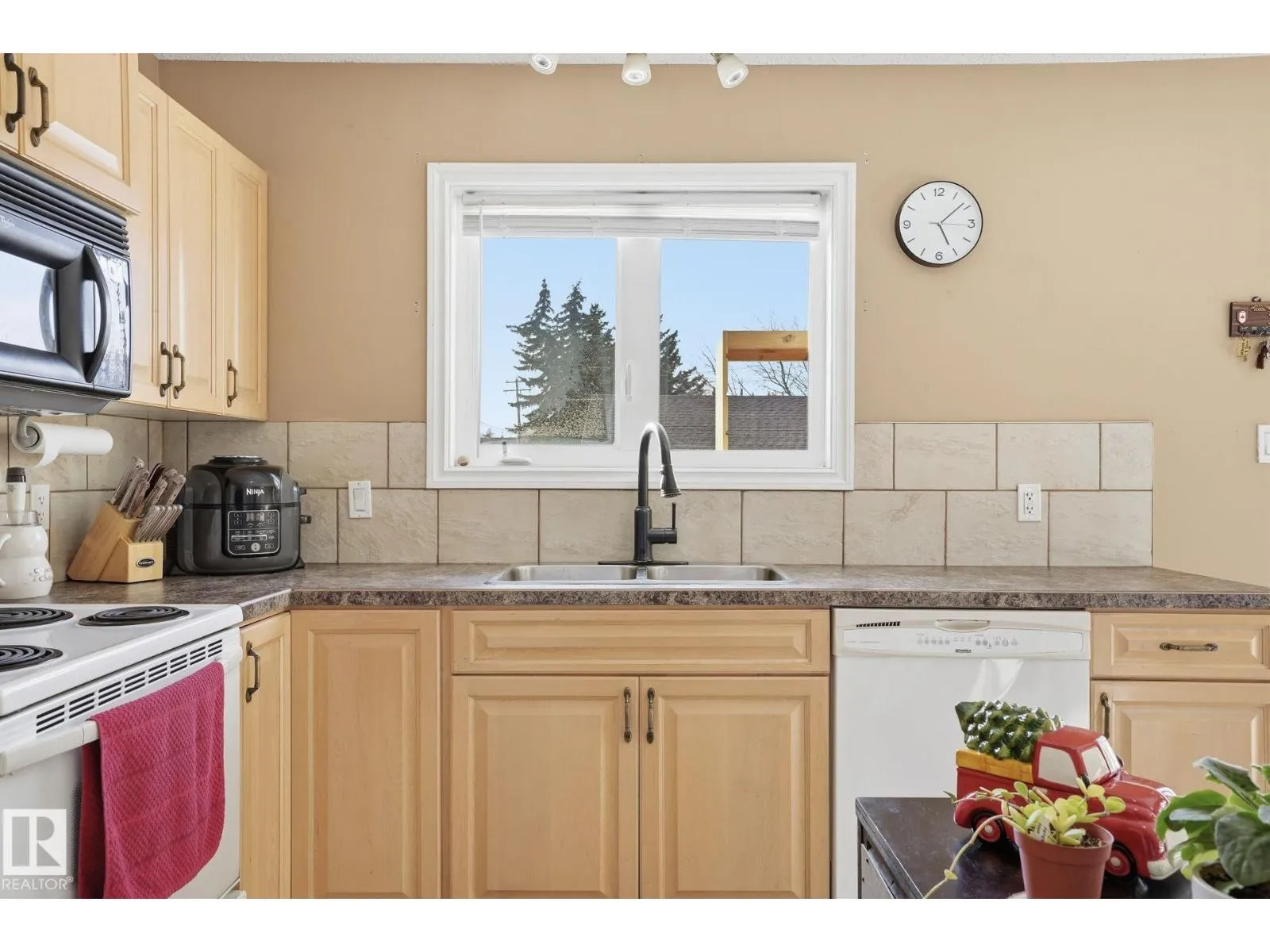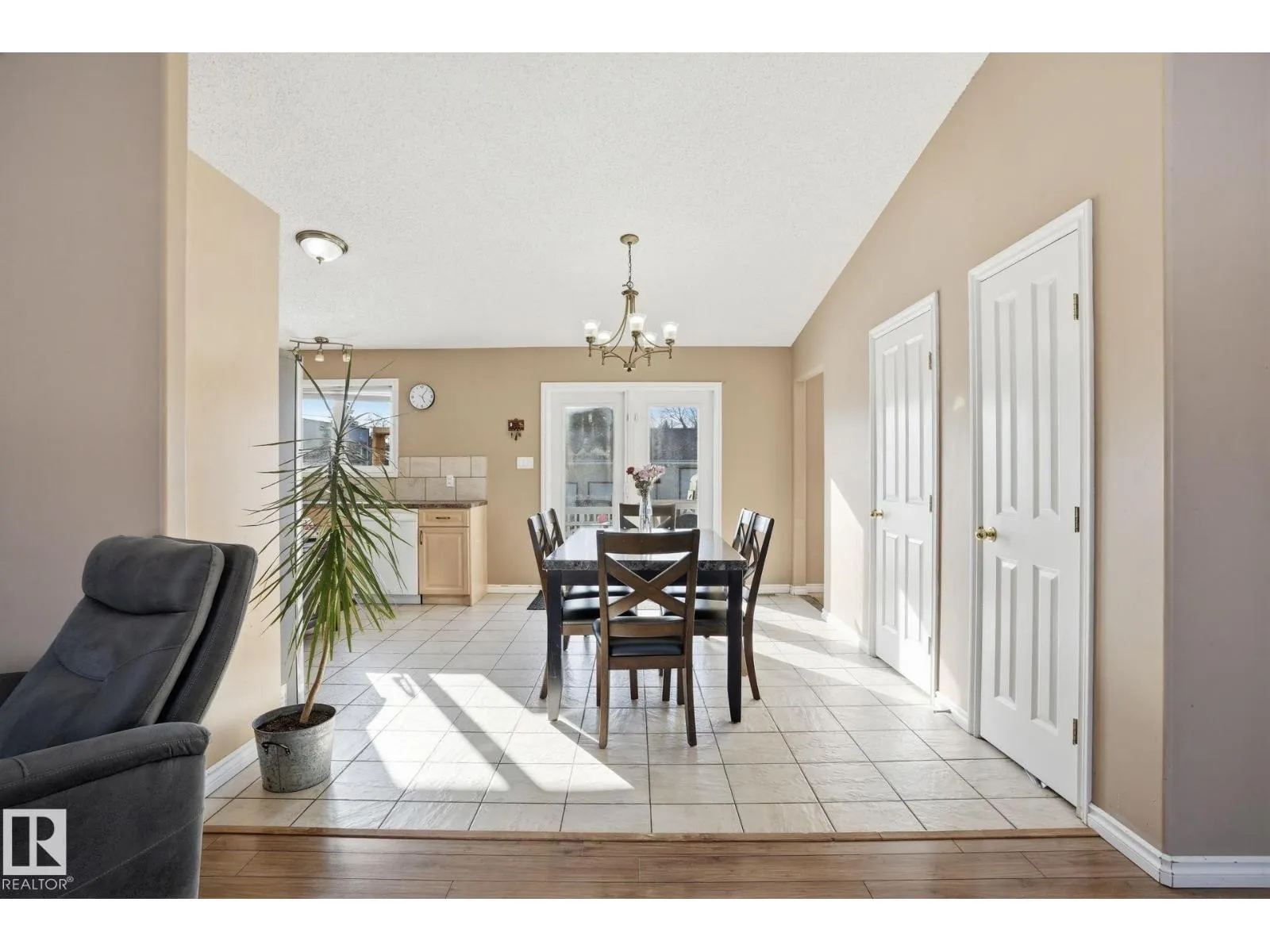 GREAT LOCATION, CURB APPEAL & VALUE! Welcome to this attractive raised bungalow on a massive corner lot! This home features 3 bedrooms and 2 bathrooms on the main level, plus 2 bedrooms and 1 bathroom below grade. The primary bedroom includes a private ensuite. Enjoy a bright, open feel with vaulted ceilings in the kitchen, living, and dining areas, plus durable tile and laminate throughout. The living room features a cozy fireplace with tile surround. The kitchen includes an upgraded stainless-steel fridge, tile backsplash, ample counters, abundant cabinetry, and a corner pantry. Step outside to a spacious two-tiered deck overlooking the expansive yard and oversized double garage. The garage offers a shop-like feel, complete with a rough-in for heater, upgraded electrical panel, extensive storage shelving, and an extra-high door. Located just steps from Legal School and close to all essential amenities, this home combines convenience with a quiet, peaceful lifestyle in a welcoming, friendly community. (id:27476)