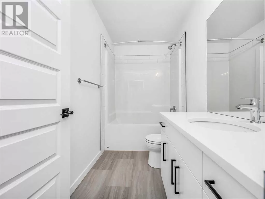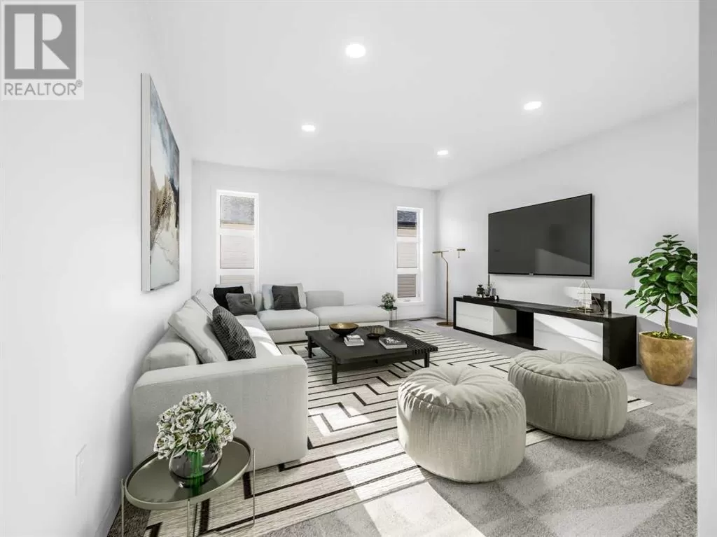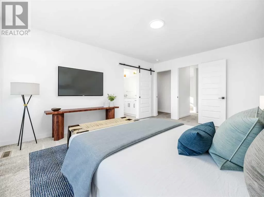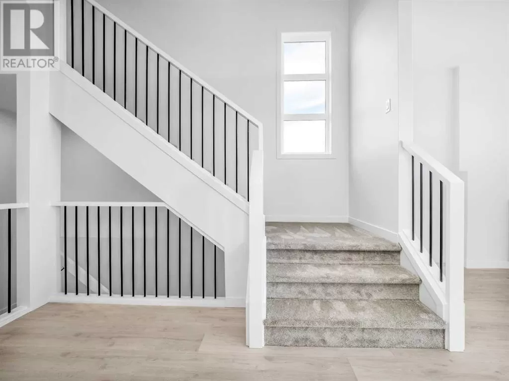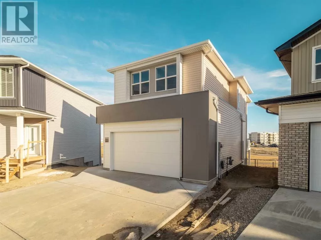 The "Rowan", functional floor plan with large mudroom and walk through pantry off the over-sized garage. Cul de sac location for this large pie-shaped Lot. Tall ceilings and lots of glass throughout the main floor for that extra natural light. Modern light fixtures, kohler plumbing fixtures, quartz counter tops. Open staircase leads you to a large primary bedroom . You will enjoy the 5 piece ensuite with dual sinks, and separate tub and shower. Lots of room for those clothes in the walk in closet as well. The bonus room separates the primary bedroom from the 2 kids bedrooms, great for privacy. There is also the convenience of an actual Laundry room upstairs as well. Basement is undeveloped but set up for family room, bedroom and another full Bathroom. Country Meadows is a smaller community with easy access to down town core, close to twin rinks and pool, schools and shopping. Play ground only a short walk away. New home warranty. Home is virtually staged. (id:27476)