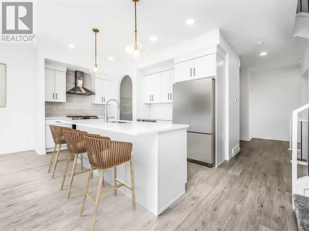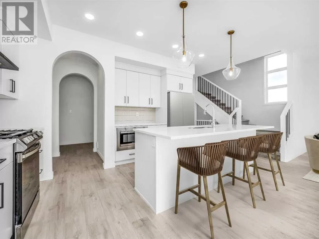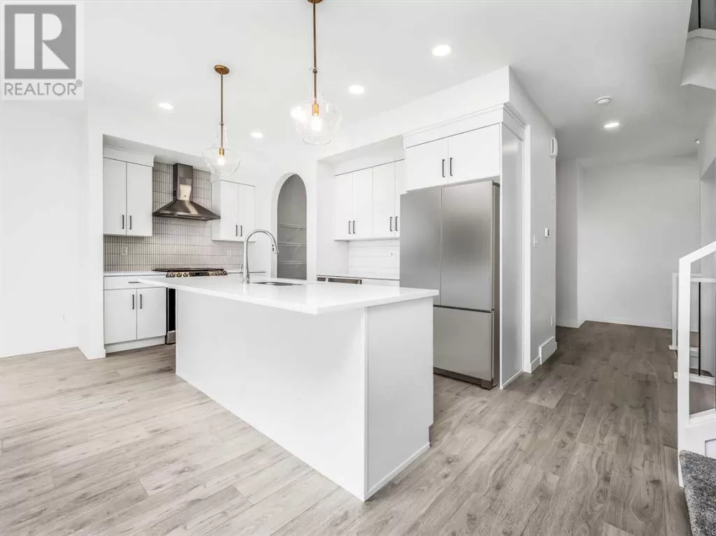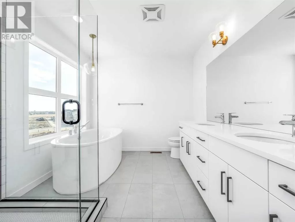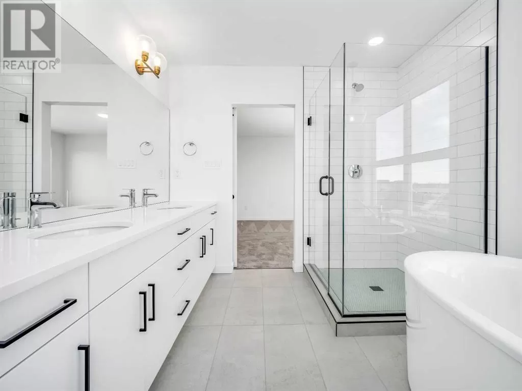 The "Rowan", functional floor plan with large mudroom and walk through pantry off the over-sized garage. Cul de sac location for this large pie-shaped Lot. Tall ceilings and lots of glass throughout the main floor for that extra natural light. Modern light fixtures, kohler plumbing fixtures, quartz counter tops. Open staircase leads you to a large primary bedroom . You will enjoy the 5 piece ensuite with dual sinks, and separate tub and shower. Lots of room for those clothes in the walk in closet as well. The bonus room separates the primary bedroom from the 2 kids bedrooms, great for privacy. There is also the convenience of an actual Laundry room upstairs as well. Basement is undeveloped but set up for family room, bedroom and another full Bathroom. Country Meadows is a smaller community with easy access to down town core, close to twin rinks and pool, schools and shopping. Play ground only a short walk away. New home warranty. Home is virtually staged. (id:27476)