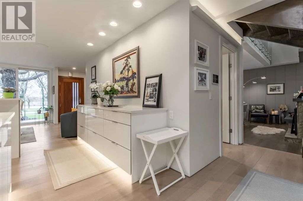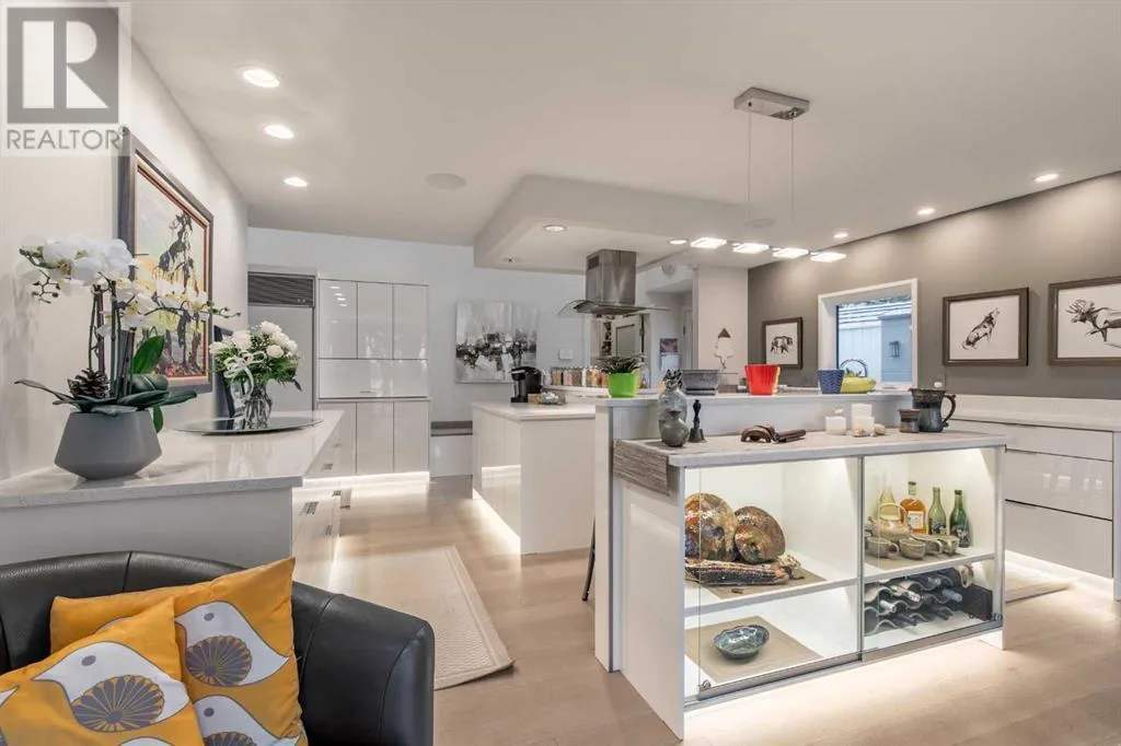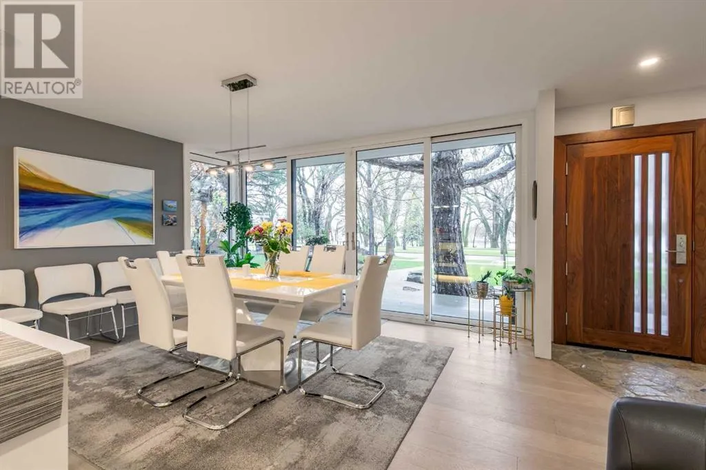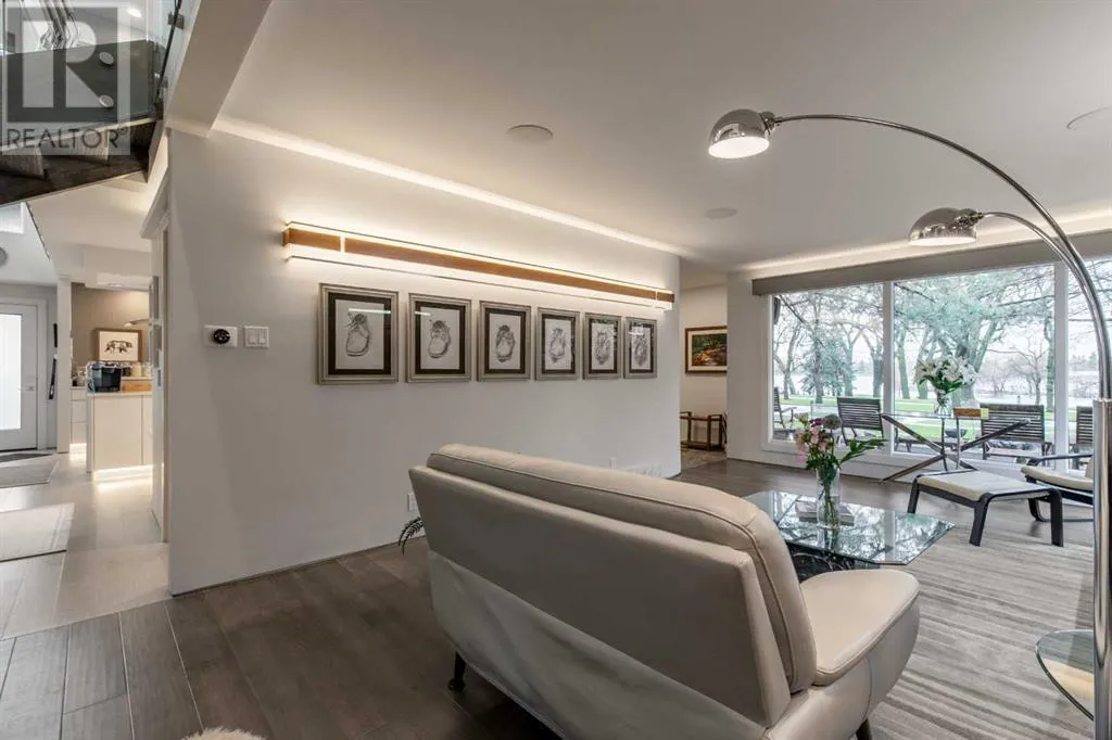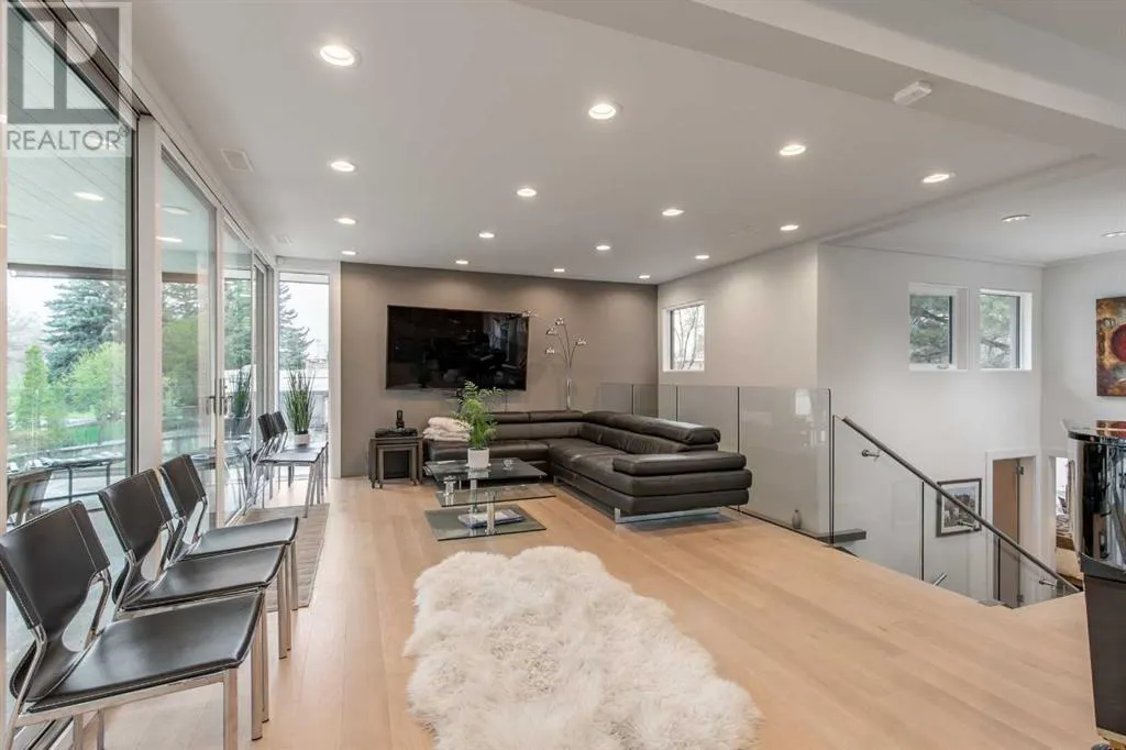 This stunning 4-level split home boasts a modern design with sliding doors opening the dining area to the outdoors. Enjoy a kitchen with a minimal, modular, straight-lined work area emphasizing efficiency and cleanliness. Large south-facing windows provide natural light and gorgeous views overlooking Henderson Lake. The double garage features an EV charger and a heated driveway. Upstairs, you'll find an office set up or hosting area, while a large patio awaits for city festivities by the lake. Please contact your REALTOR® to book a showing on this luxurious and functional home. (id:27476)