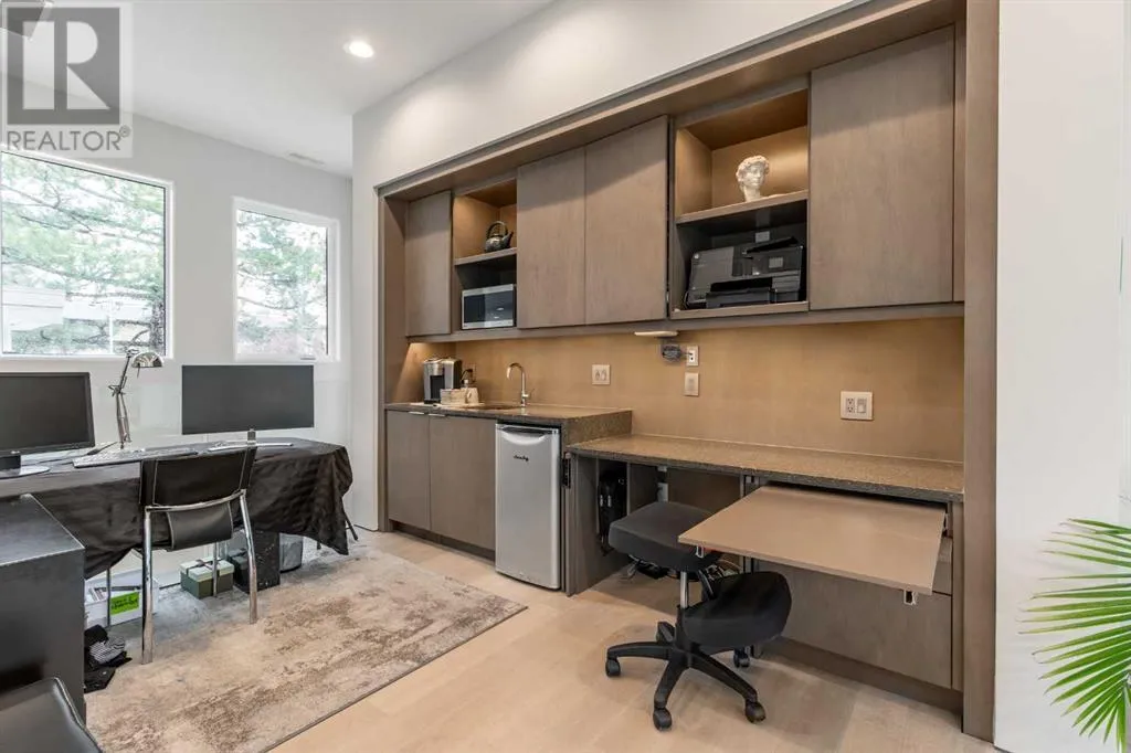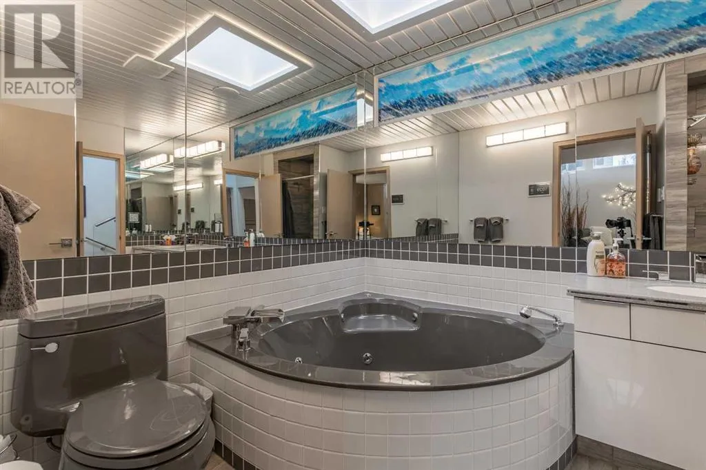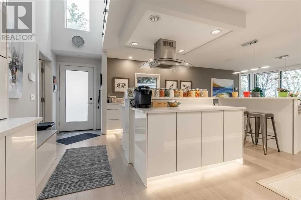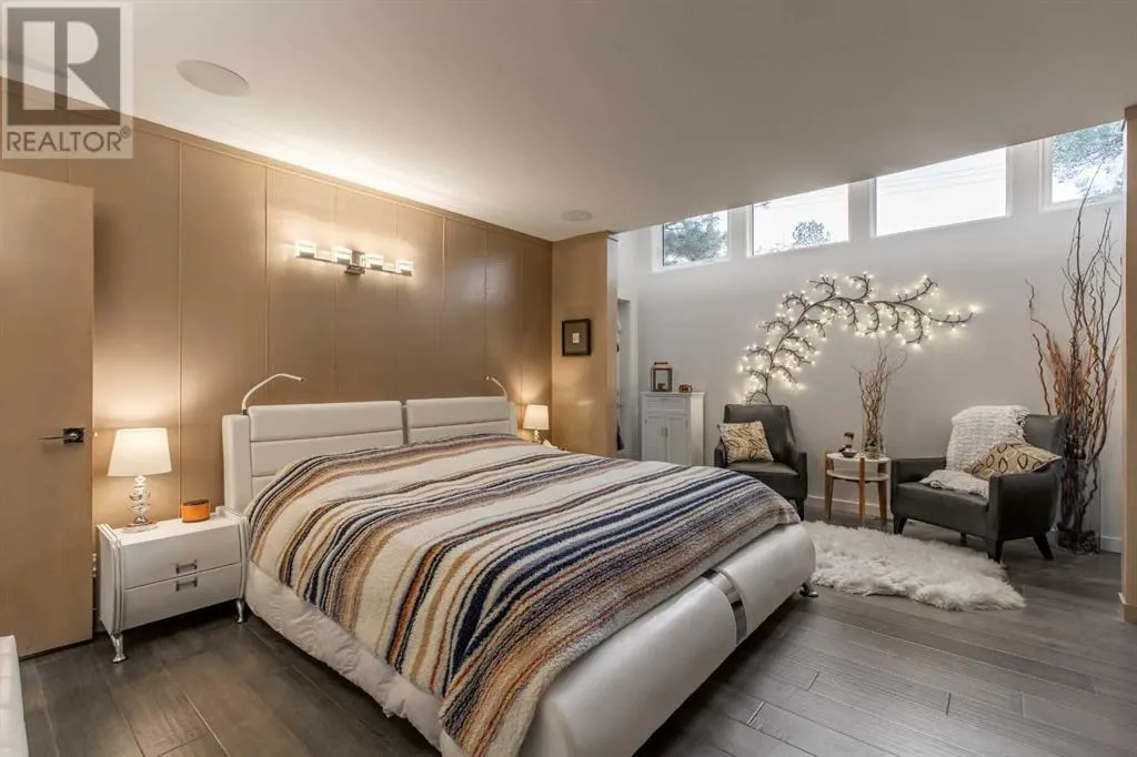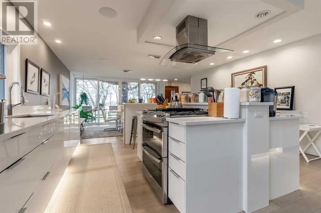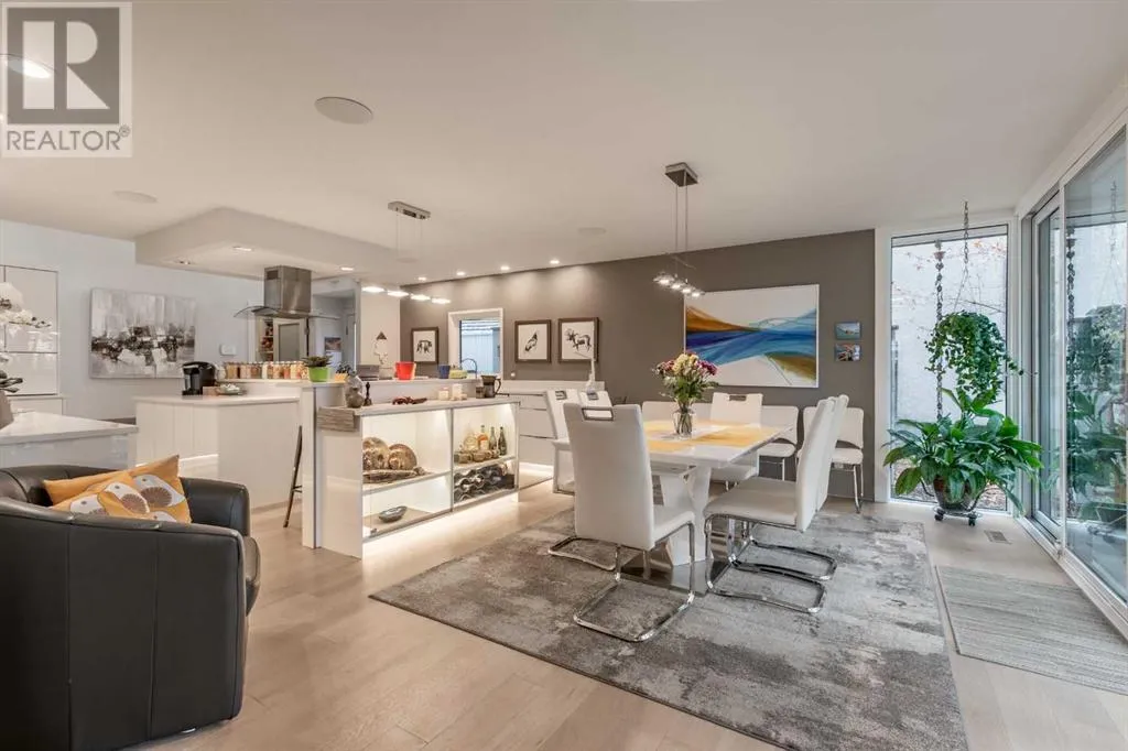 This stunning 4-level split home boasts a modern design with sliding doors opening the dining area to the outdoors. Enjoy a kitchen with a minimal, modular, straight-lined work area emphasizing efficiency and cleanliness. Large south-facing windows provide natural light and gorgeous views overlooking Henderson Lake. The double garage features an EV charger and a heated driveway. Upstairs, you'll find an office set up or hosting area, while a large patio awaits for city festivities by the lake. Please contact your REALTOR® to book a showing on this luxurious and functional home. (id:27476)