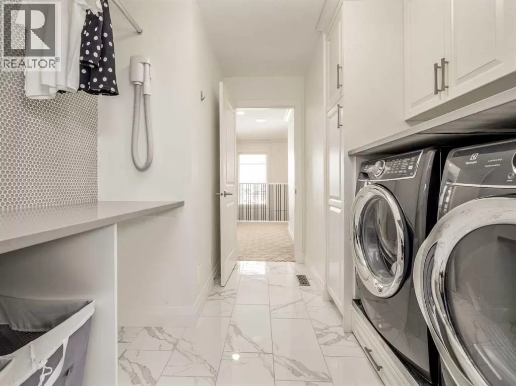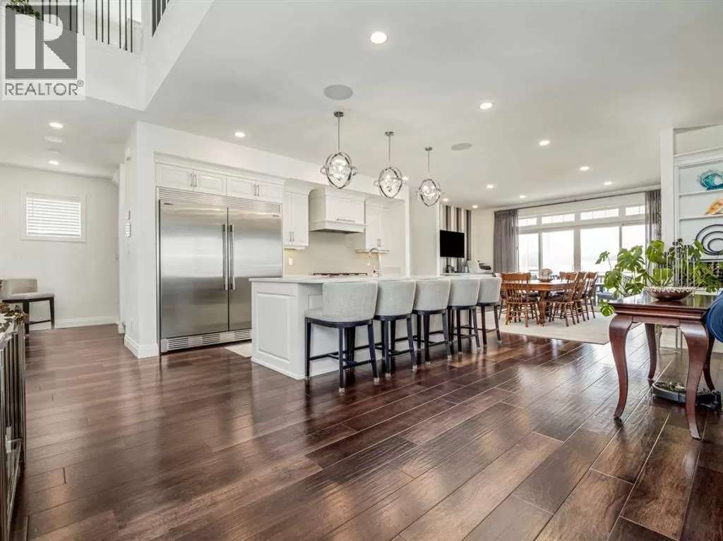 Come and discover a truly one of a kind luxury home in the beautiful neighborhood of Prairie Arbor. This uniquely stunning residence boasts an open concept main floor designed to entertain. The gourmet kitchen amazes with quartz countertops, 6 burner gas stove, under counter lighting, garburator, counter depth fridge and freezer, and an oversized island for meal prep and casual dining. The enormous butler's kitchen/pantry is one that any chef would envy. The main floor has a large kitchen seating area as well as a traditional formal dining room and a truly beautiful living room. A large, partially covered deck adds extra space and a bright airy feel to the main floor. An elegant powder room on the main floor, allows entertaining to take place all on the main level. Continuing the grand design to the 2nd floor you will find an interior balcony overlooking the main floor foyer, highlighted by a modern chandelier. This floor has 3 of the four spacious bedrooms. The main bedroom is a truly amazing personal space with a 4 pce ensuite with vanity area, a massive double shower with bench and a room sized walk in closet complete with 2 sets of built in drawers, an entire wall of shelving for shoes, a full length mirror and island with custom made jewelry drawers. The main laundry is on the second floor, as well as another elegant 4 pce bathroom and 2 more large bedrooms. The bonus room upstairs is the perfect size for some family downtime before you turn in. The walkout basement is equally impressive both in luxury and functionality, boasting a huge theater room, an office, a second laundry with stackable washer and dryer, a dry storage room, cold storage and outdoor storage with Peka rollshutter closure. The oversized bedroom has 2 large closets and large windows for a main floor feel, with in floor heat throughout. The location of the 3 pce bathroom for this floor gives an ensuite feel while serving as the main bathroom for this floor.Another kitchen allows for food serv ice in the games/family room and sliding doors open onto a large covered patio for more indoor outdoor living space. There is a large, well windowed mudroom with built in bench and storage cubbies, that leads to a massive 3 car garage. The garage is every guy's dream with a 12 ft ceiling and Platinum garage floor treatment, in floor heating and wiring for an EV. The 3rd garage door has a pull-through door to a concrete pad in back. For additional storage, there is a newly built house-matching shed in back for extra storage items so your garage can be dedicated to parking vehicles. With the front and side yard fully landscaped with an underground sprinkler system, this lot still has space enough to add any other luxuries you can dream up. From Home One outdoor lighting to Control 4 smart home systems, this home has it all; great location, luxury features, grand design with all the extras. It truly is a dream home. (id:27476)