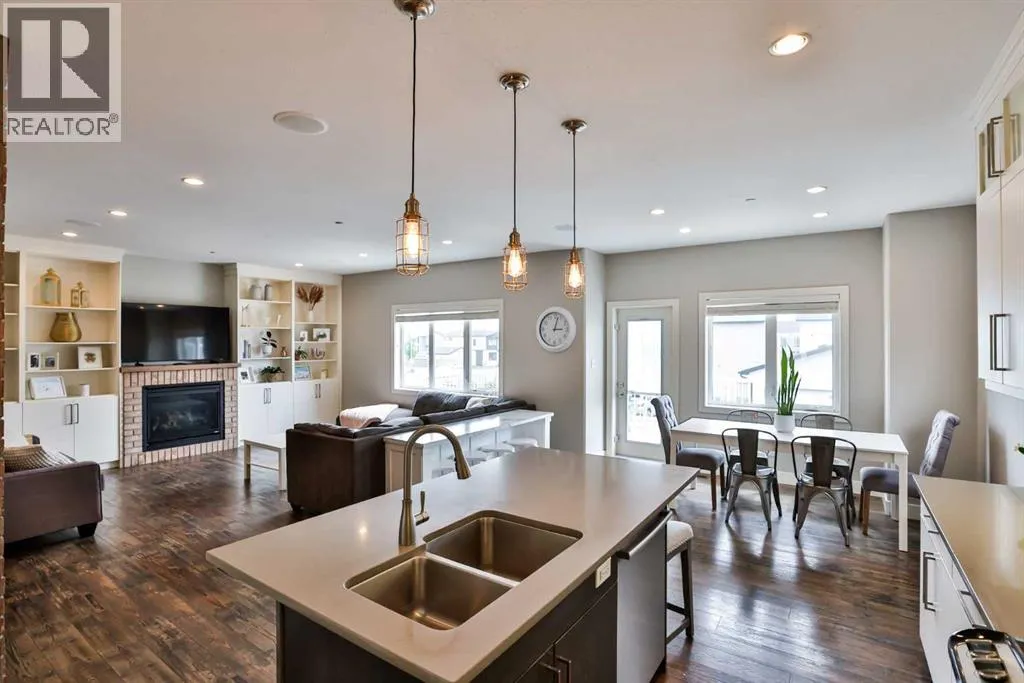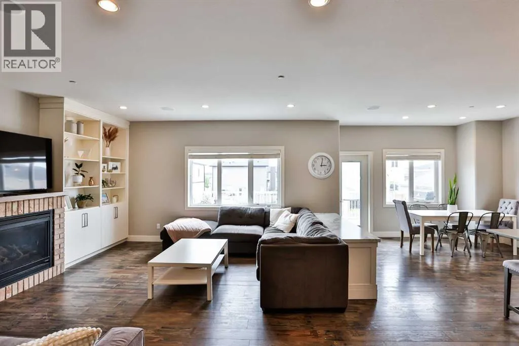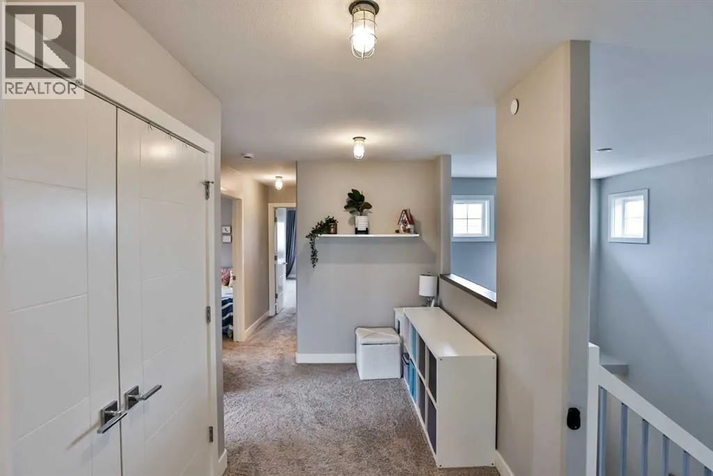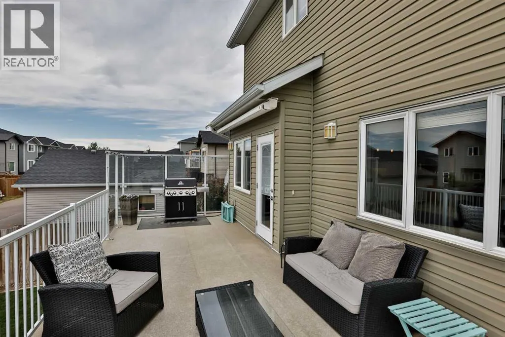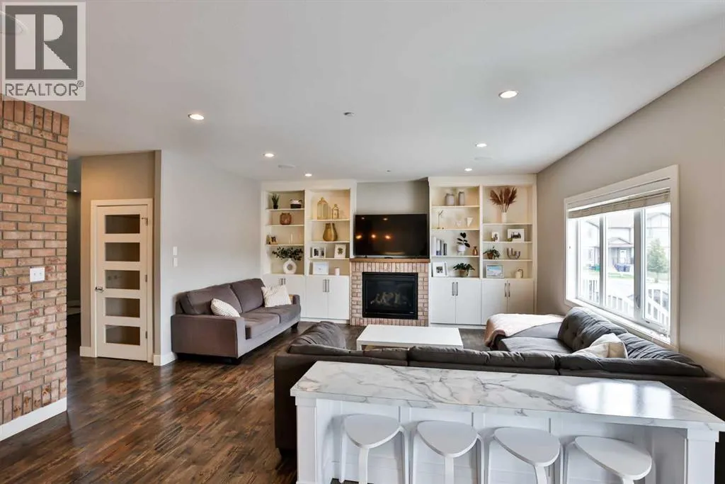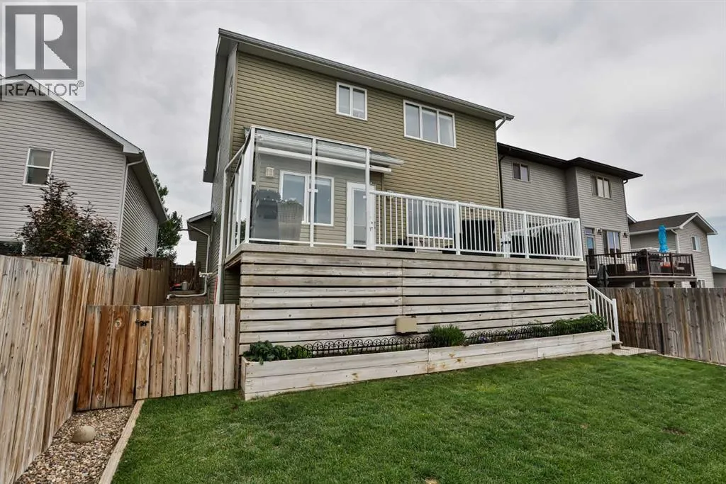 You will love how spacious this two-story family home is, coming in at just under 2,500 square feet. This custom-built home is located in Country Meadows. The floor plan is fantastic, featuring an office right off the front door, perfect for a home business, and it even has a rough-in for water to accommodate a salon!Laminate floors flow throughout the main floor. The main living room is huge and can fit a massive sectional; it is finished off with a gas fireplace and built-ins on either side. The kitchen boasts extra-tall cabinets that reached the ceiling, quartz countertops, a gas range, and stainless steel appliances. Off the kitchen is a walk-through pantry and mudroom for additional storage.The back deck stretches across the entire width of the home and features a tall glass railing for extra protection, vinyl decking for ease of maintenance, and stairs leading to the grade with ample storage below.As you head to the second floor, you will appreciate the spindle railing and the lights illuminating the staircase. At the top of the stairs, there is a landing, perfect for a desk or play area, as well as a double linen closet. The primary bedroom, located at the back of the home, is enormous! It features a tray ceiling with wood timber detail. The en suite has a custom glass and tile shower, double sinks, a water closet, and a perfect space for a makeup table. A large walk-in closet adjoins the en suite.There are three additional bedrooms upstairs, and the room at the front of the home could easily be converted into a bonus space with extra storage. The main bathroom on the second floor also has double sinks, eliminating any fighting over who gets to brush their teeth first!The basement was finished four years ago, and you will love how plush the carpet feels downstairs. There is a rough-in for a future bar area, a full four-piece bathroom, a large living room, and two barn doors that lead into a spacious basement bedroom.The garage is fully drywalled a nd insulated, with plenty of storage and a gas heater.This layout is fantastic for a large family, with all the bedrooms conveniently located together. Give your favorite REALTOR® a call; they would love to show you this beautiful home! (id:27476)