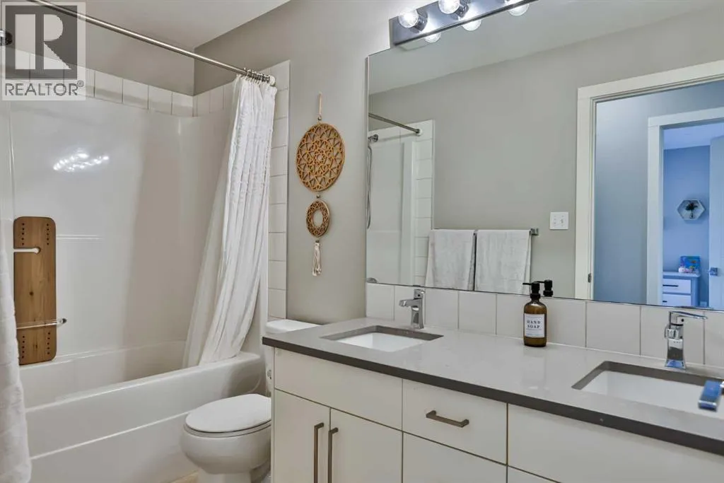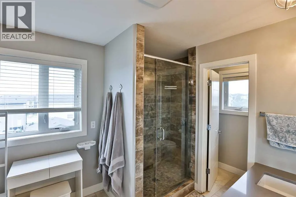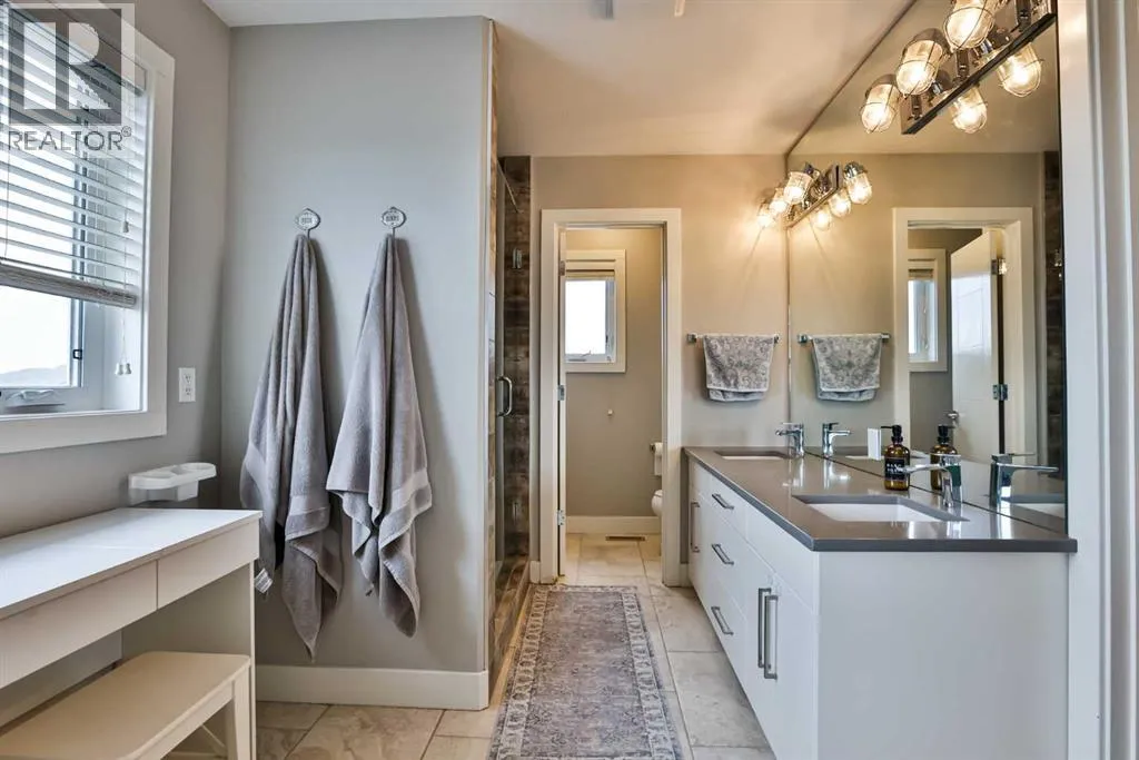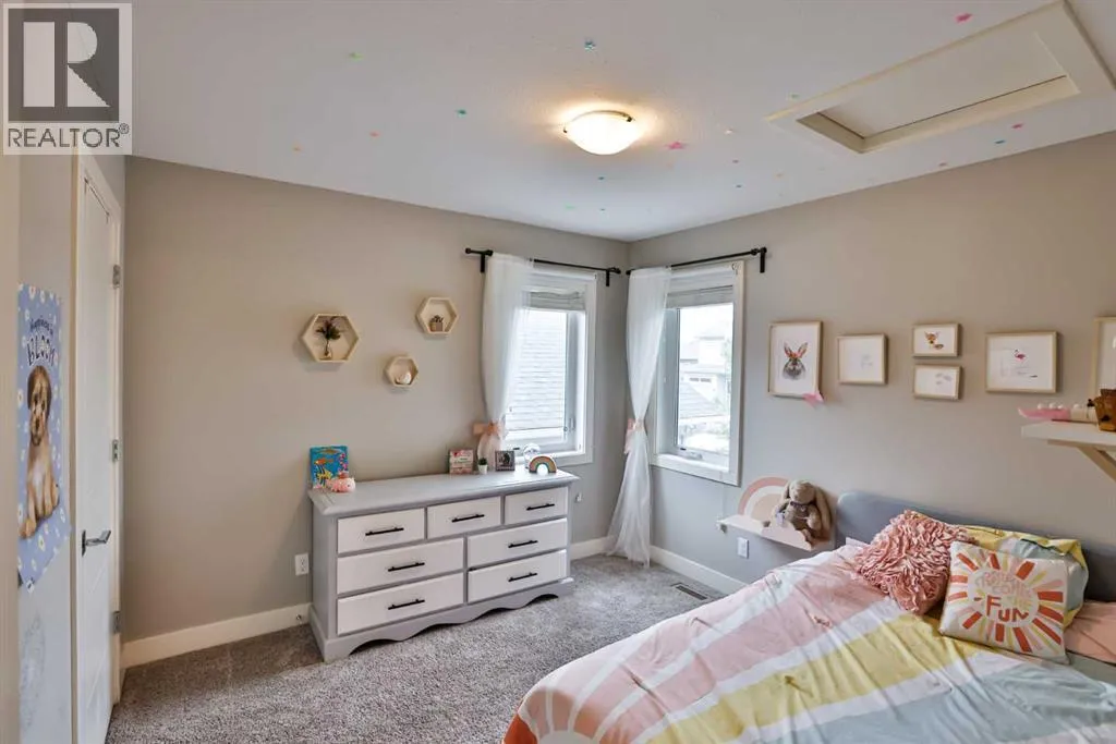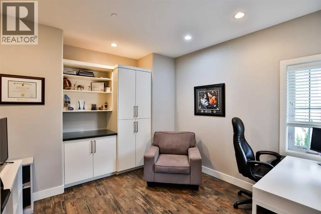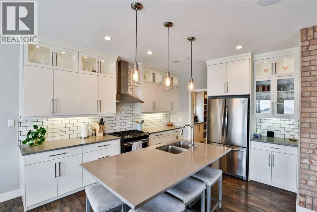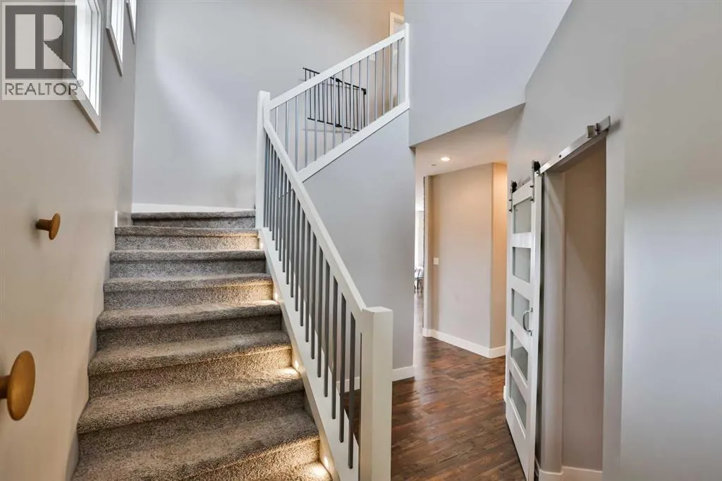 You will love how spacious this two-story family home is, coming in at just under 2,500 square feet. This custom-built home is located in Country Meadows. The floor plan is fantastic, featuring an office right off the front door, perfect for a home business, and it even has a rough-in for water to accommodate a salon!Laminate floors flow throughout the main floor. The main living room is huge and can fit a massive sectional; it is finished off with a gas fireplace and built-ins on either side. The kitchen boasts extra-tall cabinets that reached the ceiling, quartz countertops, a gas range, and stainless steel appliances. Off the kitchen is a walk-through pantry and mudroom for additional storage.The back deck stretches across the entire width of the home and features a tall glass railing for extra protection, vinyl decking for ease of maintenance, and stairs leading to the grade with ample storage below.As you head to the second floor, you will appreciate the spindle railing and the lights illuminating the staircase. At the top of the stairs, there is a landing, perfect for a desk or play area, as well as a double linen closet. The primary bedroom, located at the back of the home, is enormous! It features a tray ceiling with wood timber detail. The en suite has a custom glass and tile shower, double sinks, a water closet, and a perfect space for a makeup table. A large walk-in closet adjoins the en suite.There are three additional bedrooms upstairs, and the room at the front of the home could easily be converted into a bonus space with extra storage. The main bathroom on the second floor also has double sinks, eliminating any fighting over who gets to brush their teeth first!The basement was finished four years ago, and you will love how plush the carpet feels downstairs. There is a rough-in for a future bar area, a full four-piece bathroom, a large living room, and two barn doors that lead into a spacious basement bedroom.The garage is fully drywalled a nd insulated, with plenty of storage and a gas heater.This layout is fantastic for a large family, with all the bedrooms conveniently located together. Give your favorite REALTOR® a call; they would love to show you this beautiful home! (id:27476)