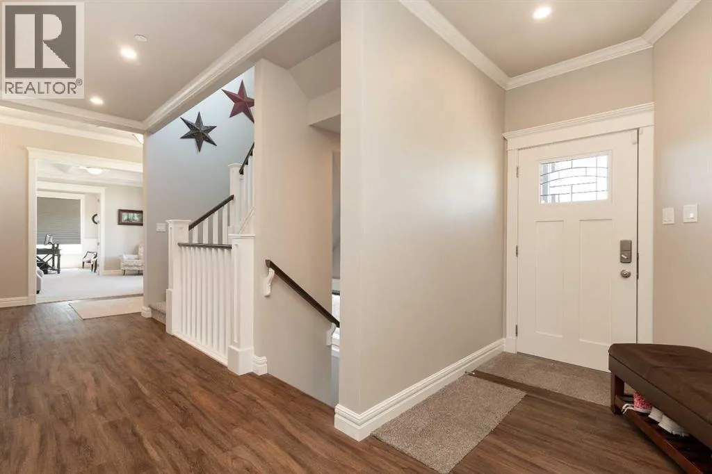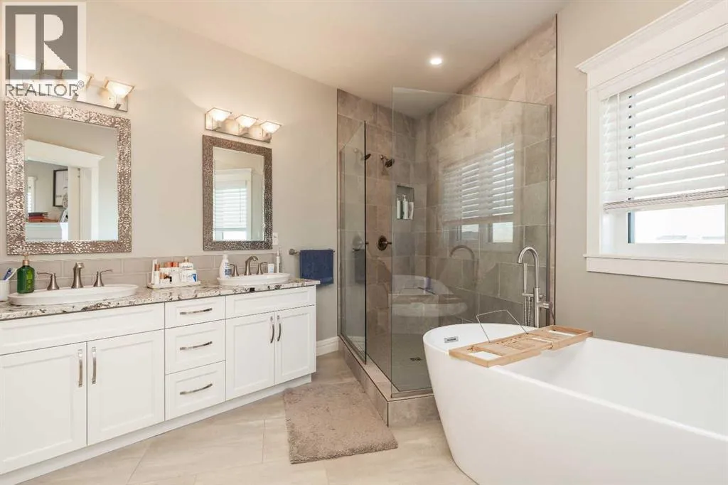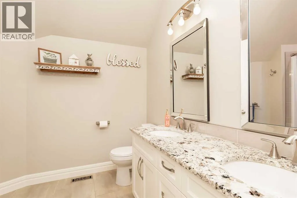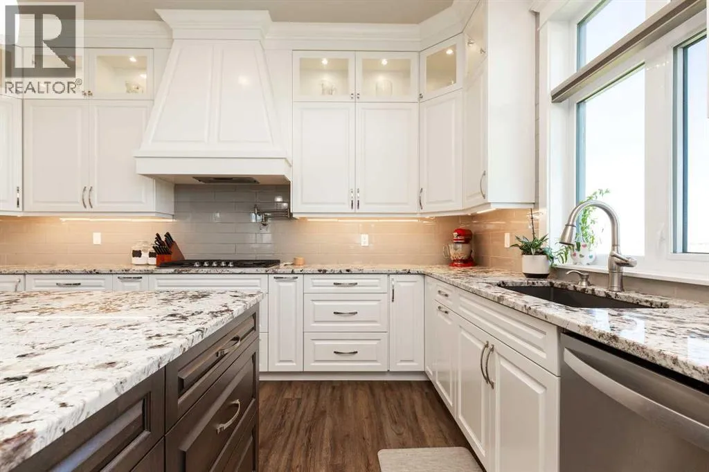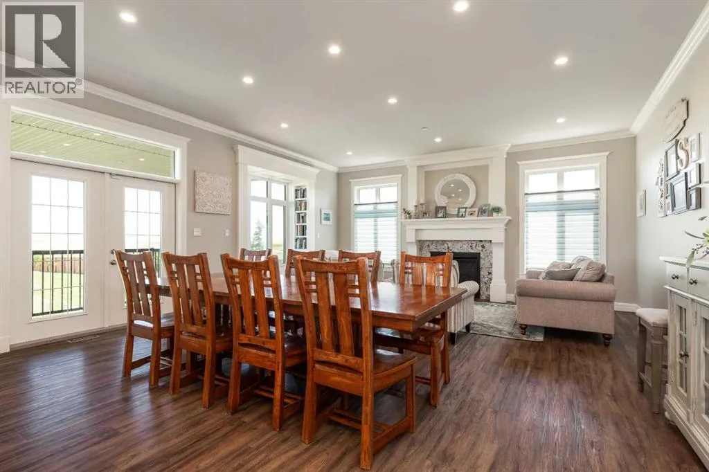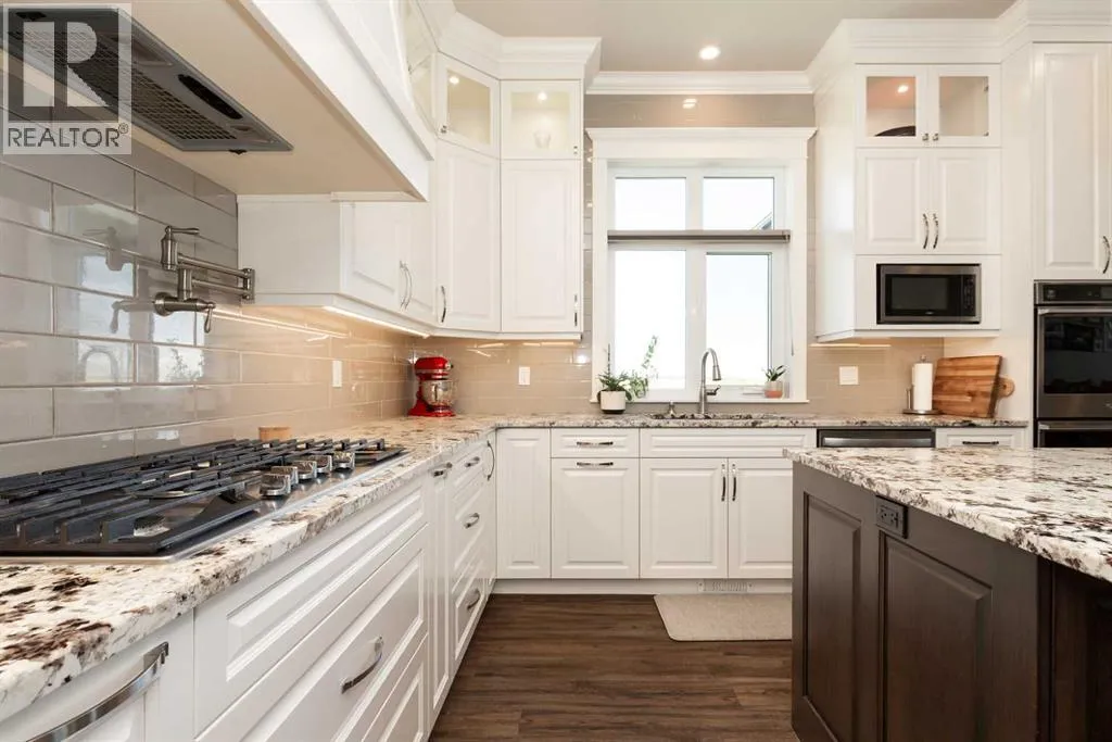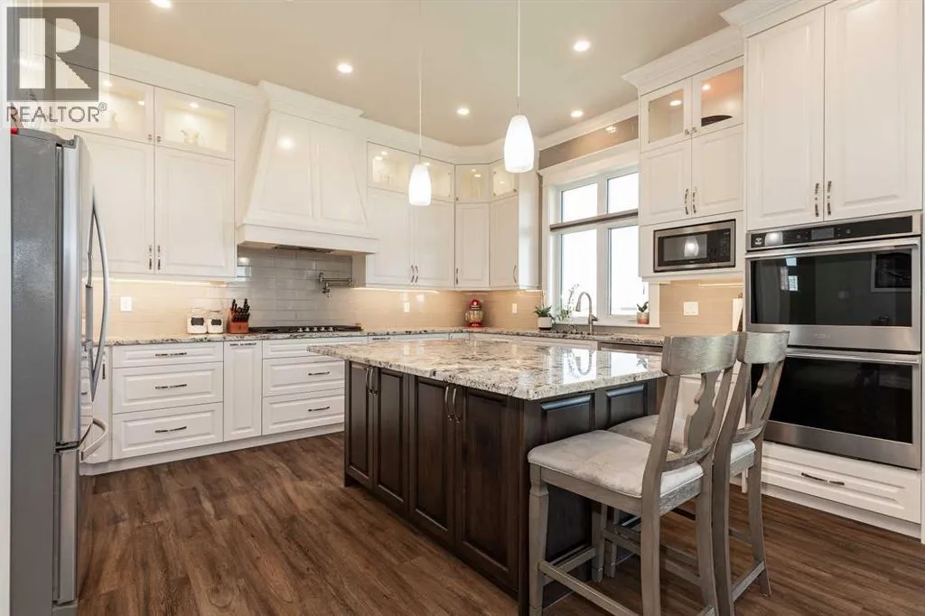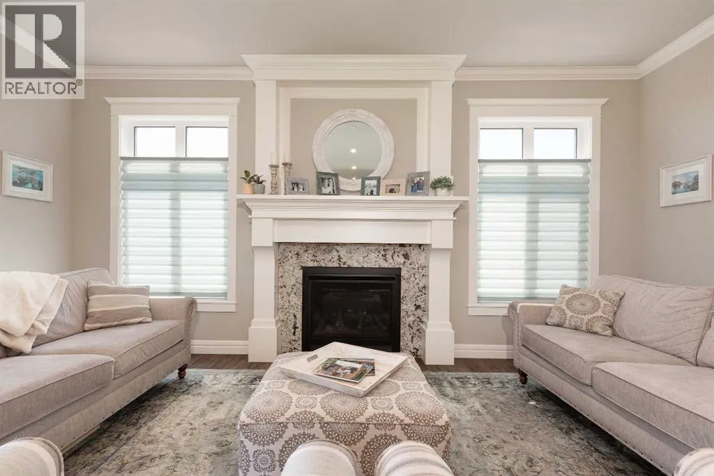 Tucked into the prestigious Edgemoor subdivision, this stunning estate offers the best of both worldsâquiet country living just minutes from West Lethbridge. Set on 1.1 acres of beautifully landscaped land with views of the coulees, mountains, and open fields, itâs hard to beat this locationâor the lifestyle that comes with it.The main home is over 5,600 sq. ft. of thoughtfully finished space, with 10-foot ceilings on the main floor and 9-foot ceilings in the basement. Built with brick and stucco, and finished with granite countertops, stainless steel appliances, vinyl plank flooring, and four fireplaces, this home is as comfortable as it is elegant.The layout is ideal for families and entertaining, with a large chefâs kitchen featuring a central island and plenty of storage. Just off the kitchen are spacious main living areas, a sitting room, bright home office, and main-floor laundry/mudroom. The primary suite is a private retreat with its own granite-framed fireplace and a beautifully finished 5-piece ensuite.Upstairs, youâll find a huge rec room with a fireplace and two oversized bedroomsâeach 16' x 23'âperfect for kids or extended family visiting from out of town. Downstairs, the finished basement includes a massive family room with another fireplace, additional bedrooms, storage, and space to stretch out.Out back, a separate carriage house offers even more flexibility. With a double and single garage below and a 2-bedroom legal suite + office/storage/potential for a bachelor suite above, itâs perfect for multi-generational living, guests, or rental income.The property is fully landscaped with trees, underground sprinklers, and privacy throughout. Both the main house and carriage suite are equipped with fire suppression systems and connected to Telus fibre optic internet for fast, reliable service.Whether you're raising a family, working from home, hosting long-term guests, or just looking for breathing room close to townâthis home offers space, c omfort, and endless possibilities. (id:27476)