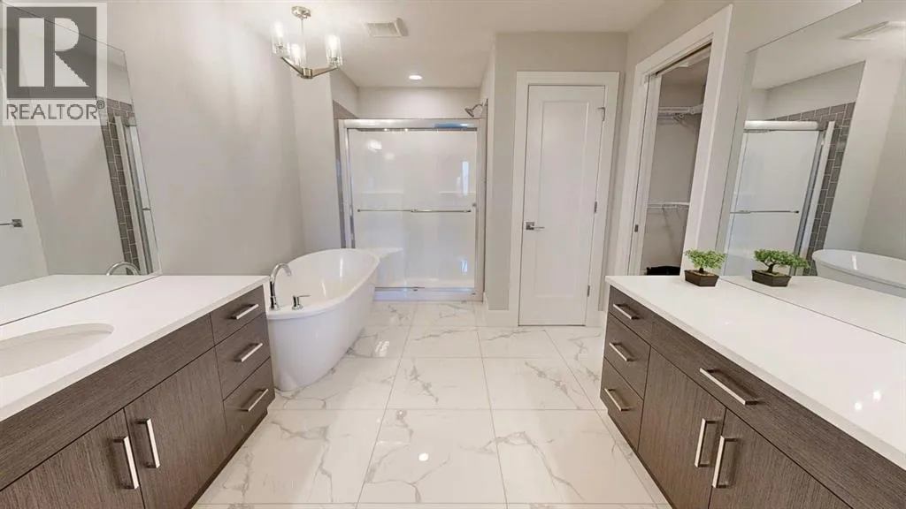 Welcome to this charming, Almost New Two-Storey home with 3 Bedrooms, 2.5 Bathrooms, Bonus Room, AND Office, Double attached garage, and a Walk-up basement with Separate Entrance located in a very desirable, family oriented neighborhood in southside community, and walking distance to elementary school and quick access to major shopping centers! As you walk up to the front entrance, youâll be amazed by a spacious and covered veranda which leads to a very welcoming foyer. Enjoy the open floor plan with 9â ceiling height throughout Main floor and living room with ceiling Open-to-Below with a total livable space of 3295 Sq.Ft. The Beautiful Modern style Kitchen is The Heart Of The Home complete with large quartz island, elegant Cabinets, customized hood fan, customized refrigerator doors to blend in with other cabinets, extra built-in countertop in front of pantry, Gas cook top stove, and all Stainless Steel Appliances. The Open-to-below 18â concept along with big windows looking on to the backyard let lots of natural light come in throughout the day. This immaculate living room has a customized wall decorated with stone around fireplace throughout from main floor all the way to the top of the ceiling. This gives a unique view from hallway upstairs and even when looking down to see the living area on main floor. There is a half bath and an Office on the main floor along with built-in shelf space for closet which can be used as work space or a play room for kids. Going up the stairs, there is a spacious Bonus room which is a great spot for hanging out with friends, movie nights, or just to read a book with natural light from window. In addition, upper Floor consists of 2 big bedrooms, 3-piece bath, and a massive Master Bedroom with a 5-piece en-suite that is fully tiled, has a fancy Bath-tub, Walk-in Shower, extra vanity, and a Walk-in closet. Going downstairs to the enormous basement with a Roughed-in bathroom, laundry set up, there is a full future potential of buildi ng a 2 bedroom+family room Legal suite with a Separate Entrance which walks up to grade on to a Large Fenced Backyard with a back alley. Built in 2021, this home is fully equipped with Central AC, low-maintenance front yard, and fully-fenced Backyard ideal for Kids and Pets. Home in Pristine Condition: owners only lived here for few months since they bought it brand new, no pets, never smoked. This home is still under New Home Warranty. To checkout this beauty, Contact your favorite REALTOR® today! (id:27476)