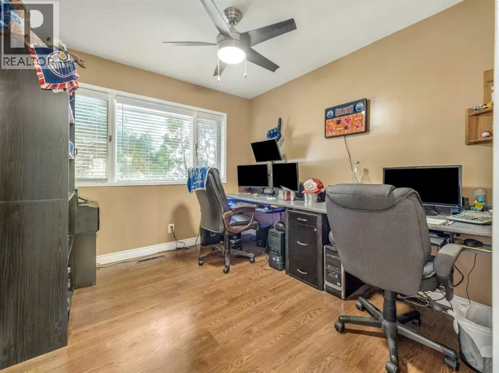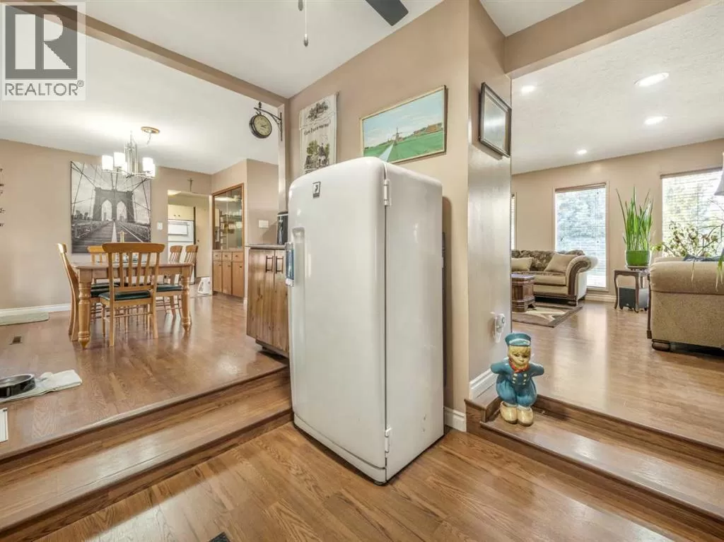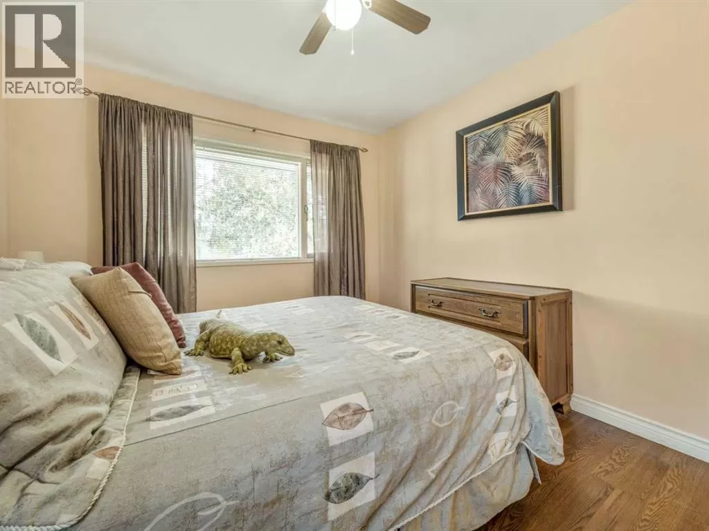 This beautifully maintained home in a sought-after South Lethbridge neighborhood offers five spacious bedrooms and two bathrooms, perfectly suited for families or anyone looking for space and style. Enjoy comfort and convenience with included appliances such as two fridges, stove, dishwasher, microwave, washer, dryer, and central air conditioning. The formal living room creates a welcoming focal point, complete with a cozy wood-burning fireplace that adds warmth and character, while the backyard fire pit sets the scene for relaxed evening gatherings. Recent upgrades shine throughout the property, including hot water on demand, underground sprinklers, fresh exterior paint, upgraded eaves troughs, and new shingles installed two years ago with a approximate 30-year lifespan. The garage door openerâwith two remotesâwas replaced two years ago for added peace of mind. With additional features included like window coverings, blinds, multiple ceiling fans, dual furnaces, water softener and a solar energy system for significant energy savings, this move-in ready gem blends practicality with polish in a welcoming community near parks, schools, and amenities (id:27476)