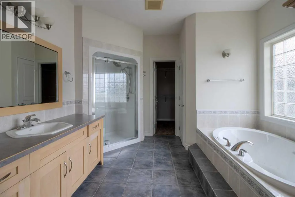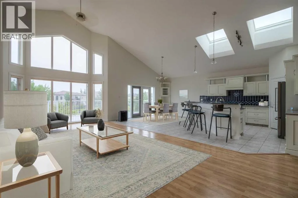 Welcome to 73 Fairmont Park Landing! This exclusive cul-de-sac in the community of Fairmont in south Lethbridge provides privacy and serenity just a couple blocks from some of the best shopping and dining options in the entire city. At almost 3,700 square feet, this custom built one-owner home sits on one of the most desirable feature lots in the neighborhood, backing onto Fairmont Park Lake. Entering the home, you're immediately greeted by an expansive foyer that leads either up into the open concept main floor or down into the massive walk out basement family room. Tall vaulted ceilings and large park-facing windows on the main floor showcase the tremendous main living space with room for cooking, dining, and entertaining all in one area. The patio doors lead to a full-width vinyl deck with maintenance-free aluminum picket railing, and at almost 400 square feet of space, this deck is ready for entertaining family and friends or simply lounging while overlooking the lake. You can also access the rear deck from the large primary bedroom, where you'll find a jetted tub, enclosed shower, and private water closet. Completing the main floor features, you'll find a powder room and a separate laundry room with cabinetry, shelving, and a side by side washer/dryer. Each bedroom on the upper floor over the garage area has a large closet and private 3-piece bathrooms, something you don't often see in most homes. Moving into the fully developed basement, you'll find a tremendous family room with a wet bar, corner fireplace, and access to the walkout basement exposed aggregate concrete patio. Adjacent to the family room, you'll see double doors leading to a flex space suitable for a kids play room or home office. A cute desk area is neatly tucked beside the entry to the flex space, giving you yet another spot for reading, computer or tidy storage. Two more large bedrooms and a 3-piece bathroom complete this terrific family home. A triple-car front attached garage is ready for all of your parking and storage needs and the decorative concrete work on this immaculately landscaped yard is sure to please. Come and see why Fairmont Park Landing is one of the most sought-after neighborhoods in Lethbridge. Photos contain virtual staging. NEW CONCEPT PHOTOS ADDED 08/13/25. THESE ARE VIRTUALLY RENDERED TO SHOW AN EXAMPLE OF A POSSIBLE RENOVATION TO THIS HOME. Homeowner can assist in coordinating this renovation, if you so desired! (id:27476)