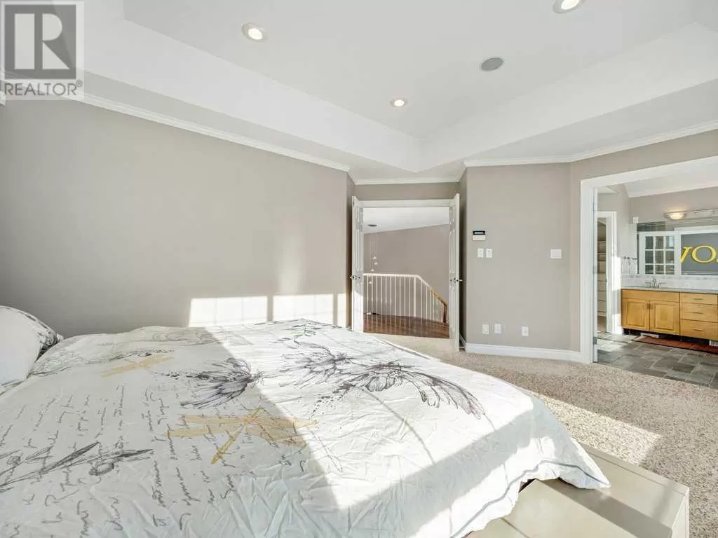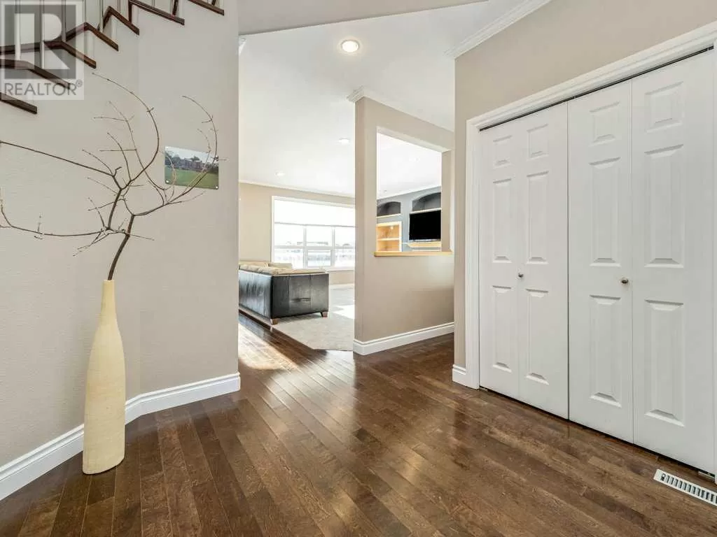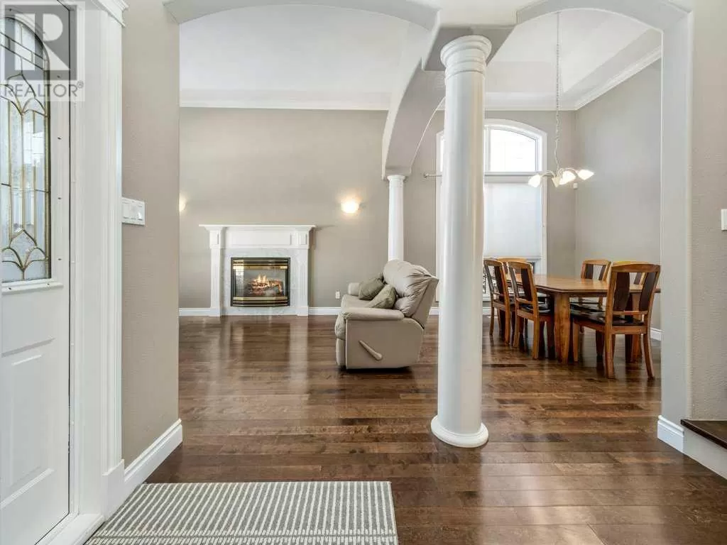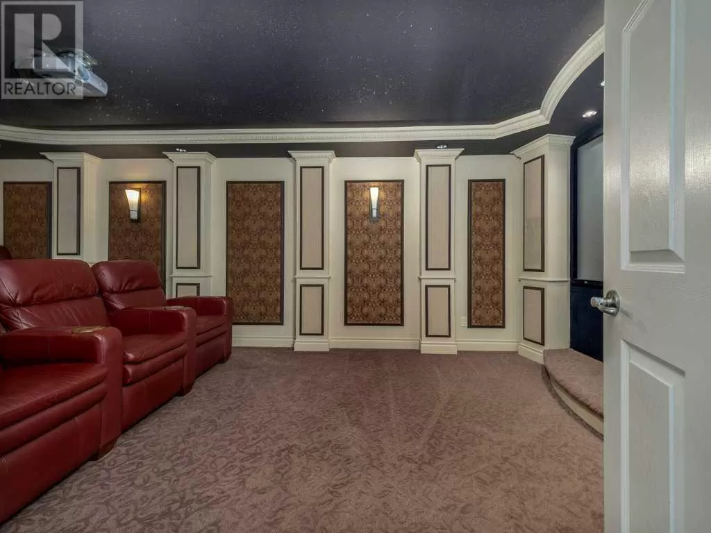 Welcome to this breathtaking custom-built two-storey estate, perfectly positioned on the shores of Fairmont Lake, offering over 4,000 sq. ft. of fully developed living space and panoramic lake views from nearly every room. Designed with exceptional craftsmanship and attention to detail, this home features four spacious bedrooms, 3.5 luxurious bathrooms, and a walk-out basement that enhances both functionality and flow. Entertain with ease in the expansive dining and recreation areas, relax in the private 7-seat theatre room, or unwind by one of three elegant gas fireplaces. The gourmet kitchen is a chefâs dream, complete with granite and Corian countertops, built-in appliances, ample cabinetry, and stunning lake vistas. Upstairs, the bedrooms are thoughtfully laid out for privacy and comfort, including a primary suite with spa-inspired amenities. Outdoor living is just as impressive with a covered patio below for year-round enjoyment, and beautifully landscaped surroundings. A spacious triple-car garage provides plenty of room for vehicles, storage, or hobbies. This is a rare opportunity to own an architecturally striking lakefront home where luxury, comfort, and natural beauty come together seamlessly. (id:27476)