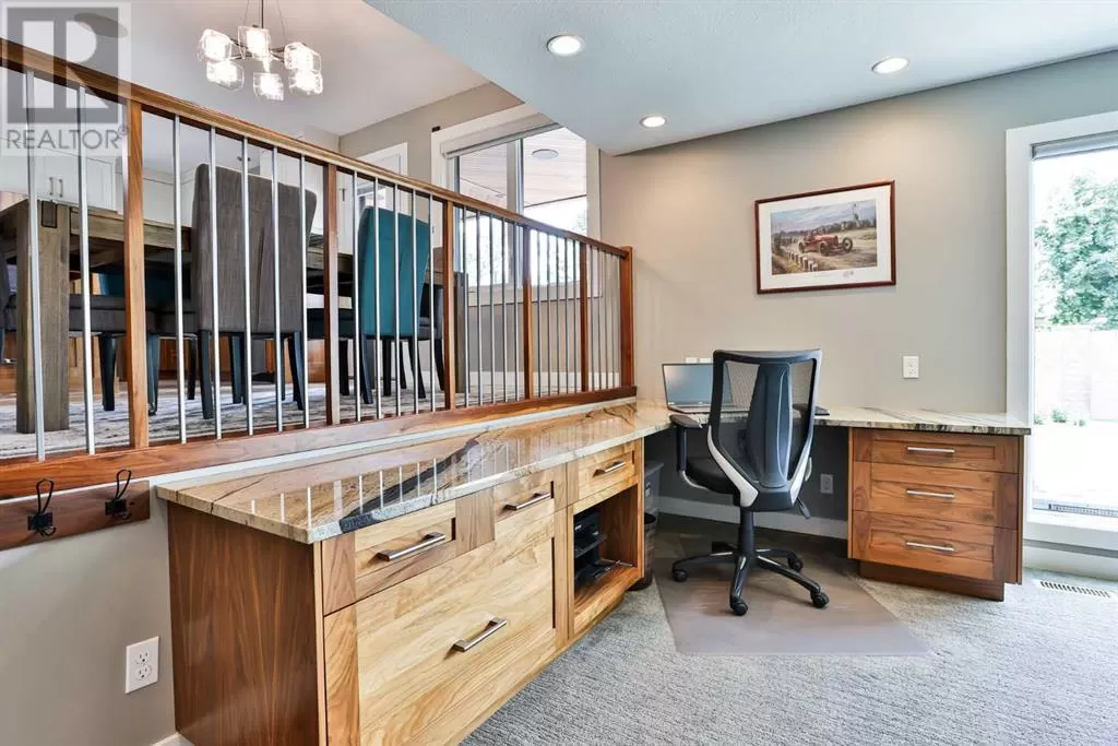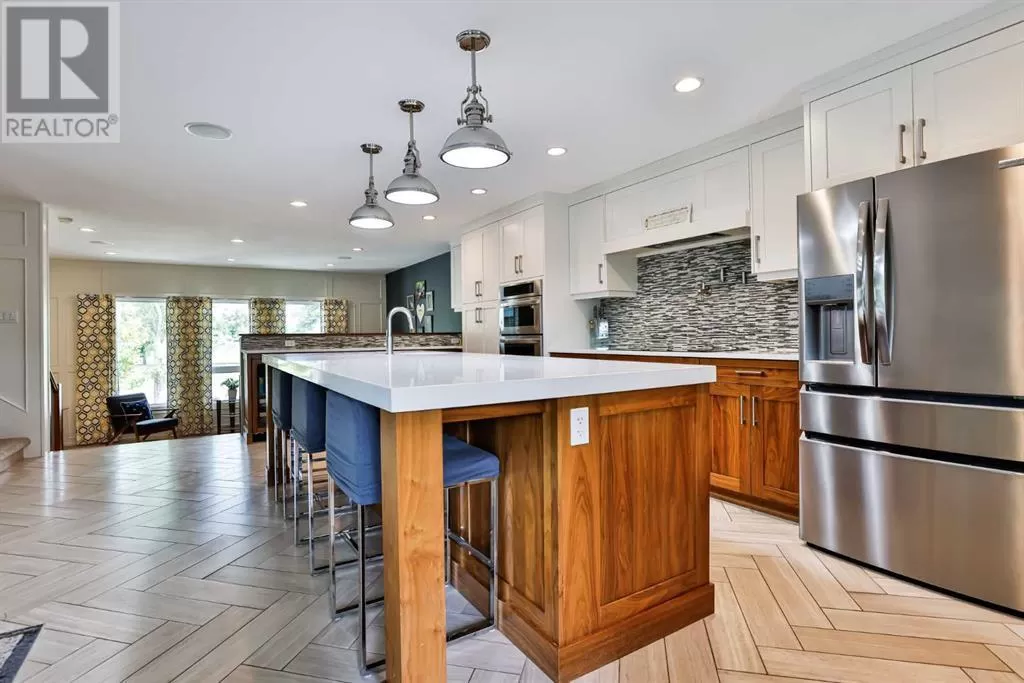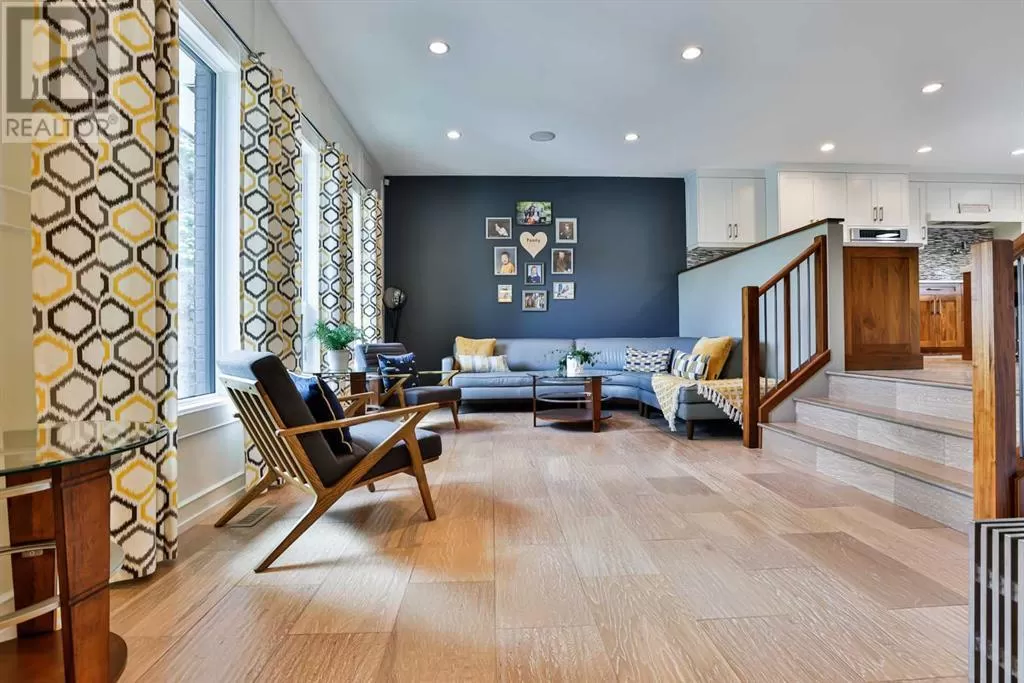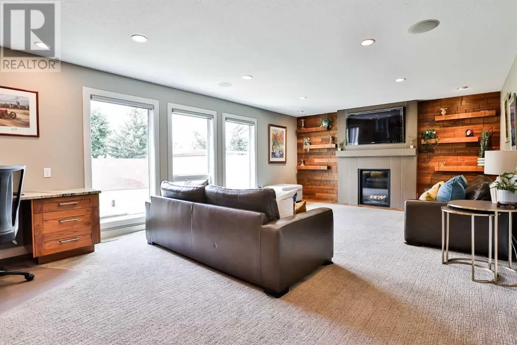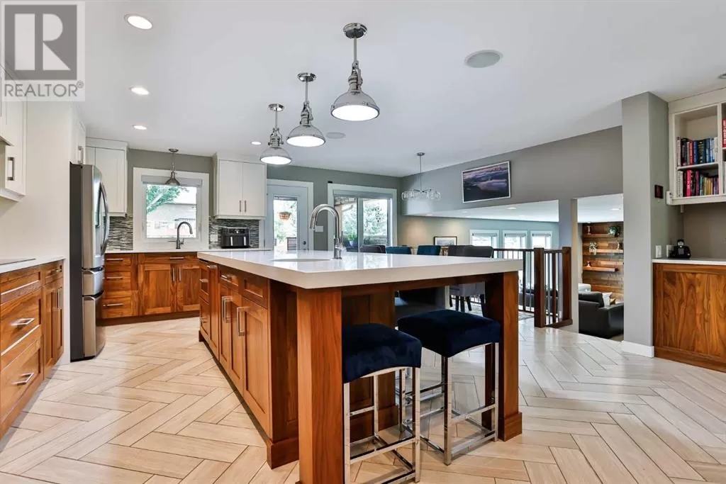 Step into sophistication in this meticulously upgraded home, where every detail has been thoughtfully designed for comfort, function, and wow factor. From the grand entrance, youâre welcomed into a stunning formal living room with gleaming hardwood floors that flow into the heart of the home â an expansive kitchen and dining area that spans an entire level.This one-of-a-kind chefâs kitchen is a true showstopper, featuring custom cabinetry by Cabinet Expression, a massive 10-foot island, built-in stove and microwave, induction cooktop, refrigeration drawers, beverage fridge, two sinks, quartz counters, marble flooring, under-cabinet lighting, touch tap, and a garburator.Just off the kitchen is a warm and inviting family room and home office area, complete with a custom wall unit with built-in TV, shelving, and fireplace. Upstairs, youâll find three bedrooms, all with plush, luxurious carpeting and two bathrooms. The primary suite is a personal retreat with its built-in TV, spa-inspired ensuite with double sinks, rainfall tile shower, heated floor, and an impressive custom walk-in closet.Near the garage entry, the mudroom includes access to a beautifully finished laundry room with sink, folding station, and hanging area. A stylish half-bath features a tile accent wall and built-in storage. The lower level offers a spacious fourth bedroom, home gym, and massive storage space.Downstairs, the basement is made for entertaining â complete with a large recreation area, wet bar, and a unique 3-piece bath with eye-catching aqua tile and finishes. The built-in speakers throughout the house, on the covered patio, and heated garage are linked to the Control4 System.Outside is your own private oasis: a covered patio with tile flooring, stone feature walls, a built-in gas BBQ and TV, plus two lower teak deck areas with lighting, built-in planters, and a cozy gas firepit. The yard is fully equipped with underground sprinklers and enclosed by a cinder block fence for privacy. R ecently installed triple glazed windows and newer high end kitchen appliances too! Ideally located directly across from Nicholas Sheran Park, youâll enjoy instant access to 106 acres of green space, including a lake, 7 km of walking trails, disc golf, playgrounds, and nearby schools.This is more than a home â itâs your dream lifestyle waiting to happen. Donât miss the chance to make it yours! (id:27476)