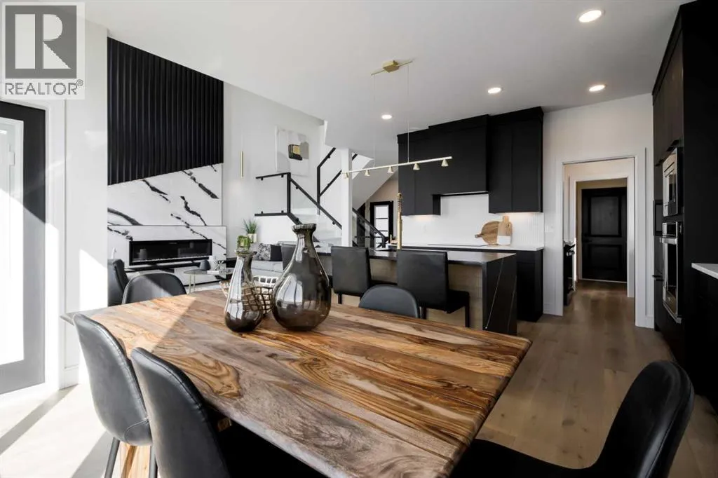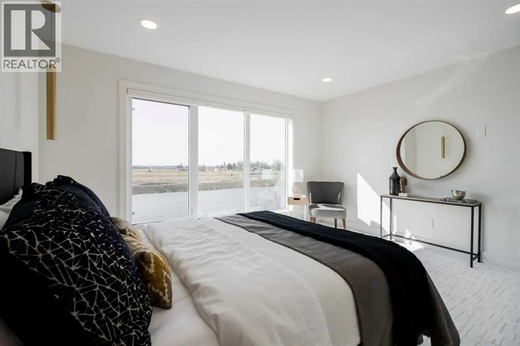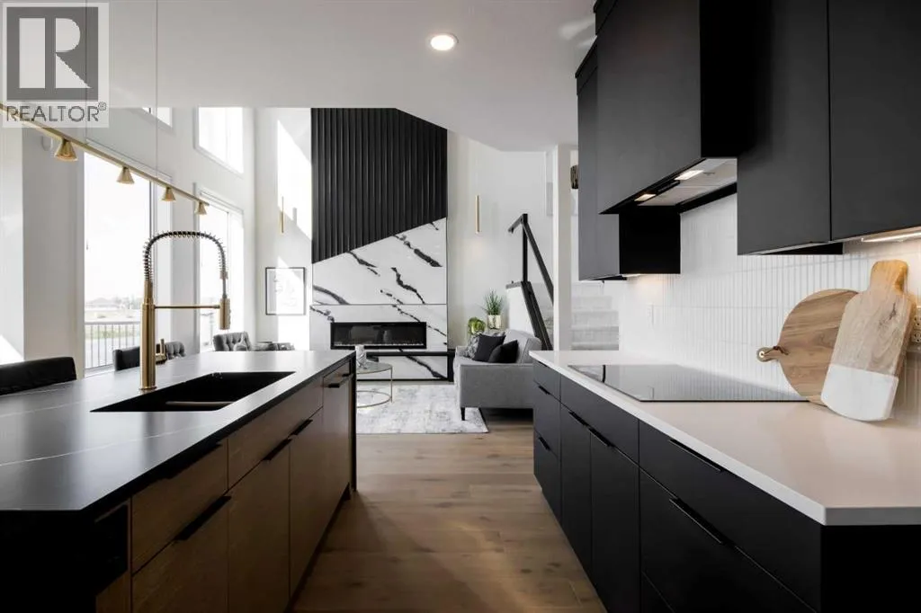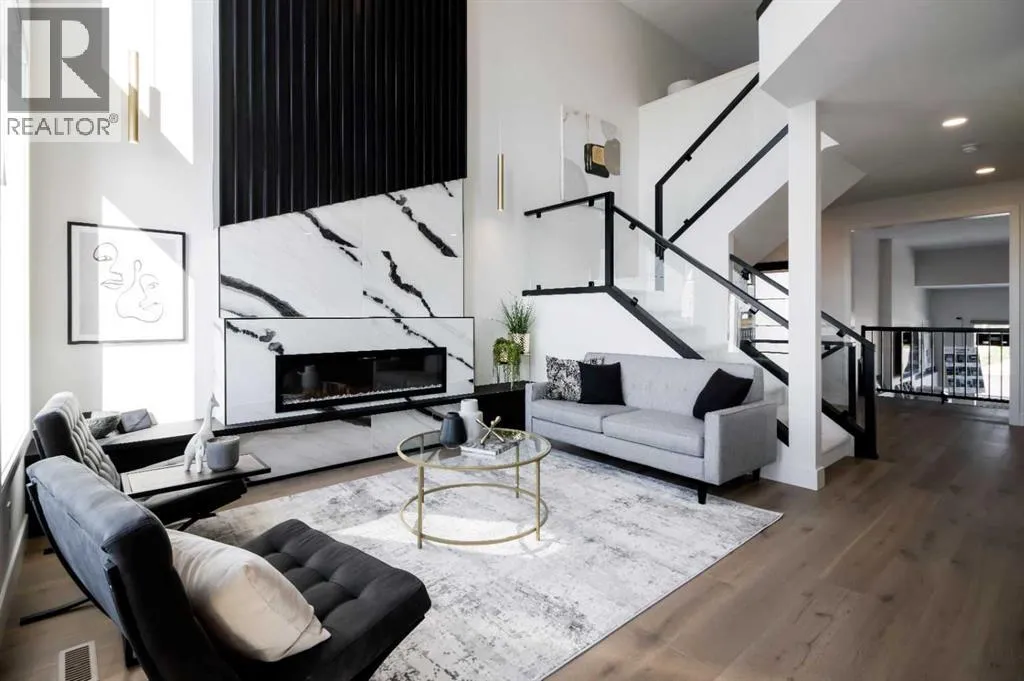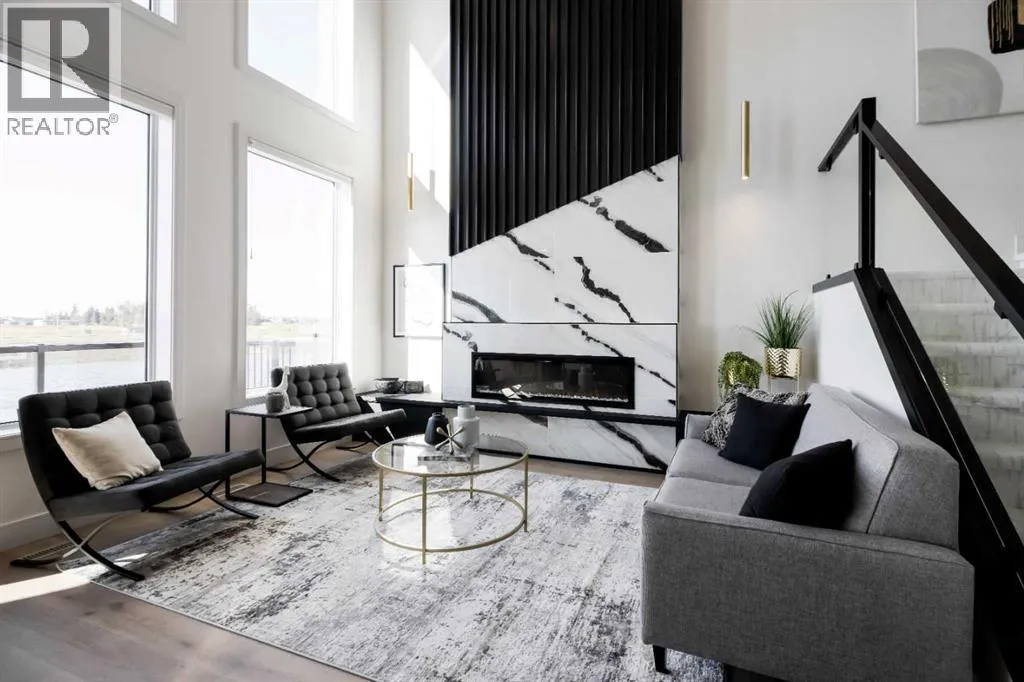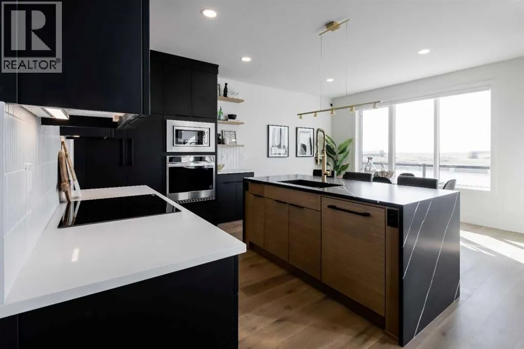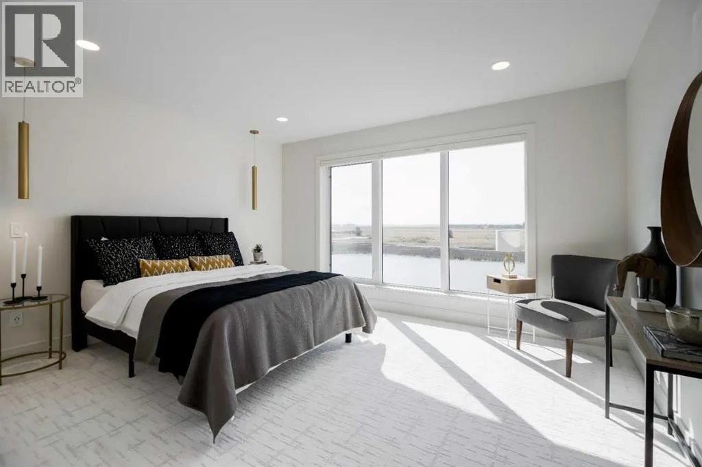 SHOW HOME FOR SALE! This award-winning show home in Southbrook, built by Stranville Living Master Builder, is finally ready to be sold and occupied by a lucky new homeowner. This Perth II model with walk-out basement has been recognized locally , provincially, and nationally for it's overall design, the executive kitchen, and the primary ensuite, making it one of the most popular builds every produced by Stranville Living. The pictures speak for themselves, but this home must be seen to be fully appreciated. The main floor is blessed with a gorgeous kitchen, accented by two-tone cabinetry, veined waterfall quartz island, and seamlessly integrated panel-ready appliances. Adjacent to the main kitchen is a private spice kitchen that includes a gas range and electric oven, hood fan, sink , and dishwasher. The striking main floor fireplace is a show-stopper that centers the family room and towers up the 18' ceilings in the open-to-below area with massive south-facing windows overlooking the pond at Discovery Park. Stairs with glass railing lead you to the upper level where you'll find the 170+ square foot primary bedroom that also enjoys views to the south. There are not many ensuite bathrooms that can rival this beauty, with features that include a custom shower with integrated tiled floor and walls, floating vanity in quarter-sawn oak with double sinks and floor lighting, deep soaker tub with floor-mounted fixtures, and a private water closet. Through the ensuite, you'll find the laundry room with a stacking washer/dryer set with sink and cabinet. Two more ample bedrooms, full bathroom, and generous media room wrap-up the upper level. The fully developed walkout basement adds two more bedrooms, full bathroom, and family room with a sliding patio door to the rear yard. If you're looking for 5-bedroom, fully developed, fully landscaped southside home with upgrades for days, you've come to the right house. There's nothing like NEW! (id:27476)