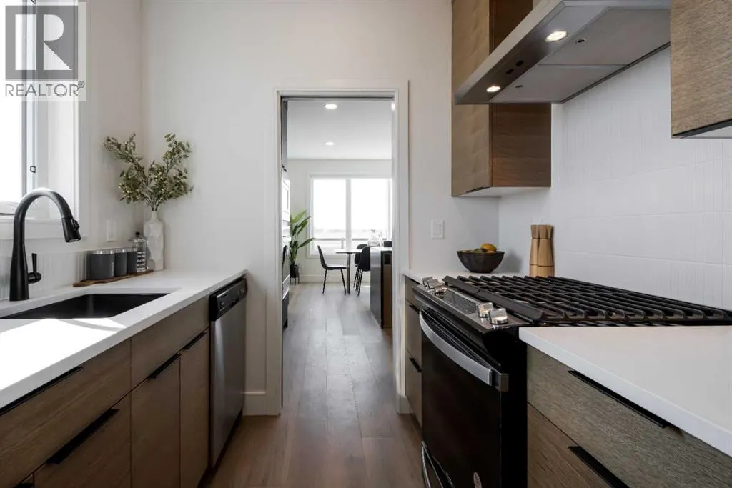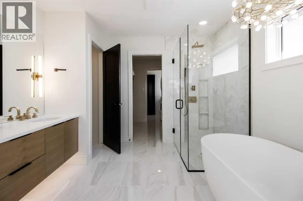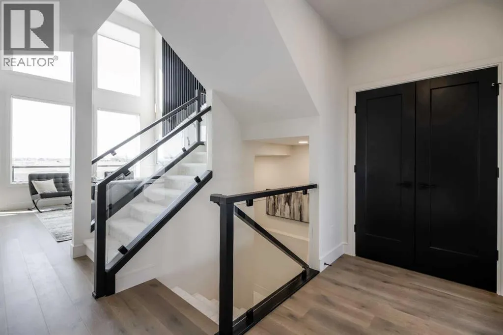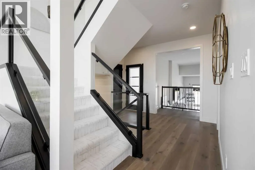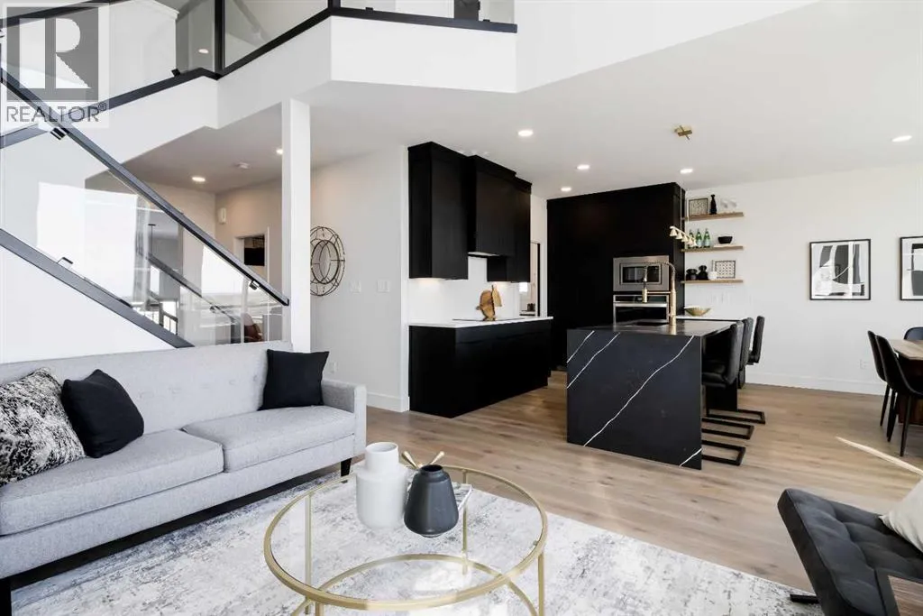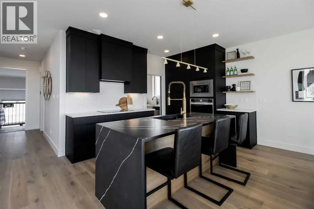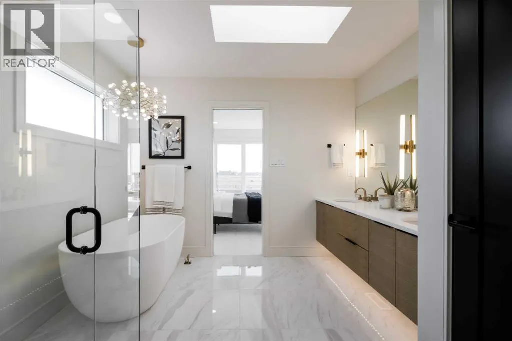 SHOW HOME FOR SALE! This award-winning show home in Southbrook, built by Stranville Living Master Builder, is finally ready to be sold and occupied by a lucky new homeowner. This Perth II model with walk-out basement has been recognized locally , provincially, and nationally for it's overall design, the executive kitchen, and the primary ensuite, making it one of the most popular builds every produced by Stranville Living. The pictures speak for themselves, but this home must be seen to be fully appreciated. The main floor is blessed with a gorgeous kitchen, accented by two-tone cabinetry, veined waterfall quartz island, and seamlessly integrated panel-ready appliances. Adjacent to the main kitchen is a private spice kitchen that includes a gas range and electric oven, hood fan, sink , and dishwasher. The striking main floor fireplace is a show-stopper that centers the family room and towers up the 18' ceilings in the open-to-below area with massive south-facing windows overlooking the pond at Discovery Park. Stairs with glass railing lead you to the upper level where you'll find the 170+ square foot primary bedroom that also enjoys views to the south. There are not many ensuite bathrooms that can rival this beauty, with features that include a custom shower with integrated tiled floor and walls, floating vanity in quarter-sawn oak with double sinks and floor lighting, deep soaker tub with floor-mounted fixtures, and a private water closet. Through the ensuite, you'll find the laundry room with a stacking washer/dryer set with sink and cabinet. Two more ample bedrooms, full bathroom, and generous media room wrap-up the upper level. The fully developed walkout basement adds two more bedrooms, full bathroom, and family room with a sliding patio door to the rear yard. If you're looking for 5-bedroom, fully developed, fully landscaped southside home with upgrades for days, you've come to the right house. There's nothing like NEW! (id:27476)