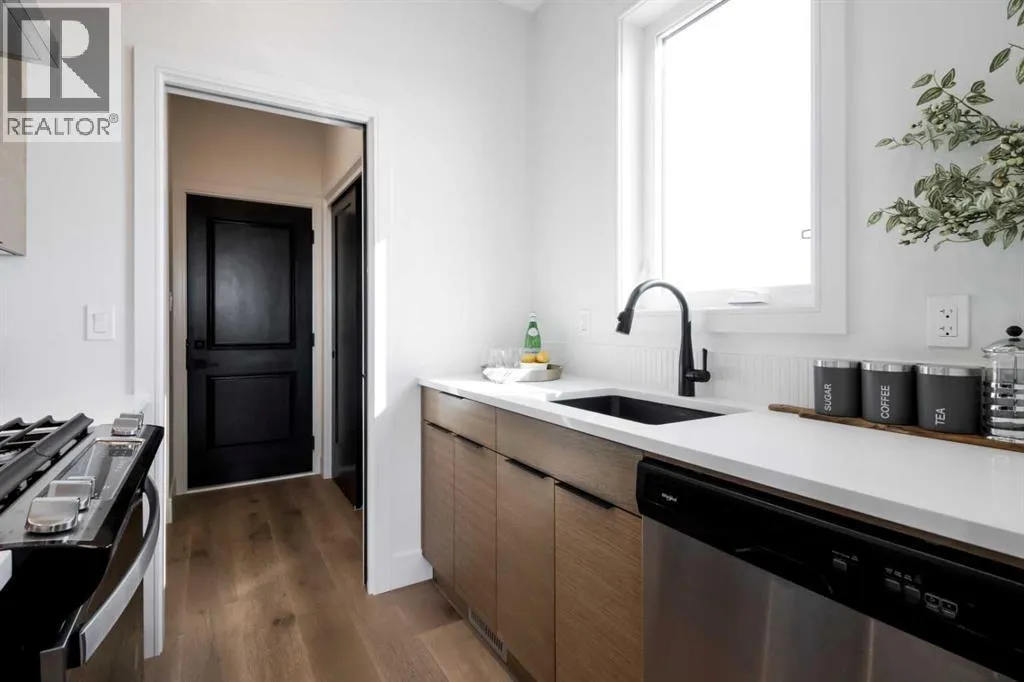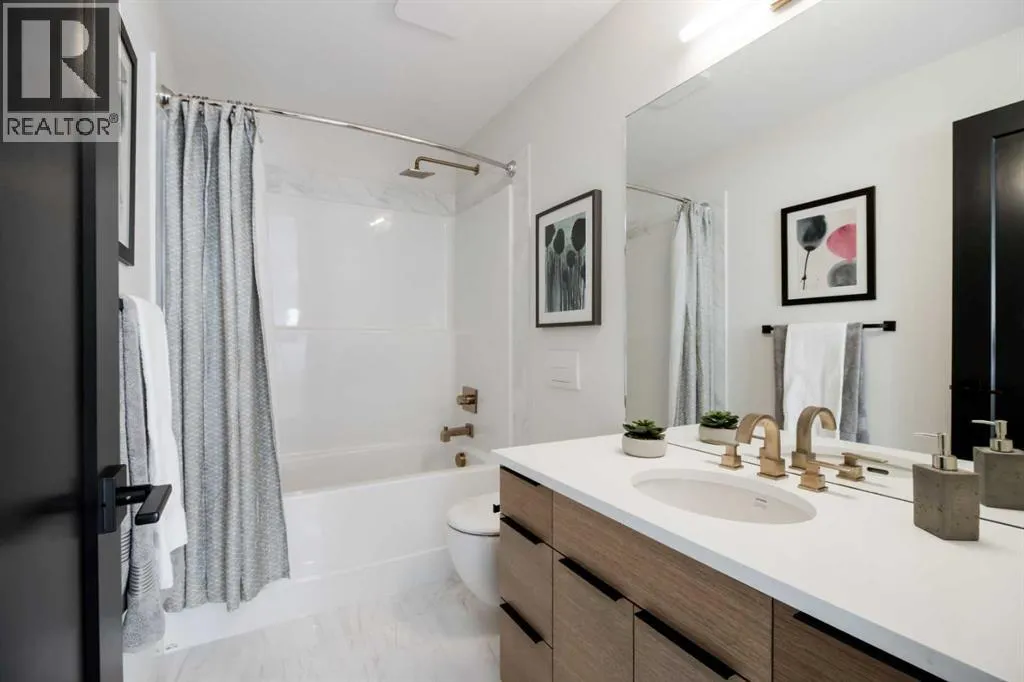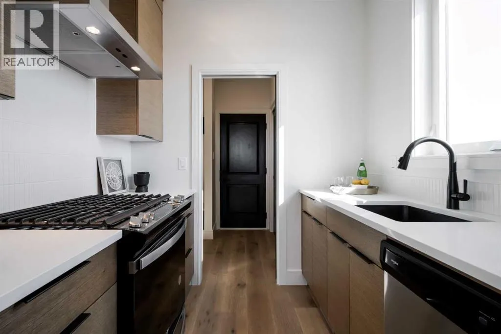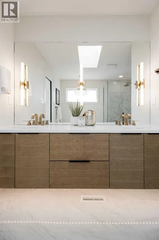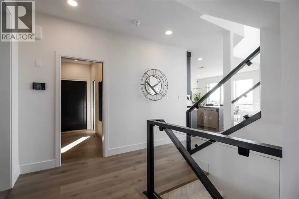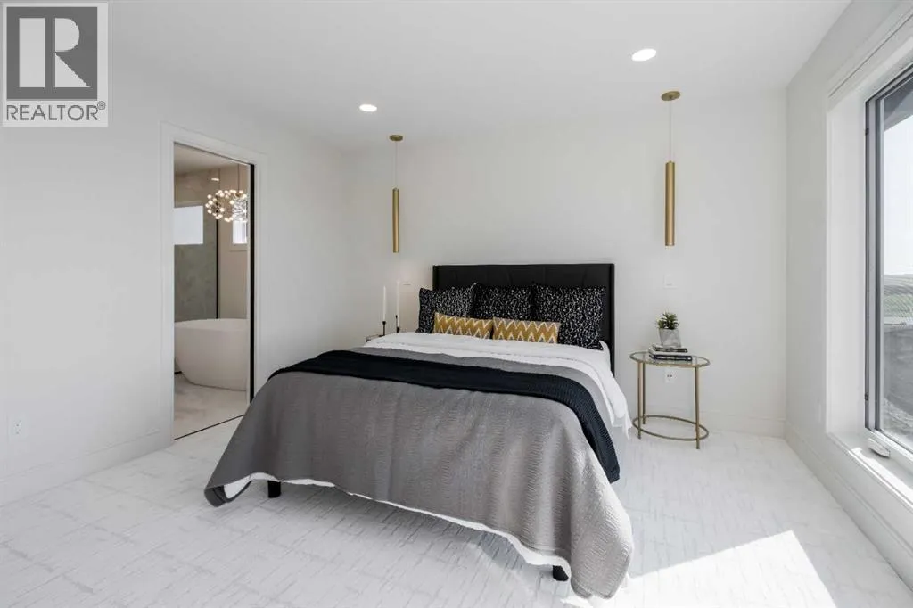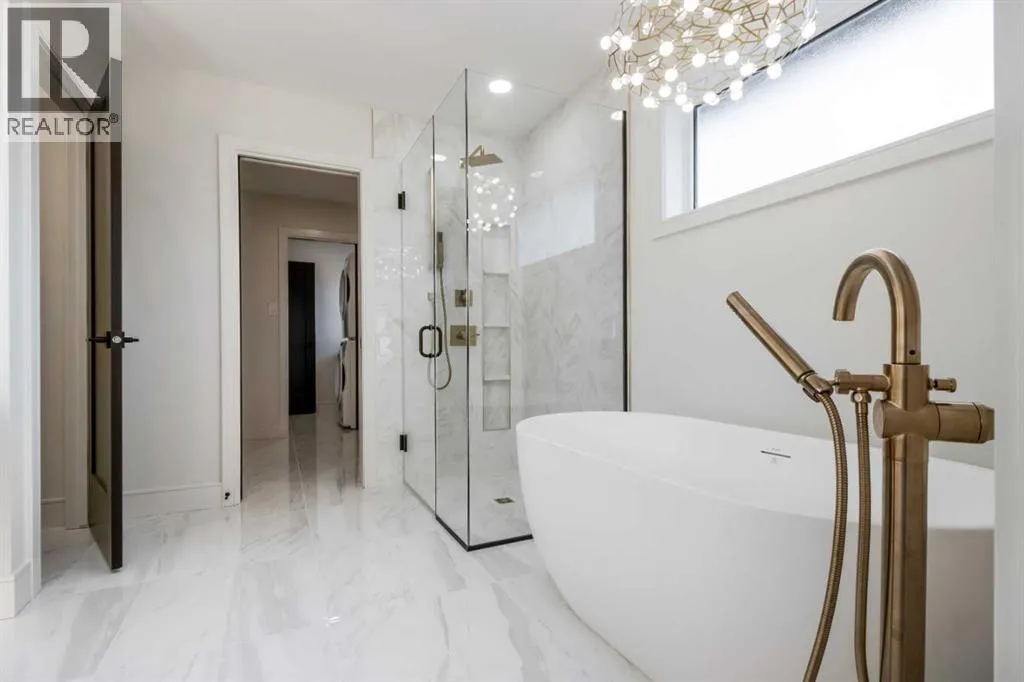 SHOW HOME FOR SALE! This award-winning show home in Southbrook, built by Stranville Living Master Builder, is finally ready to be sold and occupied by a lucky new homeowner. This Perth II model with walk-out basement has been recognized locally , provincially, and nationally for it's overall design, the executive kitchen, and the primary ensuite, making it one of the most popular builds every produced by Stranville Living. The pictures speak for themselves, but this home must be seen to be fully appreciated. The main floor is blessed with a gorgeous kitchen, accented by two-tone cabinetry, veined waterfall quartz island, and seamlessly integrated panel-ready appliances. Adjacent to the main kitchen is a private spice kitchen that includes a gas range and electric oven, hood fan, sink , and dishwasher. The striking main floor fireplace is a show-stopper that centers the family room and towers up the 18' ceilings in the open-to-below area with massive south-facing windows overlooking the pond at Discovery Park. Stairs with glass railing lead you to the upper level where you'll find the 170+ square foot primary bedroom that also enjoys views to the south. There are not many ensuite bathrooms that can rival this beauty, with features that include a custom shower with integrated tiled floor and walls, floating vanity in quarter-sawn oak with double sinks and floor lighting, deep soaker tub with floor-mounted fixtures, and a private water closet. Through the ensuite, you'll find the laundry room with a stacking washer/dryer set with sink and cabinet. Two more ample bedrooms, full bathroom, and generous media room wrap-up the upper level. The fully developed walkout basement adds two more bedrooms, full bathroom, and family room with a sliding patio door to the rear yard. If you're looking for 5-bedroom, fully developed, fully landscaped southside home with upgrades for days, you've come to the right house. There's nothing like NEW! (id:27476)
