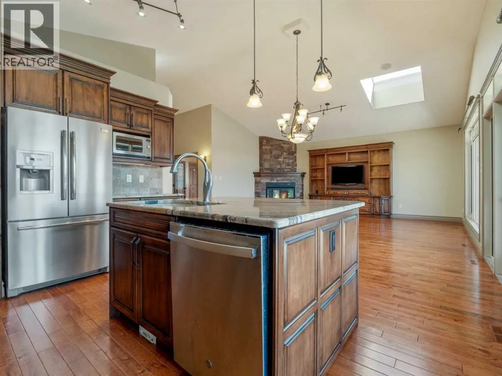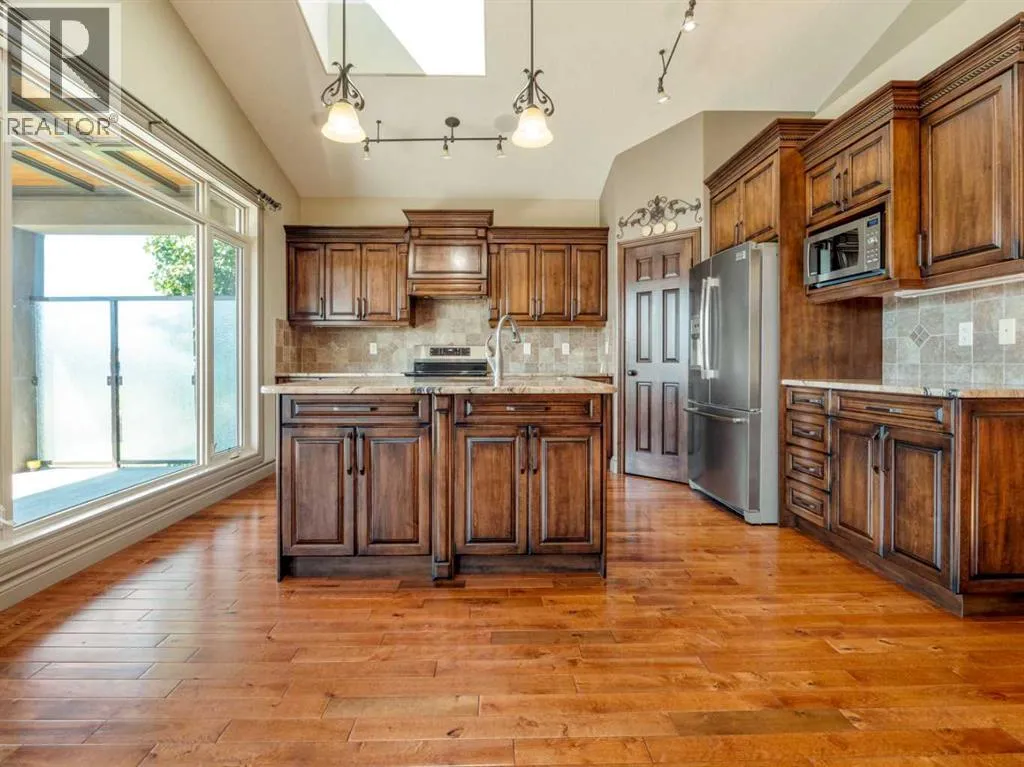 Love at First SightâA Nature Loverâs Dream HomeUpdated pricing based on a recent appraisal conducted by a certified appraiser. Appraisal report is attached for your referenceWelcome to a truly one-of-a-kind home in the heart of the sought-after Southgate community. Backing onto a tranquil lake and surrounded by peaceful pond and lush green spaces, this property is a rare gem that blends luxury, comfort, and natural beauty.Designed for both relaxation and entertaining, the open-concept layout on both levels is flooded with natural light from full-length, south-facing windowsâoffering stunning views year-round. Step out onto the spacious shaded deck or walkout patio and enjoy quiet mornings or lively evenings with the water and nature as your backdrop.Inside, elegance meets function with high-end finishes throughout: granite countertops, stainless steel appliances (including an induction stove installed in 2022), double-stained maple cabinetry, and beautiful bathrooms with granite floors âall with heated floors. The expansive master suite feels like a private retreat with its spa-inspired ensuite.With three cozy gas fireplaces, three full bathrooms, and an adaptable bonus room (perfect for an office or extra bedroom), this home suits families of all sizes. The walkout basement provides additional flexible living space, two bedrooms and a summer kitchen while a large crawl space and oversized, heated garage offer exceptional storage.Thoughtful updates and features include: 24 solar panels (2022)New washer & dryer (2023)New dishwasher (2022)Central air conditioningFront & back sprinkler systemLow-maintenance landscaping (2024)Heated and insulated garageLush greenery and lake views both front and backLocated just steps from walking and biking trails, parks, schools, and shopping, this home offers both tranquility and convenience. Solidly built, beautifully finished, and surrounded by nature, this is more than a home; itâs a lasting investment in lifestyle, comfort, and peace of mind. (id:27476)