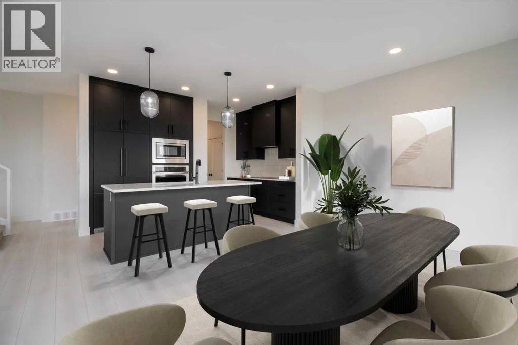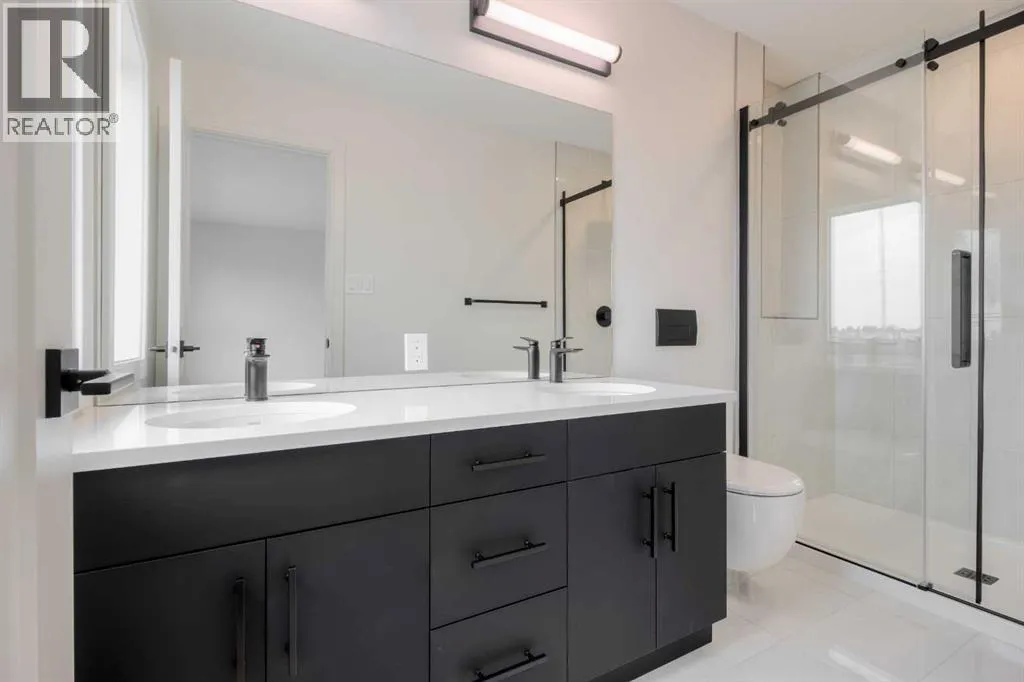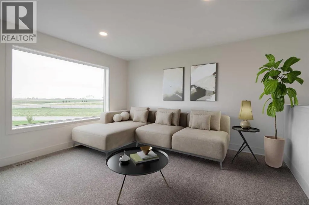 Welcome to the Westhill by Stranville Living in the popular community of BlackWolf in north Lethbridge! You can't talk about BlackWolf without focusing on Legacy Regional Park, the first major regional park on the north side, similar to Henderson Lake Park and Nicholas Sheran Park. The park spans 73 acres and was designed for people to play, relax and connect with their community. Amenities include Skate Park, Playground, Challenge Course, Fitness Equipment, Group Picnic Shelter, Belvedere Lookout and Amphitheatre, Discovery Playground , Tennis, Pickleball, Basketball, Baseball, Soccer, Public Washrooms, Paved Pathways, Natural trails, Outdoor Skating, Sledding Hill, Ornamental Gardens, Spray Park, Bookable Picnic Shelter, Bookable Pavilion, and Concession - Open weekends. ENOUGH ABOUT THE PARK! Let's get back to the two-storey home in this quiet cul-de-sac that is ready for move-in TODAY. At over 1,800 square feet of developed area, this 3 bedroom, 2.5 bath home is terrifically finished in selections made by the builder's skilled interior design team. The main floor includes a beautifully appointed kitchen in a sexy black "Velour Touch" finish by Adora Cabinets, fully tiled backsplash, and quartz countertops for both the base cabinets and island with extended bar. Stranville Living's top tier appliance package includes a seamlessly integrated paneled Fisher & Paykel fridge, paneled dishwasher, induction cooktop, built-in hood fan, and a stainless steel wall oven and microwave combo unit. A sleek electric fireplace accents the main floor living room with a wall mounted mantle that is crisp and clean. A large sliding glass door exits onto the future deck and sits adjacent to a massive rear window with park views for days. Upstairs, a large primary bedroom includes a tasteful double sink vanity, wall mounted toilet, and a sizeable tiled shower with glass door. Two more ample bedrooms, a 4-piece bathroom, and laundry closet also grace this upper level, but it is the 163 square foot media room that makes it complete. Don't forget about the high efficient mechanical equipment, Low E windows, and spray foam in the rim joists that help keep your heating and cooling costs in check. All the beautiful finishes of the home aside, it is the incredible size of the lot that sets this home apart from every other home on the street. Come by and see what I mean, you'll be happy you did. Pictures contain virtual staging. There's nothing like NEW! (id:27476)