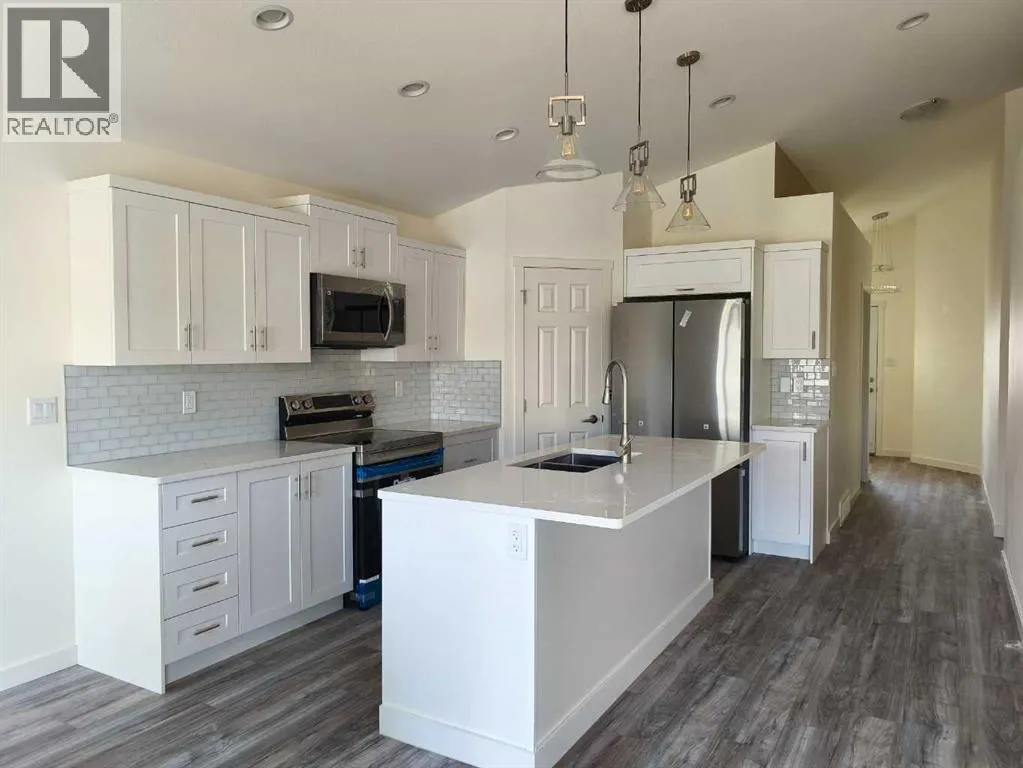 Stunning brand-new 6-bedroom bungalow with walk-out basement in prestigious Riverstone!This thoughtfully designed home combines modern style, comfort, and functionality. The main floor features soaring vaulted ceilings, an open and sun-filled layout, quartz counters in the kitchen, stainless steel appliances and 3 bedrooms. The spacious primary suite offers a luxurious 5-piece ensuite with double vanities, tub, 5-ft shower, and walk-in closet. Central A/C and laminate flooring at both levels.The fully developed bright walk-out basement includes a large family room, wet bar, storage, 3 bedrooms, 1.5 baths, and a second laundry. With dual-zone heating and separate thermostats, youâll never worry about a cold basement in winter. Two laundry rooms provide independence and convenience for each level. Enjoy a flat backyard with back lane access, perfect for outdoor living, gardening, or extra parking options. Combining modern design, practicality, and elegance, this Riverstone bungalow delivers everything your family has been looking forâin one of Lethbridgeâs most desirable locations! (id:27476)