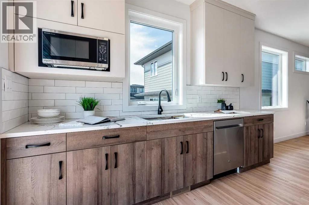 JUST COMPLETED! Check out this BRAND NEW bi-level home that features hardiboard exterior and has more than 2500 total square feet of developed living space from Custom Quality Build! Front landscaping included! This 5 bed, 3 bath home is completely finished with a forced WALK-OUT basement to covered patio and a few steps up to the backyard area. CQB always delivers their new homes to clients with the appliances and central a/c included! Main floor and basement both feature 9 foot tall ceilings! Main floor has open plan with 3 bedrooms including primary bedroom with ensuite and walk-in closet. Living room features electric fireplace. Kitchen has quartz counters, stainless steel appliances and sliding glass doors to deck out back. Another full bathroom and a laundry closet complete the main. Basement is also fully developed with family room that has a wet bar, games room, 2 more bedrooms, another full bathroom, a laundry room, and a furnace/utility room with tankless hot water and tons of storage! Walk-out to the covered patio below the deck. There is also a 22x22 garage for your vehicles. Move in and enjoy! (id:27476)