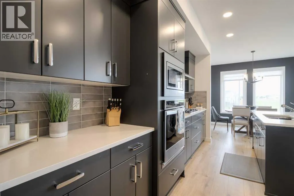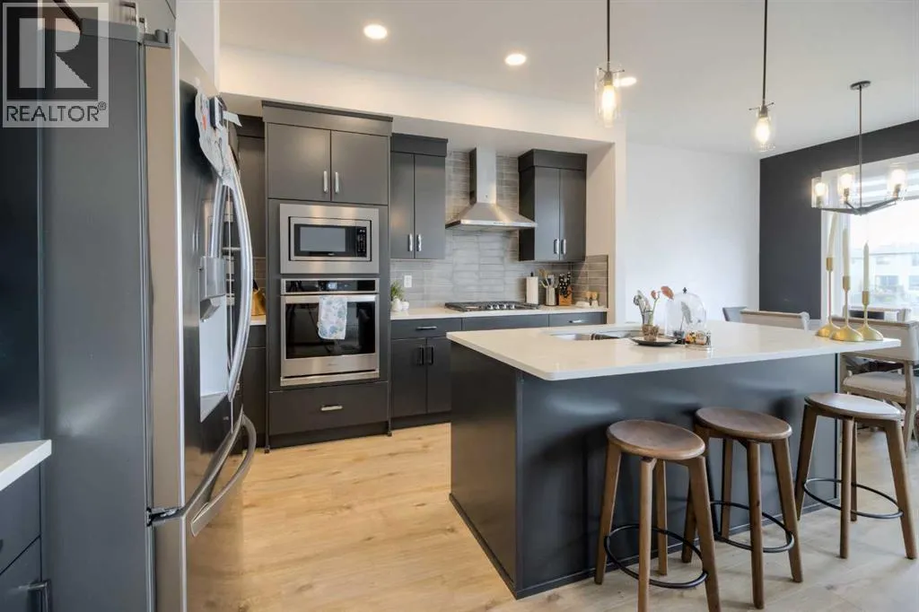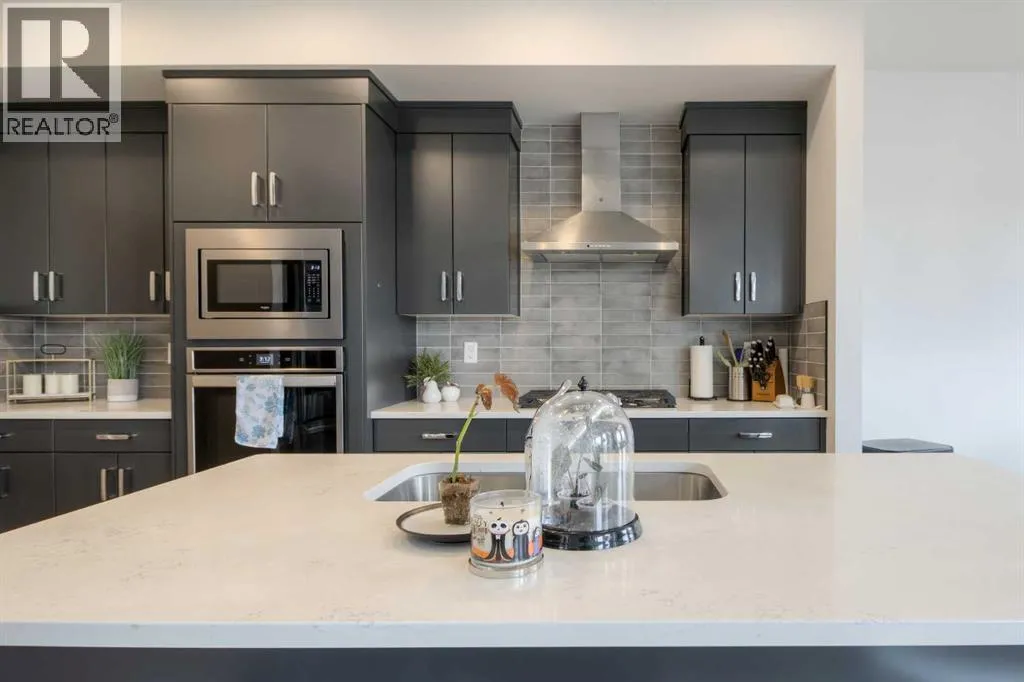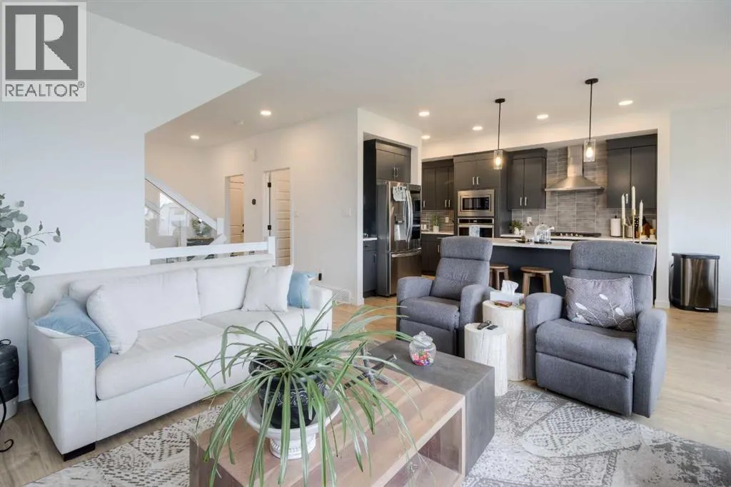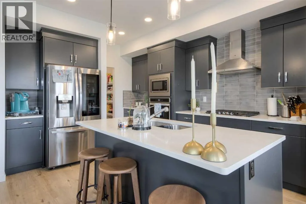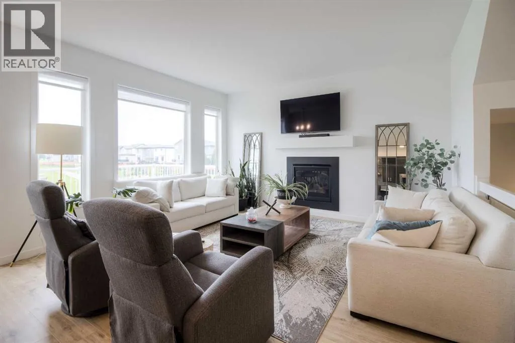 A gorgeous, fully finished 2 storey backing onto a green space! This delightful home is stylish, modern and enjoys a walk-out basement, 3 living rooms and tons of extras. There's plentiful natural light in this home with huge windows, a walk-through pantry off of the mud room, quartz counters in your kitchen and a gas fireplace in your living room! There's a cozy living room upstairs, 3 bedrooms, 4 piece bathroom and laundry room with a sink! The primary offers a well-sized walk in closet and 5 piece ensuite with gorgeous soaker tub! The finished basement is a great entertaining space with wet bar, secondary fireplace and access to your covered patio. (id:27476)