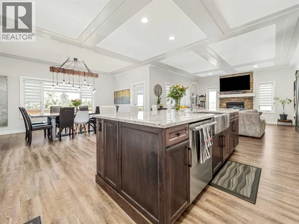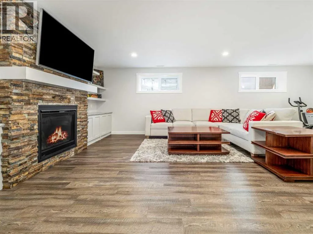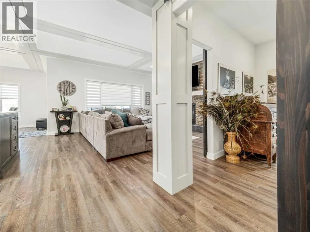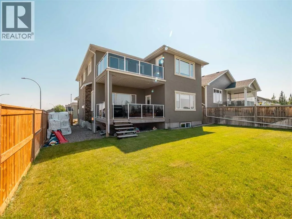 BIG & BEAUTIFUL! Large two storey home in Sixmile neighbourhood with more than 4100 SQUARE FEET of living space for the family! Large welcoming entry with staircase open to above. Main floor features vinyl plank flooring and high ceilings. Main floor has office with barn doors that close off to hallway and living room. Living room features gas fireplace with floor to ceiling stone wall feature and mantle. Kitchen is large and has beautiful white cabinets, granite counters with large island, stainless steel appliances with gas range, and a large pantry that leads to a mudroom with hooks, cubbies, and shelves. Dining room is also big and has a door to the covered deck out back. A 2 piece bathroom completes the main. Second floor features 3 large bedrooms including primary with walk-in closet and 5 piece ensuite that features double sinks, separate tub and shower, and a toilet closet. Primary bedroom also has a door to a balcony. Second level also has a large bonus room that also has a door to the balcony. There is also a laundry room that can be accessed from the hallway or walk-in closet in the primary bedroom. Another full 5 piece bathroom with double sinks and tub/shower combo complete this level. Basement is fully developed with a family room that has a gas fireplace with stone surround and custom built-ins. There are also 2 more big bedrooms and another full bathroom. Home has a 2 zone furnace for upper level and main for comfort. Convenience of central a/c. Yard is fenced and landscaped with underground sprinklers. Large 22x32 garage for your vehicles! Quiet corner lot and sellers say they have amazing neighbours! Move in and enjoy! (id:27476)