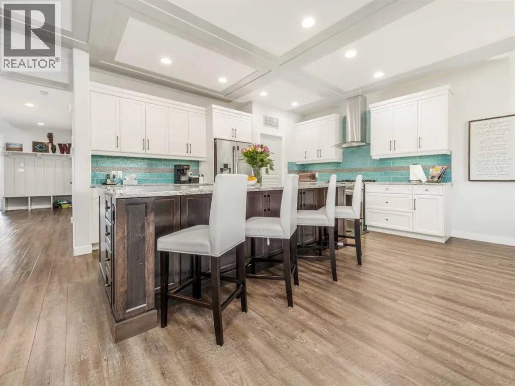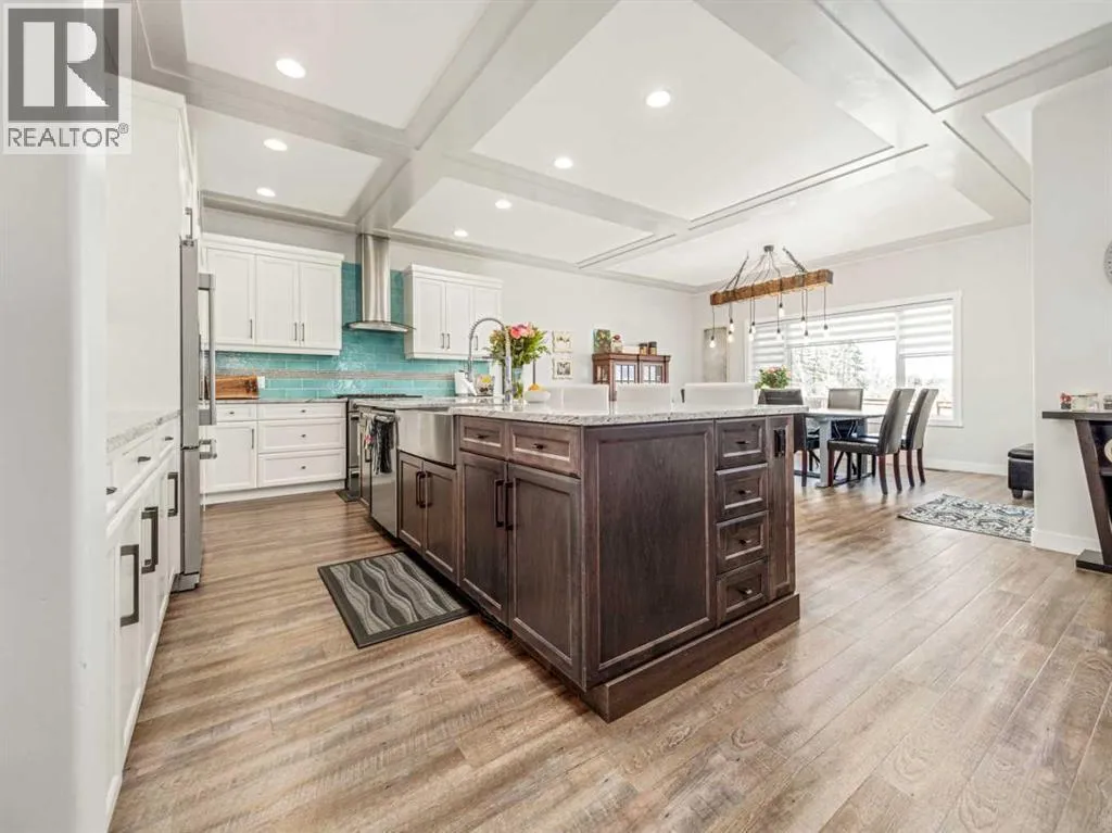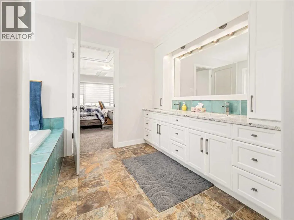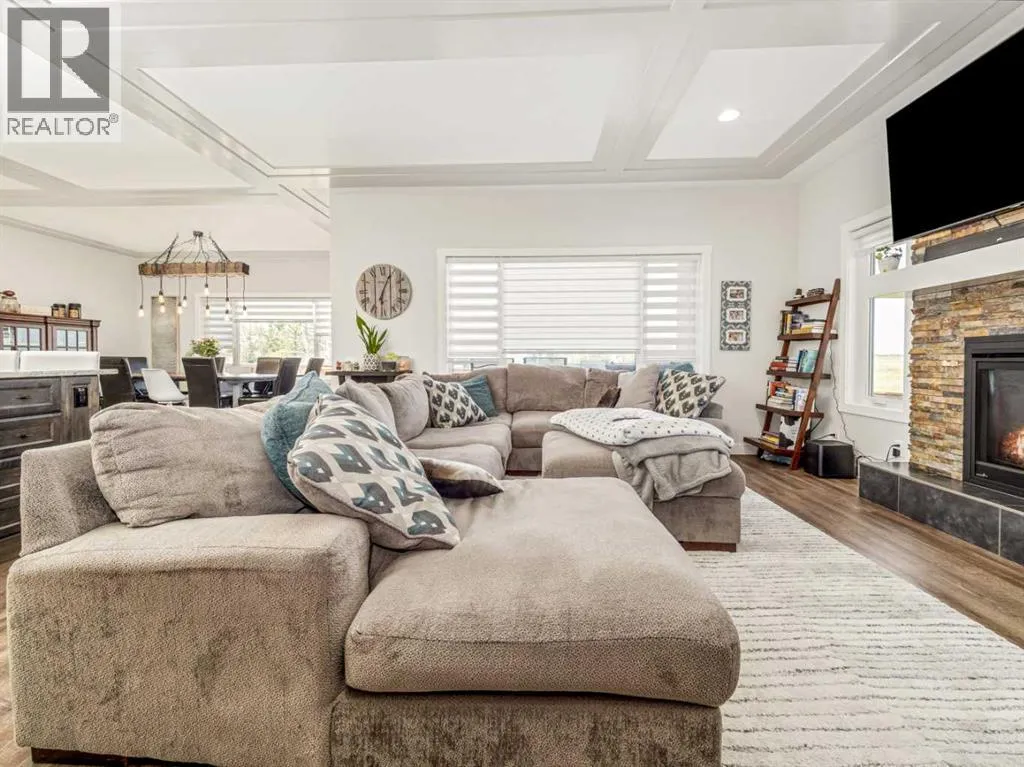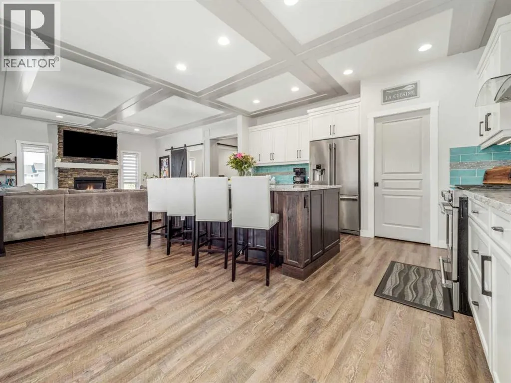 BIG & BEAUTIFUL! Large two storey home in Sixmile neighbourhood with more than 4100 SQUARE FEET of living space for the family! Large welcoming entry with staircase open to above. Main floor features vinyl plank flooring and high ceilings. Main floor has office with barn doors that close off to hallway and living room. Living room features gas fireplace with floor to ceiling stone wall feature and mantle. Kitchen is large and has beautiful white cabinets, granite counters with large island, stainless steel appliances with gas range, and a large pantry that leads to a mudroom with hooks, cubbies, and shelves. Dining room is also big and has a door to the covered deck out back. A 2 piece bathroom completes the main. Second floor features 3 large bedrooms including primary with walk-in closet and 5 piece ensuite that features double sinks, separate tub and shower, and a toilet closet. Primary bedroom also has a door to a balcony. Second level also has a large bonus room that also has a door to the balcony. There is also a laundry room that can be accessed from the hallway or walk-in closet in the primary bedroom. Another full 5 piece bathroom with double sinks and tub/shower combo complete this level. Basement is fully developed with a family room that has a gas fireplace with stone surround and custom built-ins. There are also 2 more big bedrooms and another full bathroom. Home has a 2 zone furnace for upper level and main for comfort. Convenience of central a/c. Yard is fenced and landscaped with underground sprinklers. Large 22x32 garage for your vehicles! Quiet corner lot and sellers say they have amazing neighbours! Move in and enjoy! (id:27476)