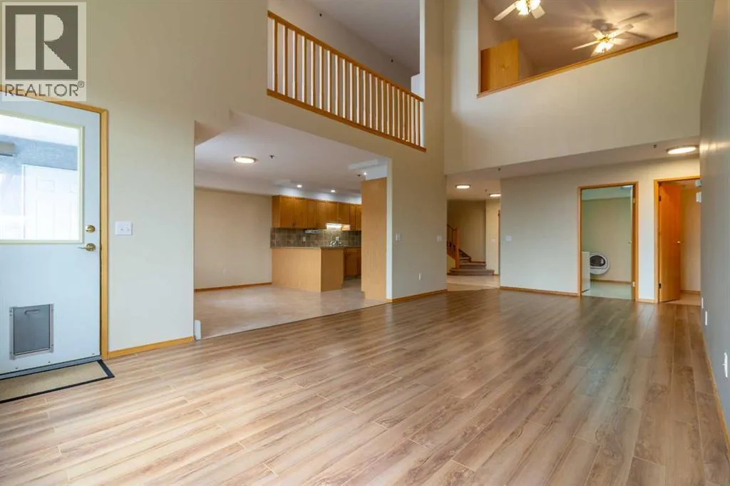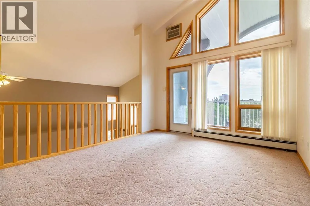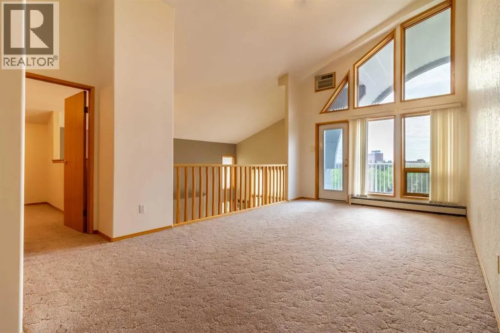 Welcome to Rio Vista! Here is a rare chance to own one of Lethbridgeâs most unique condos! This two-storey loft apartment offers extra living space upstairs while showcasing incredible downtown views. On the main floor, youâll find a spacious primary bedroom with a private ensuite, a den, a well-designed kitchen, and a dining area that flows beautifully into the living room. Towering cathedral ceilings and large windows draw your eye straight to the sweeping cityscape, while the East facing patio adds a perfect private retreat and blocks the wind! Upstairs, a versatile loft space overlooks the living area and opens onto a second private patioâideal for enjoying the view. A second living room, comfortable guest bedroom and bathroom will make visitors feel right at home. The building itself offers plenty of perks, including a elevators, heated underground parking with a secure stall, guest rooms, and access to Rio Vistaâs amenities: fitness centre, hobby room, billiards, library, and an active social calendar! Opportunities like this donât come along oftenâcontact your REALTOR® today to book a showing! (id:27476)