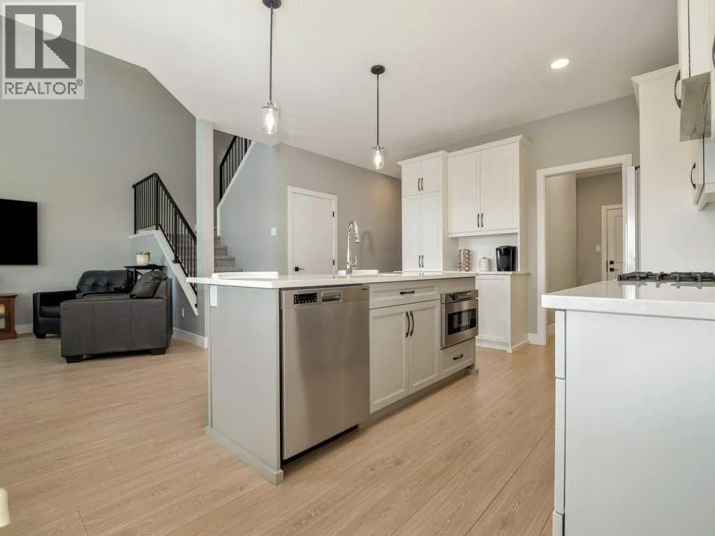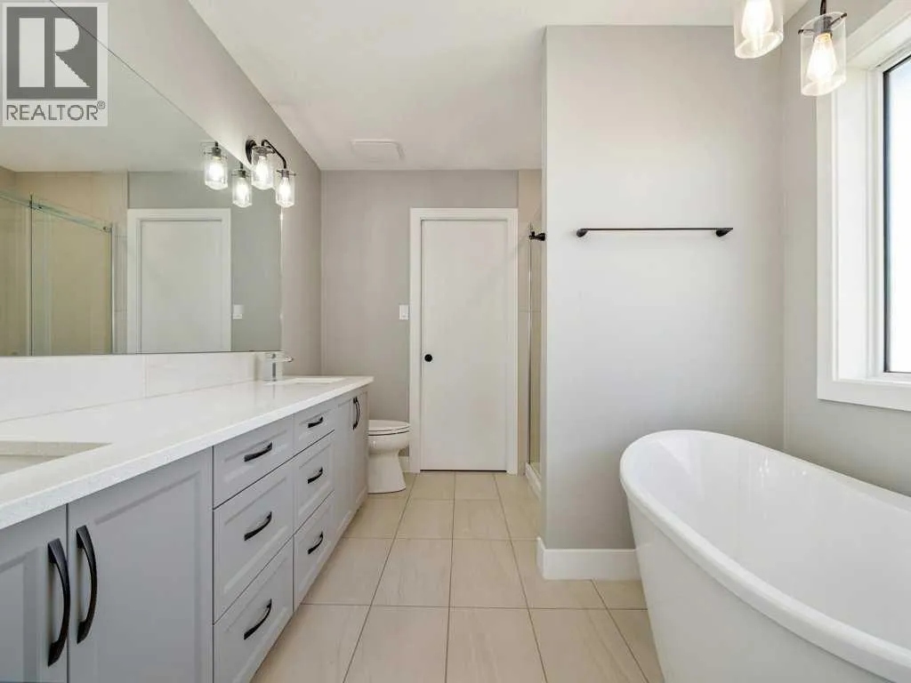 Welcome to this stunning home in West Lethbridge, conveniently located close to shopping, the new West side Elementary school, parks, pathways, and a wide range of amenities! This home presents like new, but with the basement and landscaping already completed! Step inside and you are greeted by a thoughtfully laid out main floor which features a large office space, mudroom, pantry, open concept living/dining space, and soaring ceilings open to above. The expansive windows and patio doors on this level provide beautiful views of the immense back yard space with spacious deck and room to engage in all variety of activities. This level also has access to the oversized double car garage with 9' overhead doors, and ceilings measuring over 12' tall - there is also a gas line already in place! Heading upstairs you are met with a nicely appointed primary suite with 5 piece en-suite featuring both a stand-alone shower and soaker tub, along with a walk-in closet and access to the upper laundry room. There are 2 more bedrooms and a 4 piece bathroom on this upper level, along with a bonus room for quality family time. Downstairs the basement is fully finished and offers flexible living options with a large rec room, and another large bedroom with en-suite bathroom and laundry hook-ups. This home on this size of lot with all of the finishing work already completed is hard to find - but is now ready for it's new owners to take advantage of the amazing features and call it "home"! (id:27476)