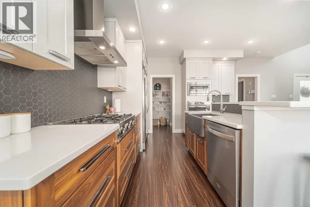 Welcome to this beautifully kept former showhome in the sought-after community of Gary Station, where modern design meets practical comfort. With over $30,000 invested in solar panels, this home not only looks good but is energy-efficient too.From the moment you step inside, the warmth of the finishes and thoughtful layout stand out. The main floor boasts a truly unique kitchen design, anchored by high-end appliances including a Bertazzoni gas range and a dual-sided fridge/freezer that would impress even the most passionate home chef. The open living and dining areas flow seamlessly, perfect for entertaining or quiet evenings by the fireplace. The attached garage is fully drywalled and paintedâready for your vehicles, hobbies, or extra storage.Upstairs, youâll find three bedrooms, a sunken bonus room for movie nights or a play space, and a dedicated laundry room that keeps daily life convenient. The primary bedroom is a showstopper, featuring a one-of-a-kind layout with a striking false wall that doubles as a custom headboard. Hidden just behind it is your massive walk-in closet, blending function with style. The 4-piece ensuite includes dual vanities, a wall-mounted mirror, and a sleek walk-in showerâyour own private retreat.This home blends style, comfort, and sustainability, all in a location thatâs close to west side amenities, parks, and schools. (id:27476)
